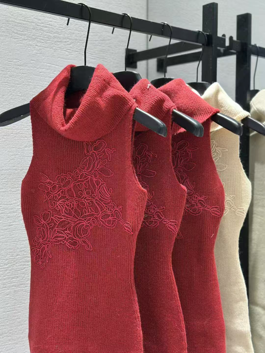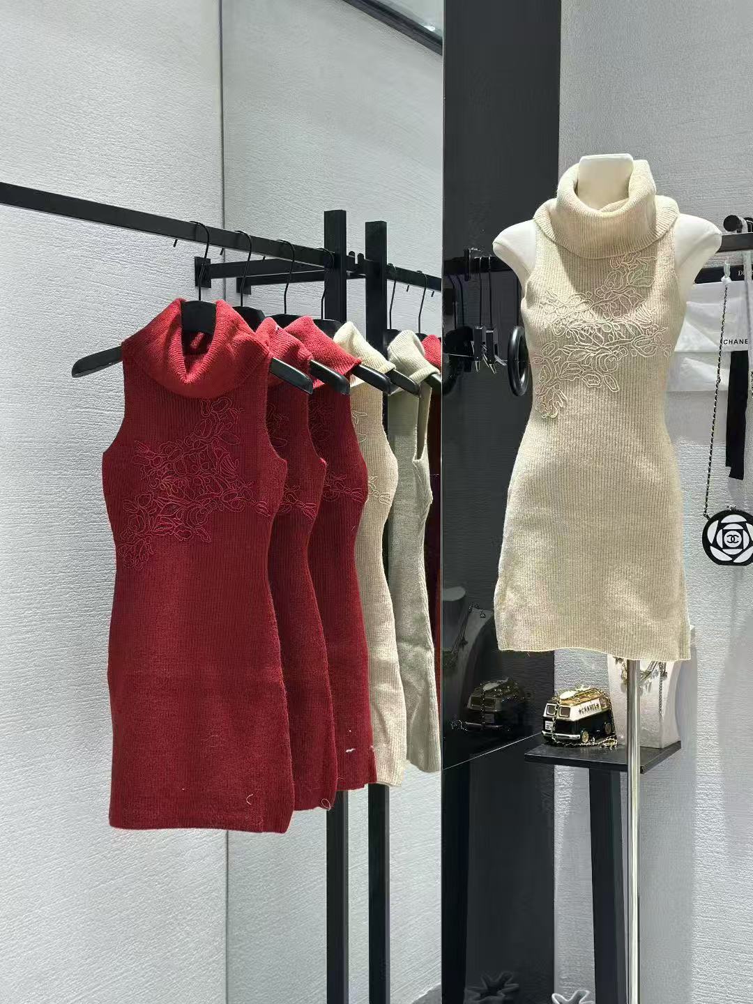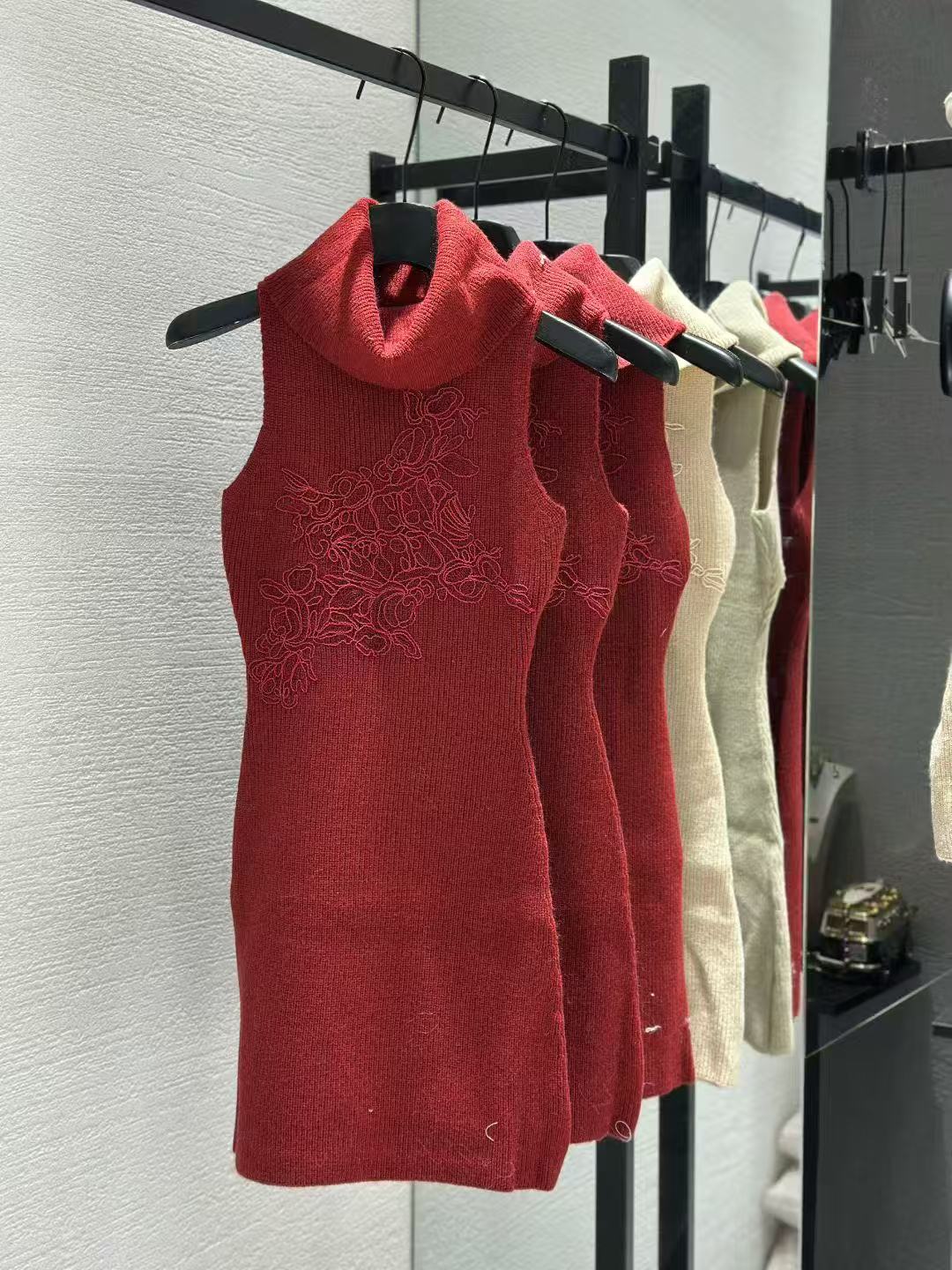M900针织无袖连衣裙女秋冬2025新款新年红 高领包臀辣妹打底短裙