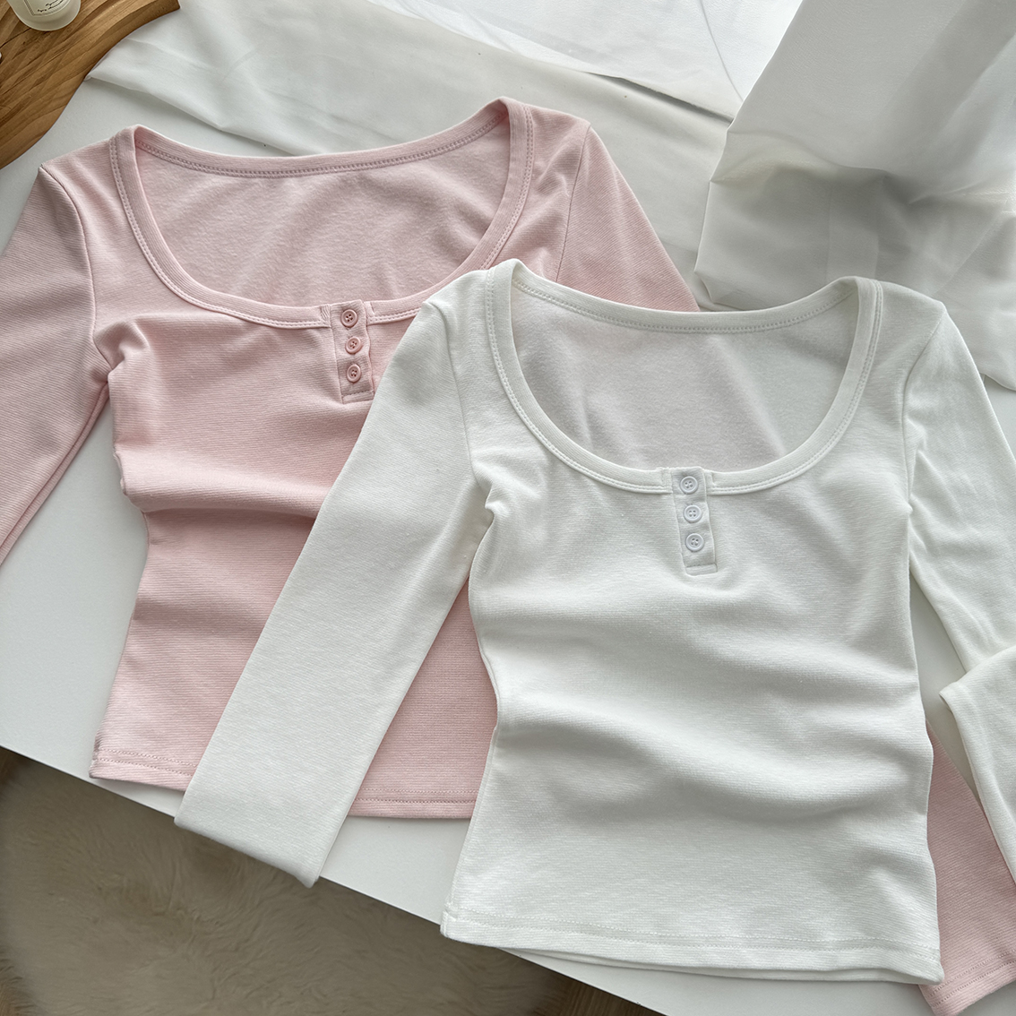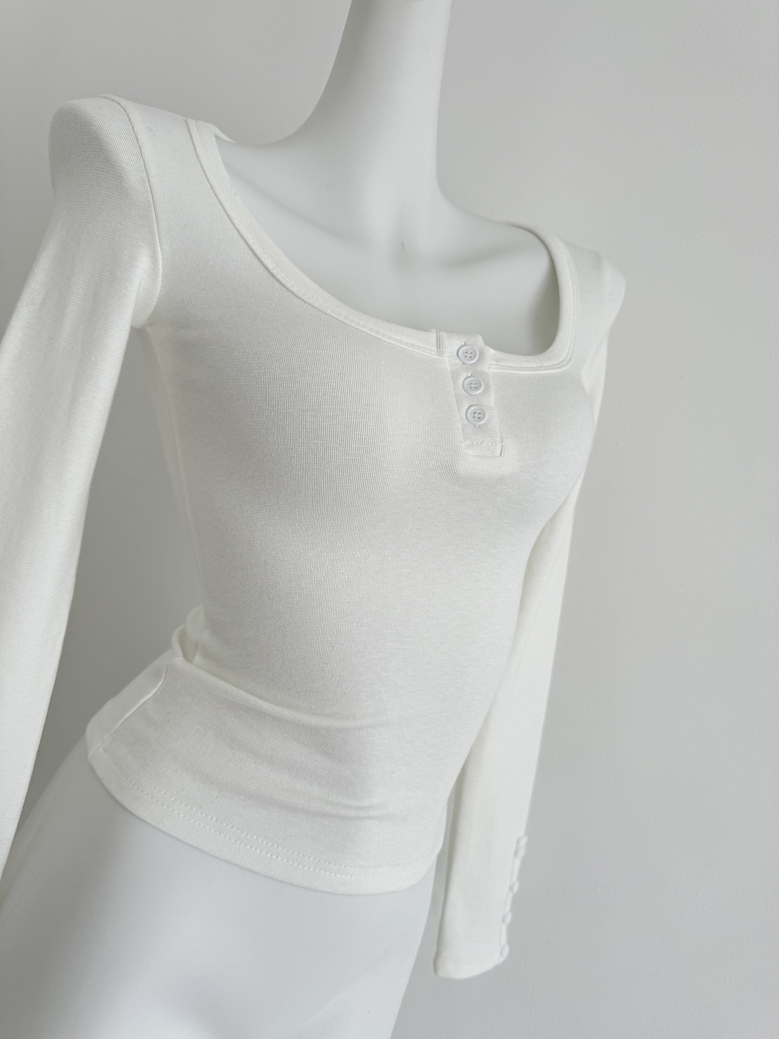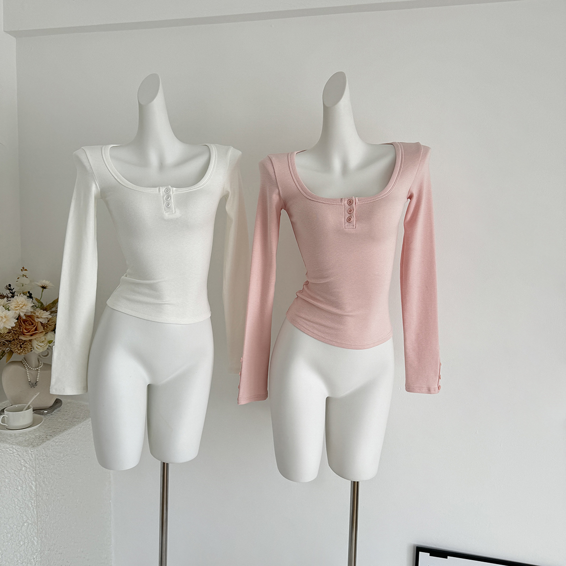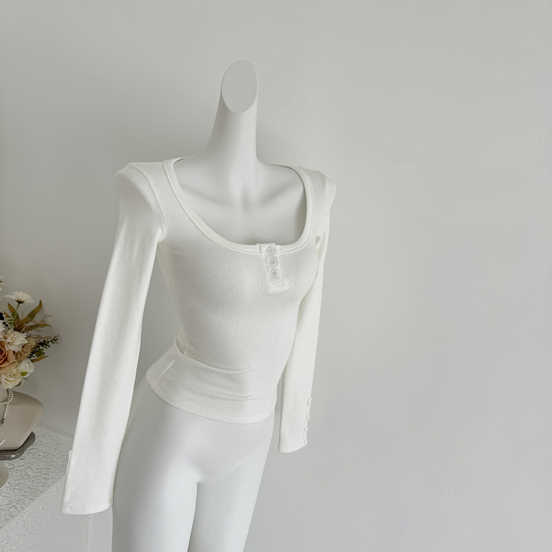 SUN1112.08 20:00奶油糖霜U领柔肤正肩修身半开领长袖T恤