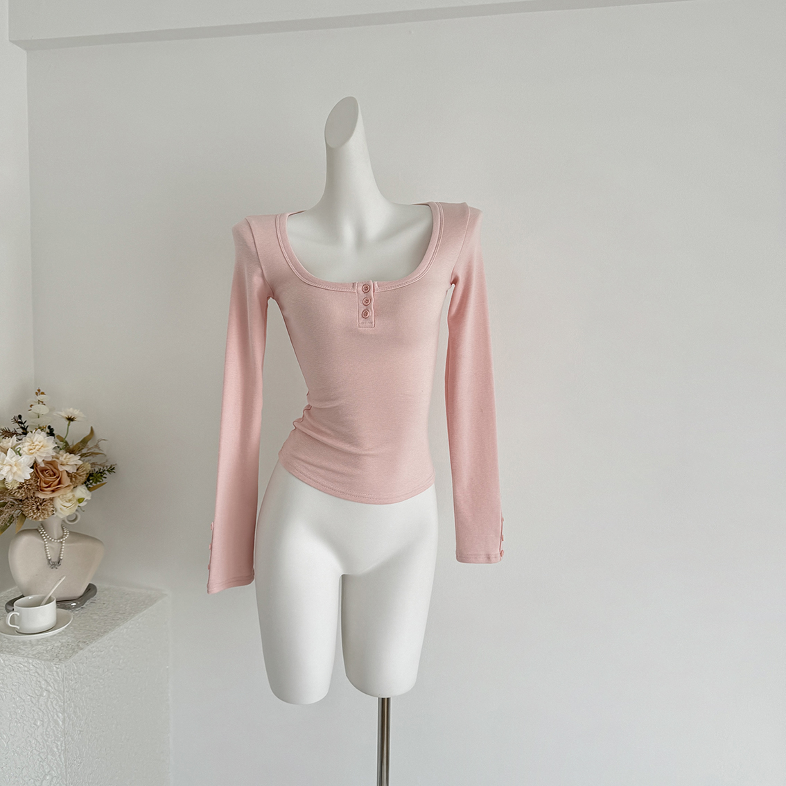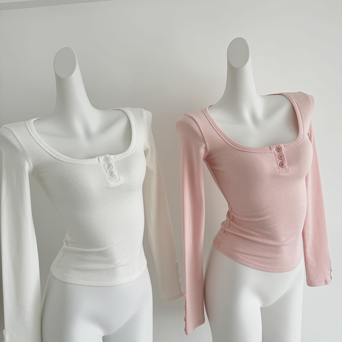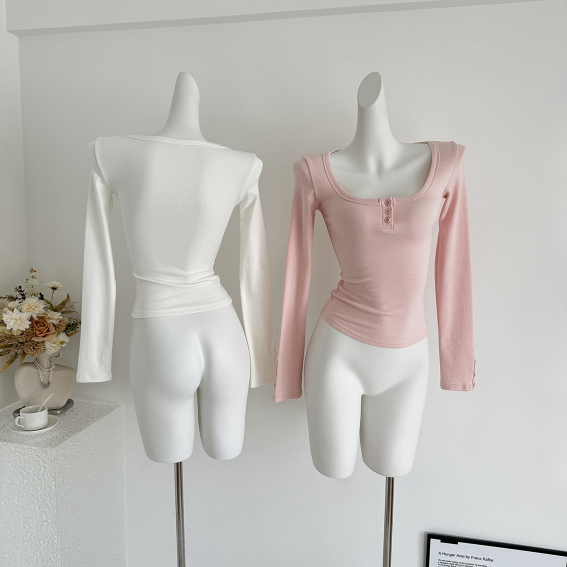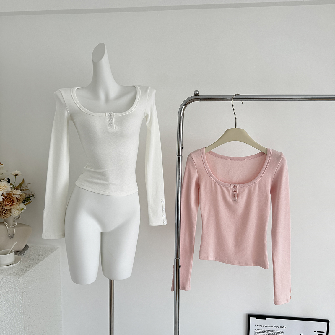 SUN1112.08 20:00奶油糖霜U领柔肤正肩修身半开领长袖T恤