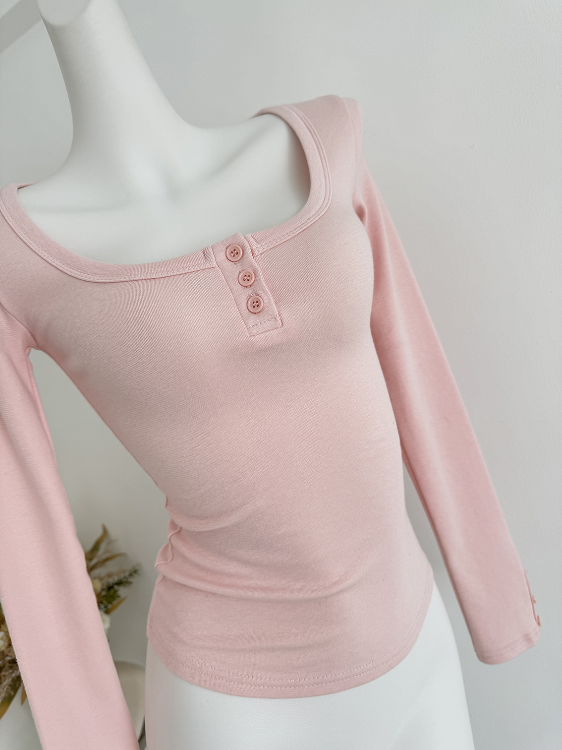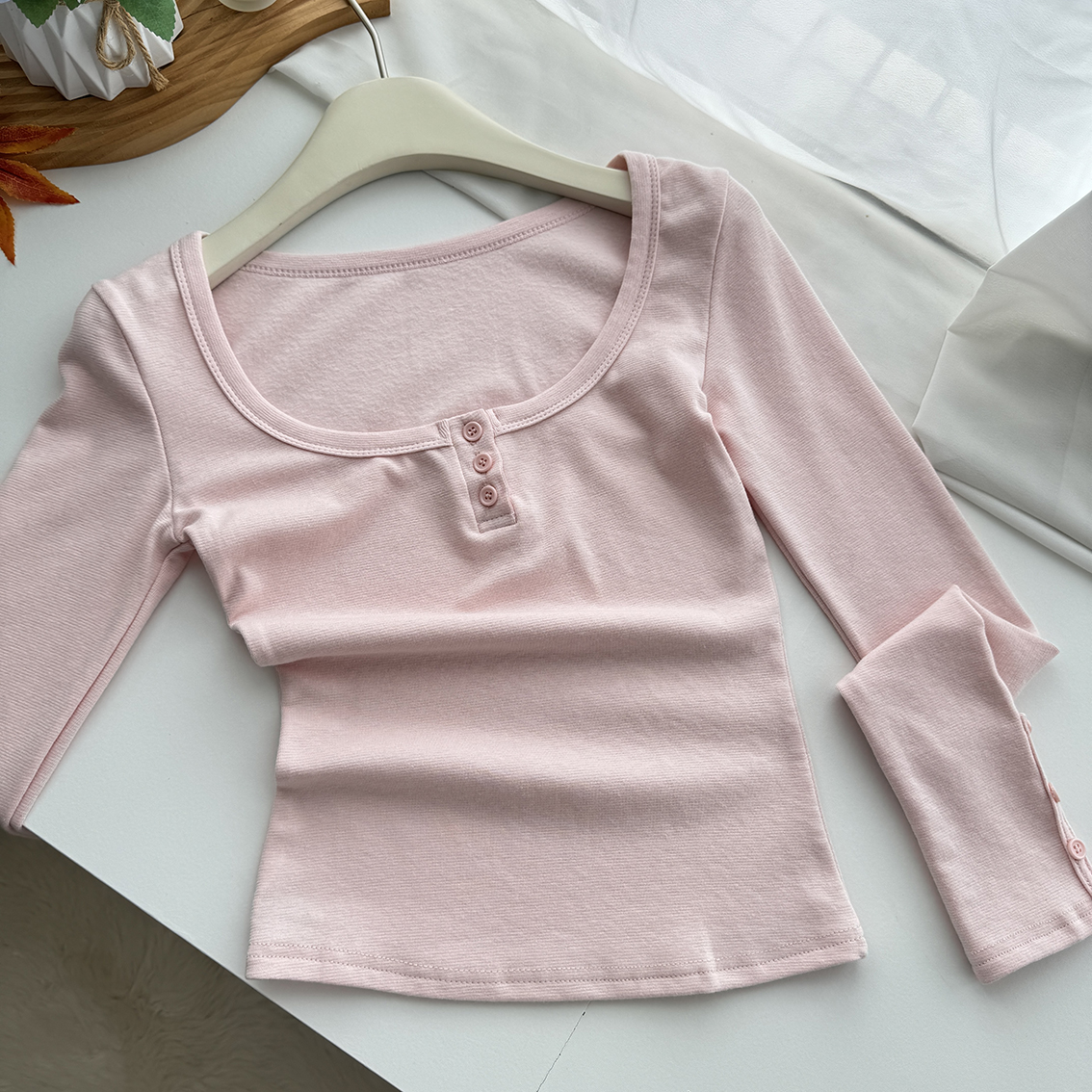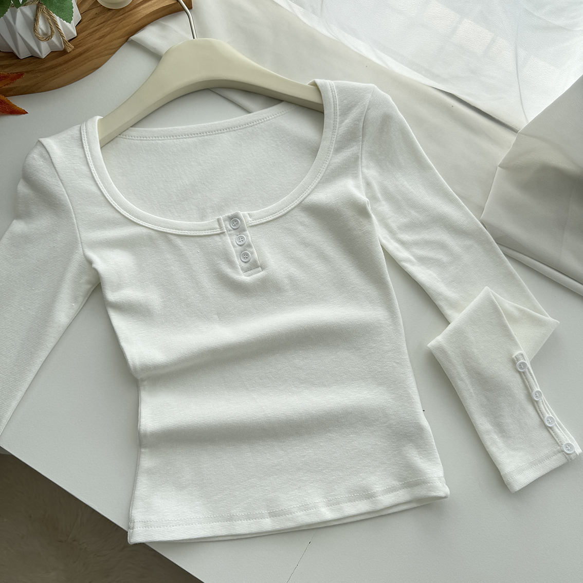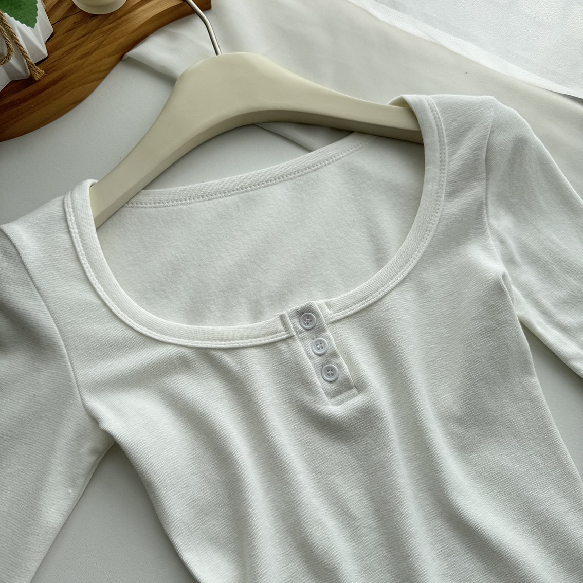 SUN1112.08 20:00奶油糖霜U领柔肤正肩修身半开领长袖T恤