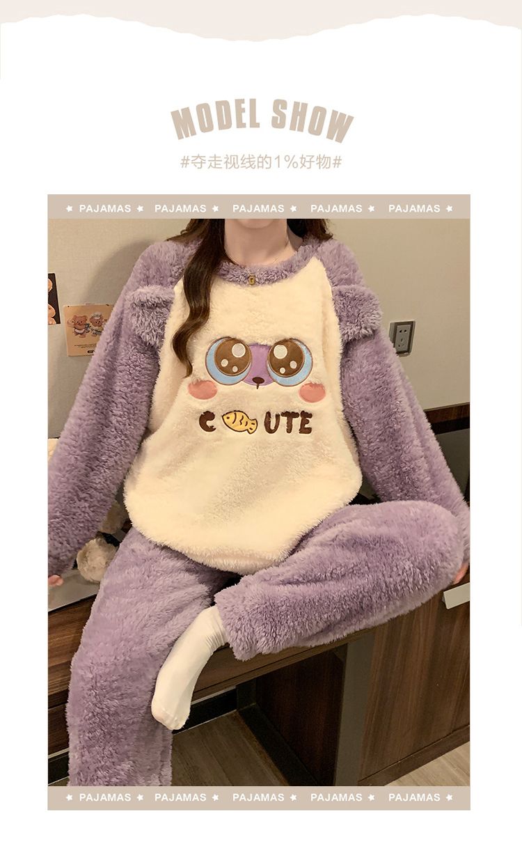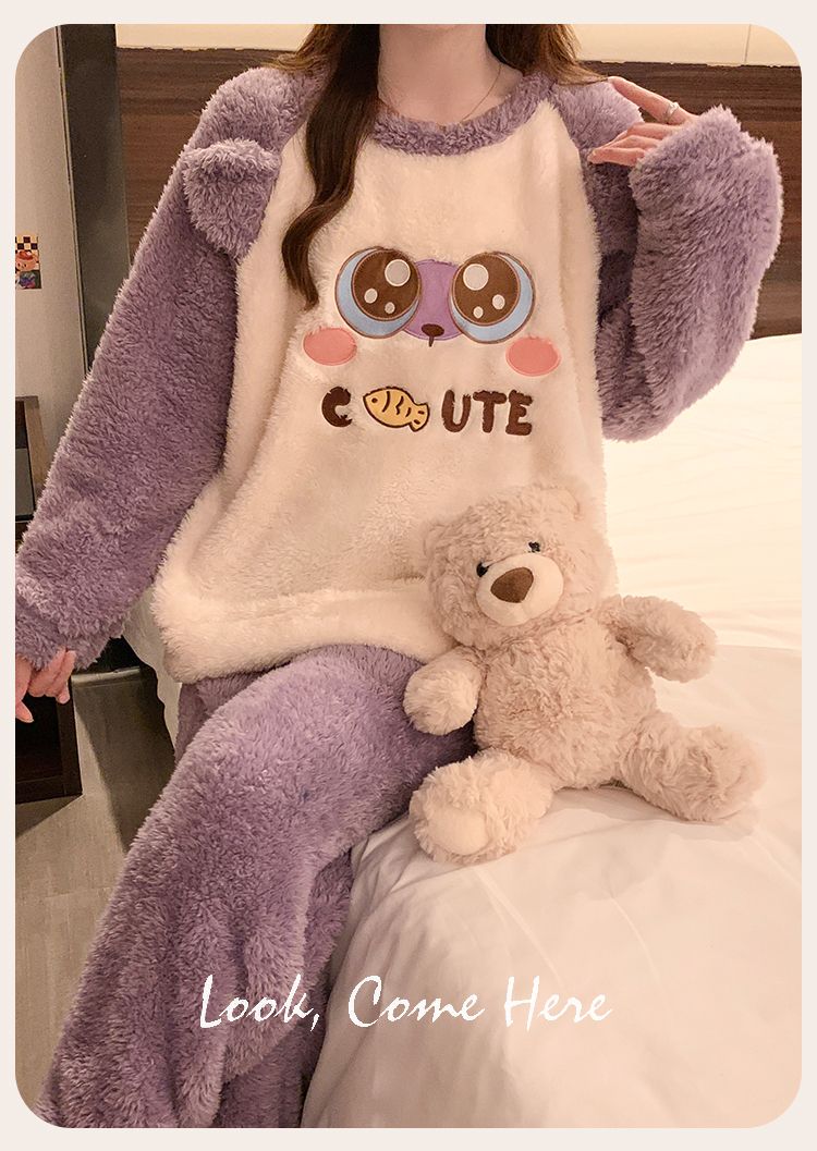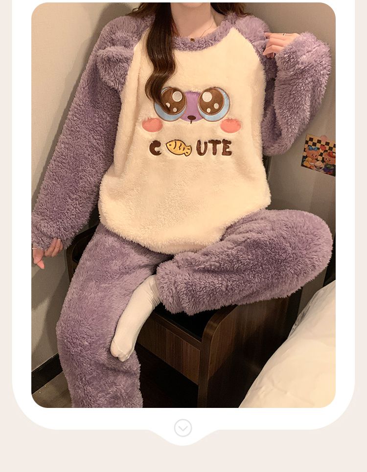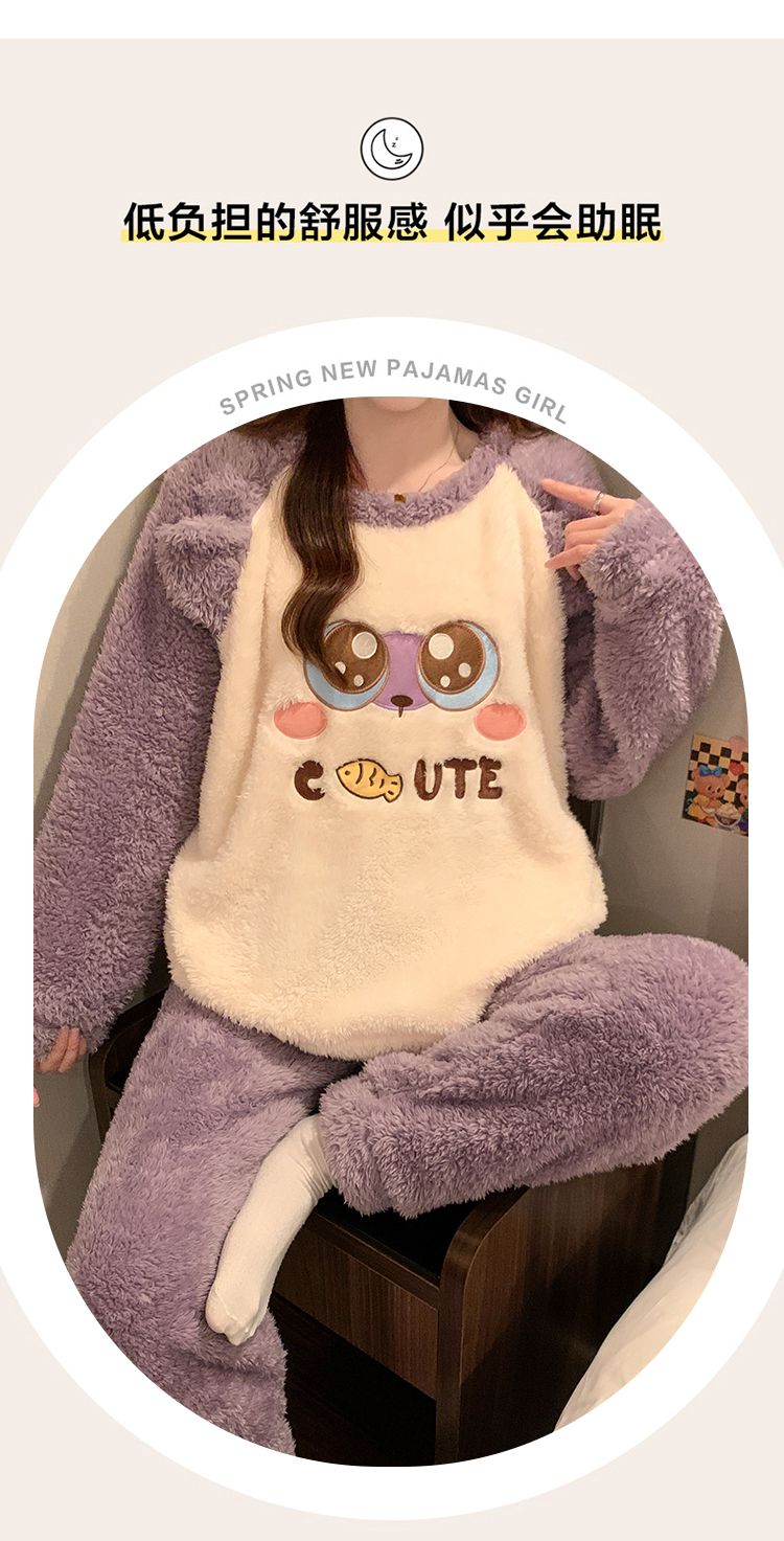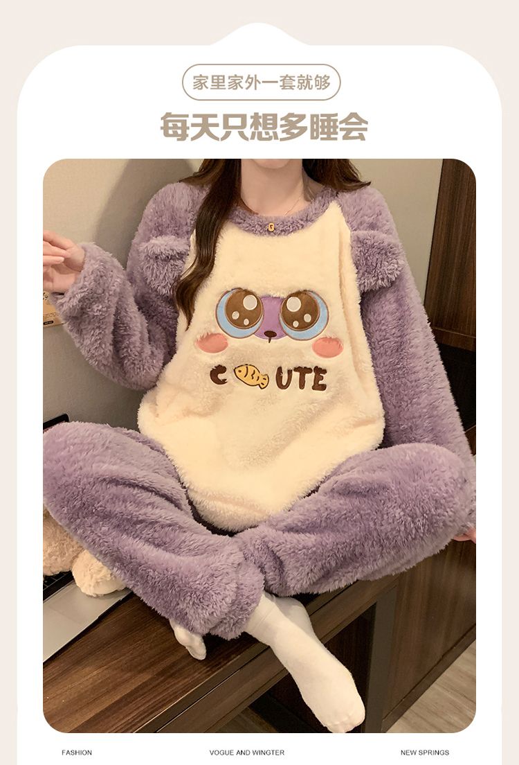 女秋冬季新款加厚睡衣大码长袖长裤软绵绵家居服套装