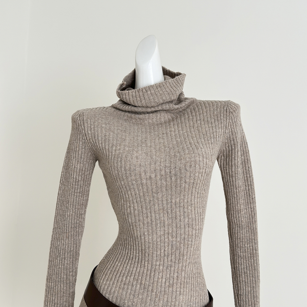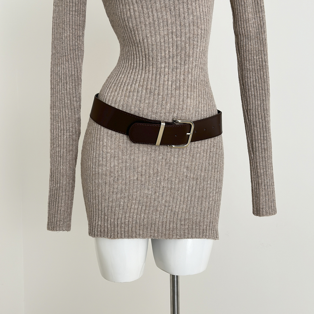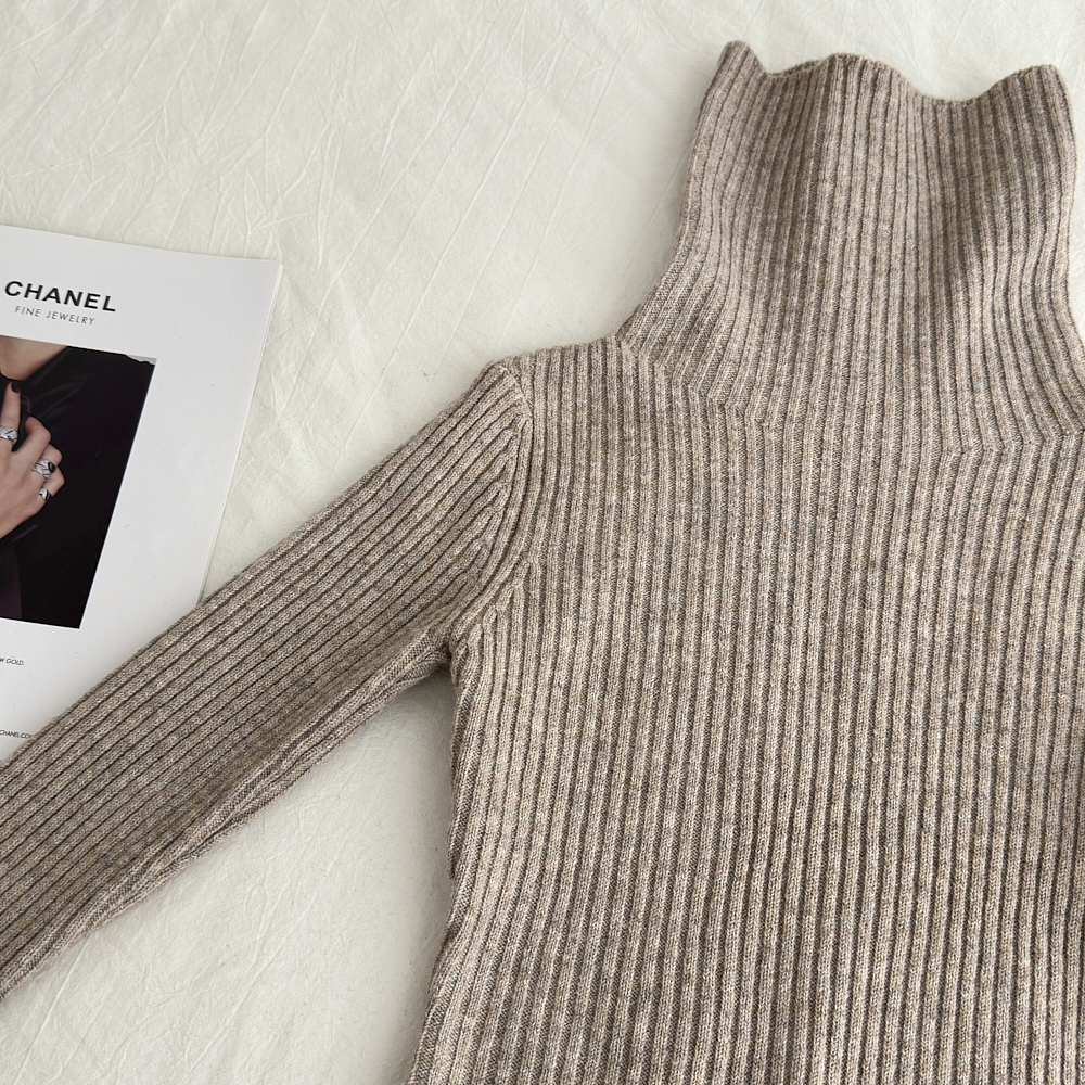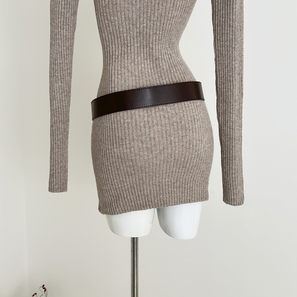 韩好甜WARDEN EDGE 卡其色高领毛衣裙加厚收腰内搭针织连衣裙短裙