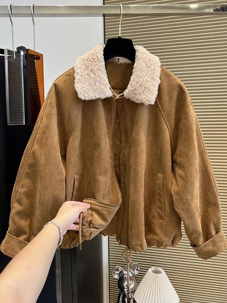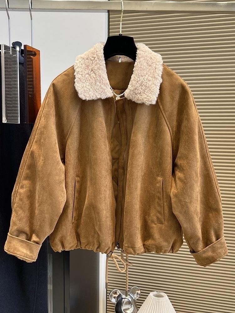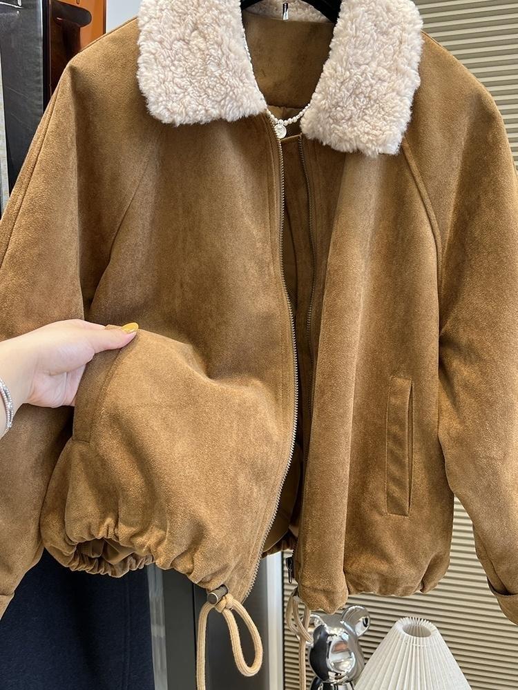 复古美拉德短款棉服机车服外套女士秋冬季小个子洋气皮衣夹克上衣