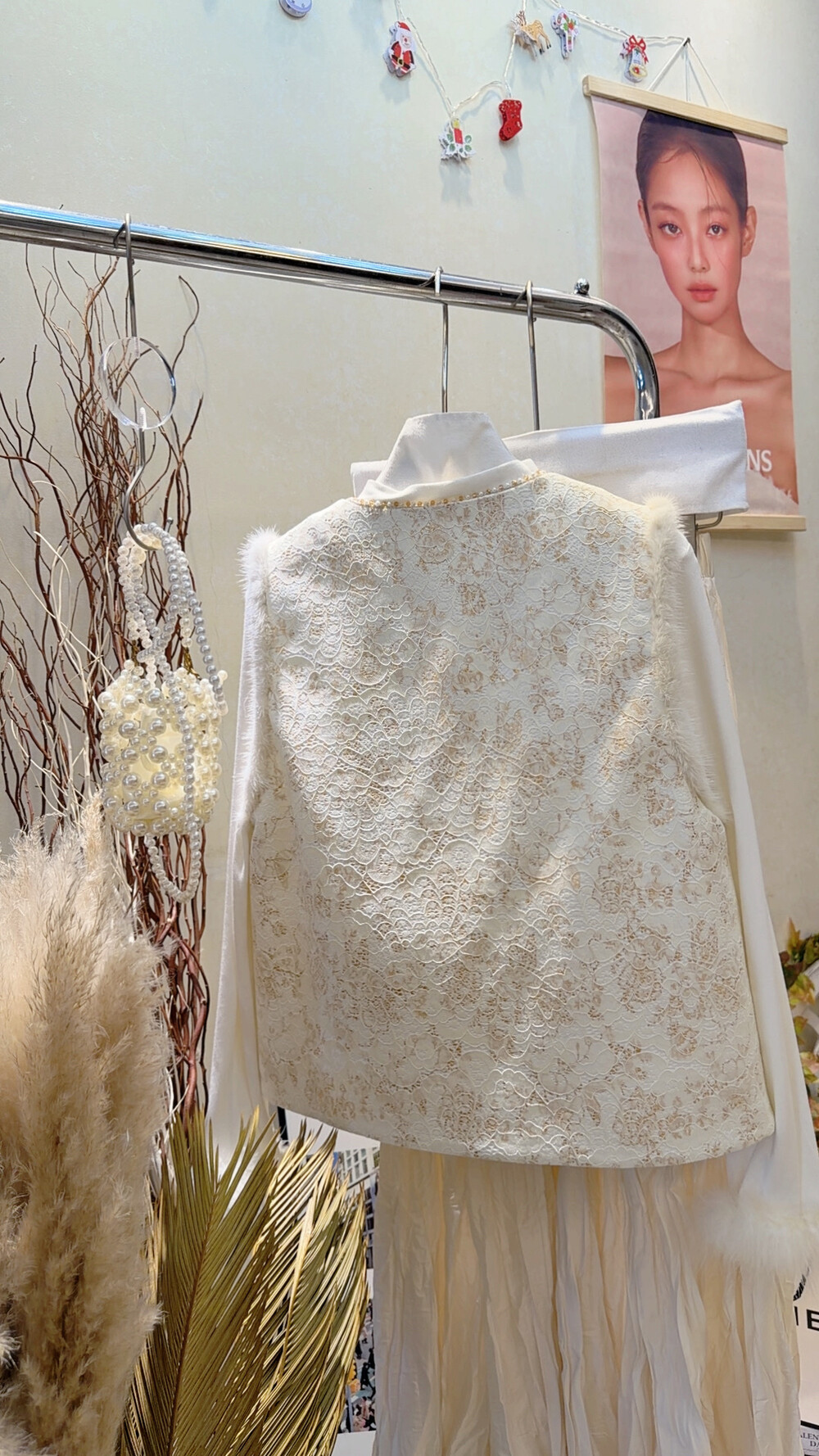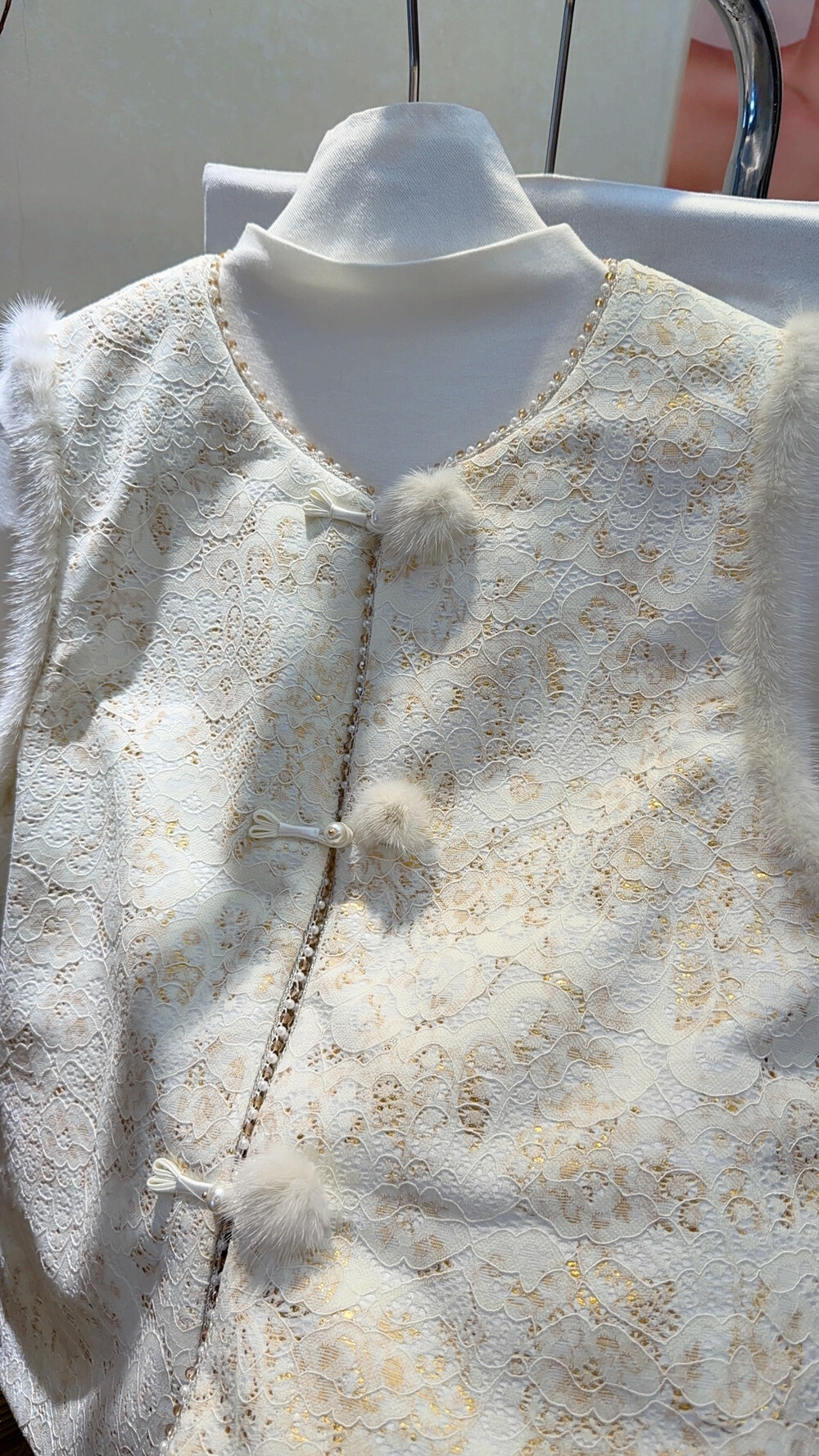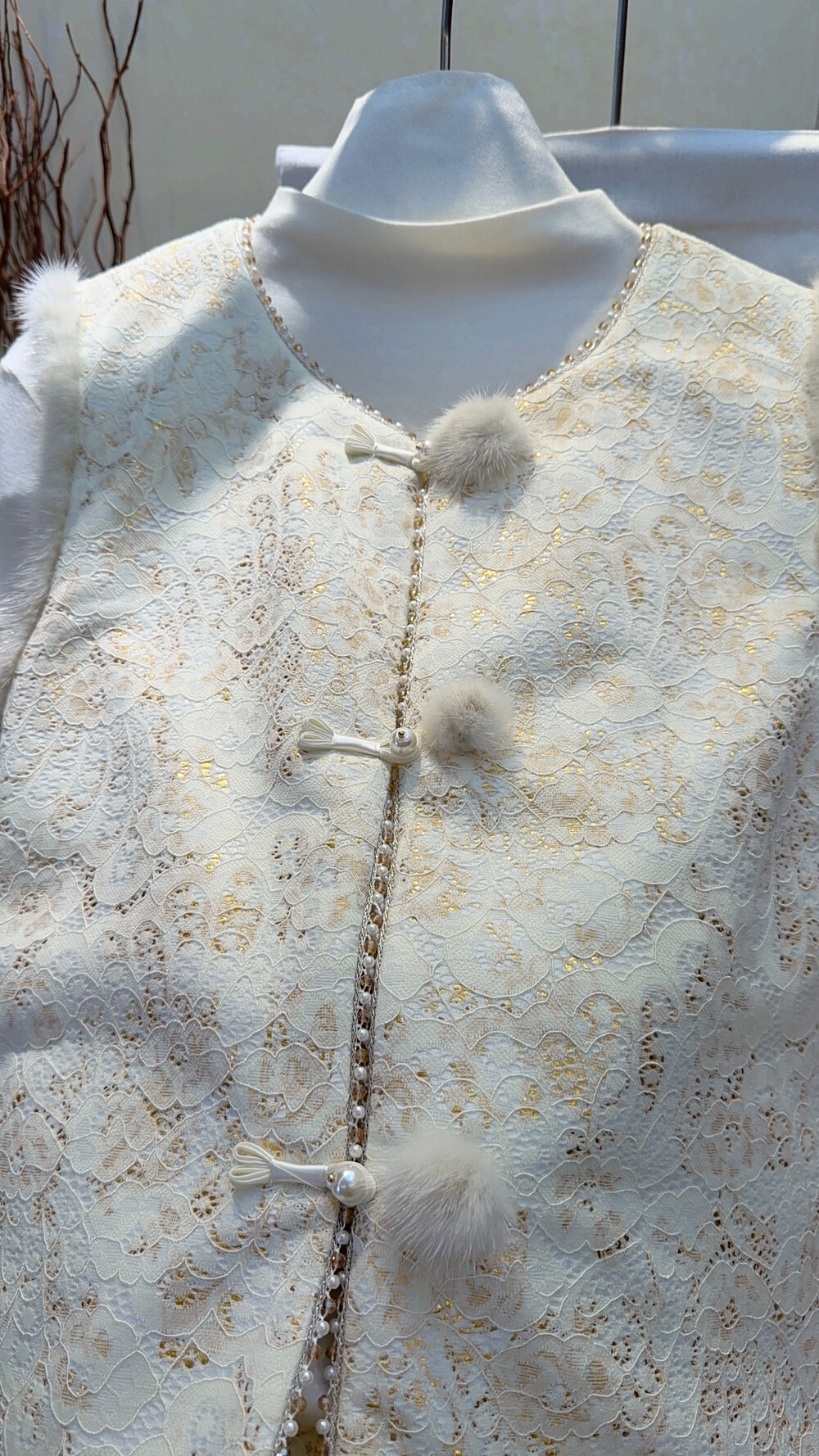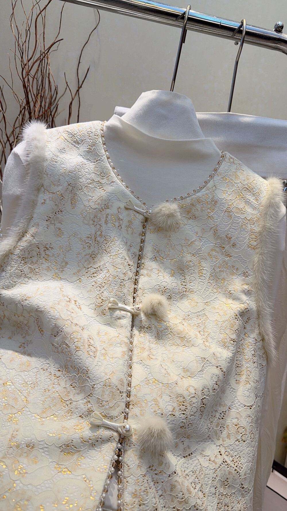 国风水貂毛米白色重工刺绣马甲女外穿洋气减龄日常夹棉新中式背心