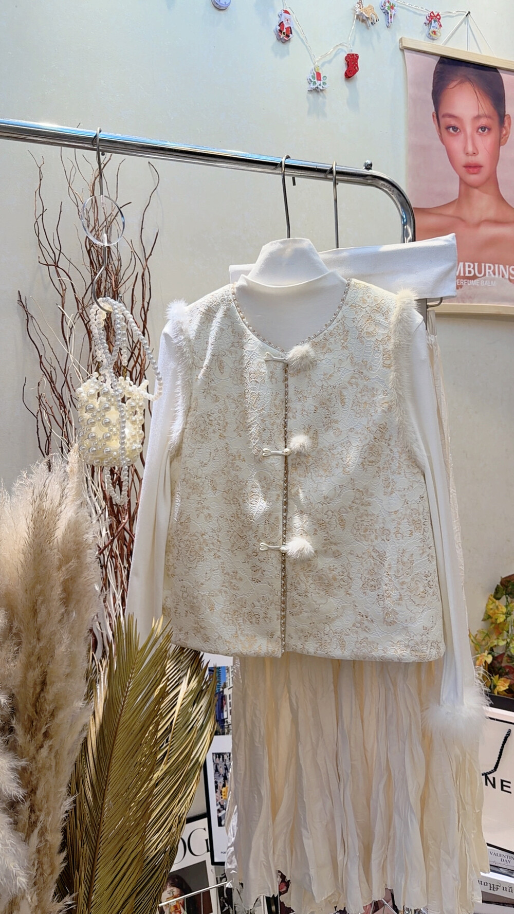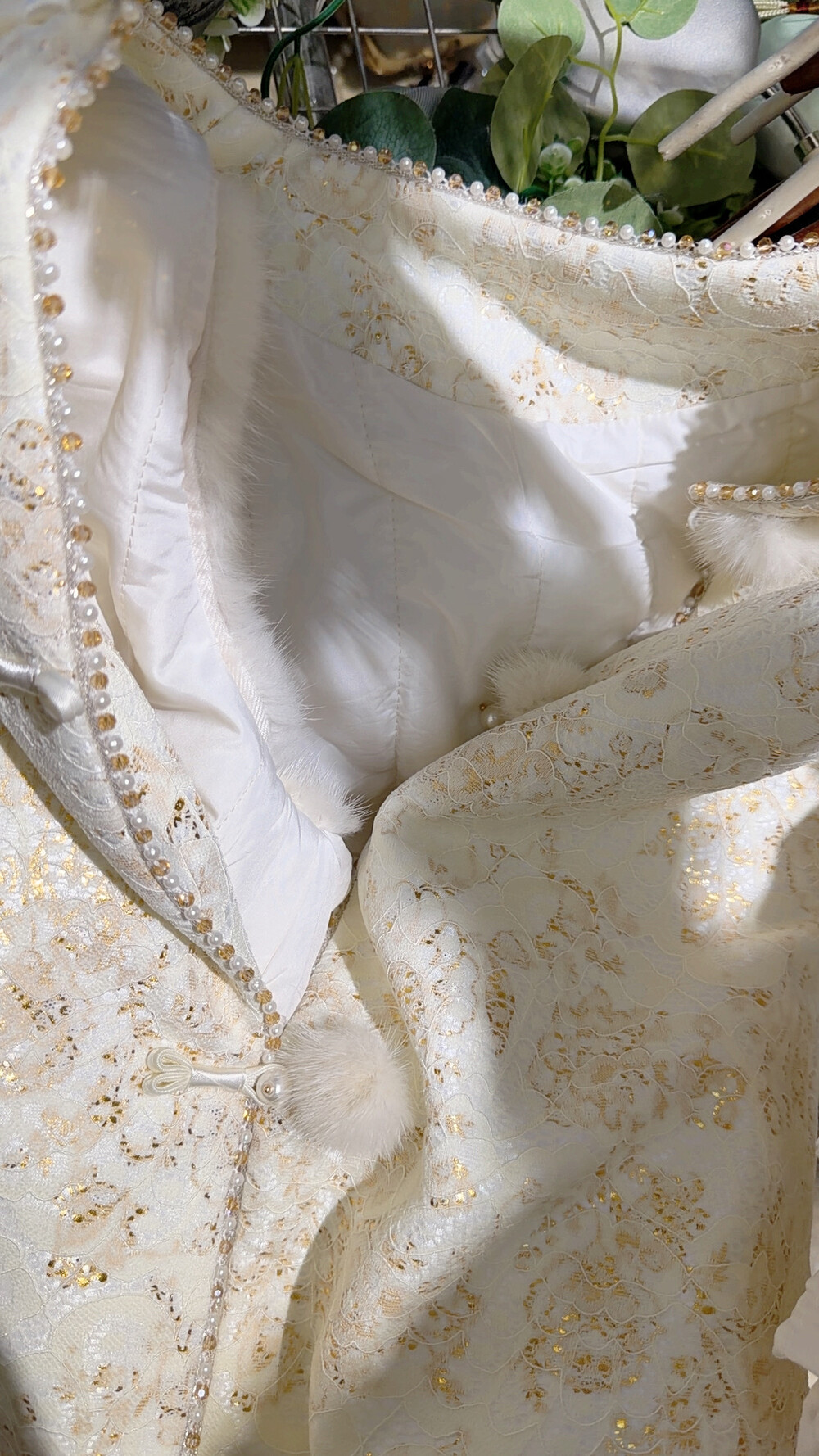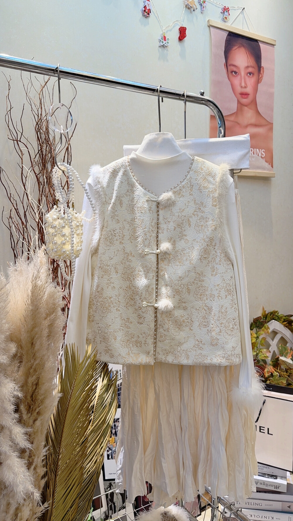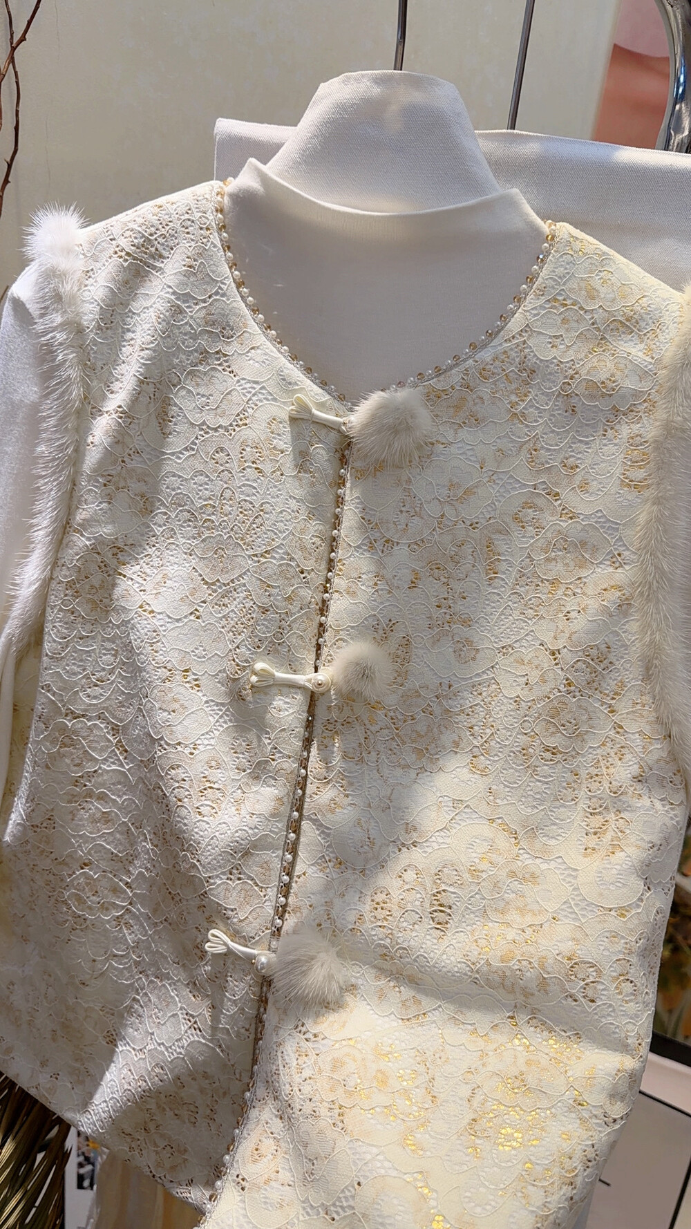 国风水貂毛米白色重工刺绣马甲女外穿洋气减龄日常夹棉新中式背心