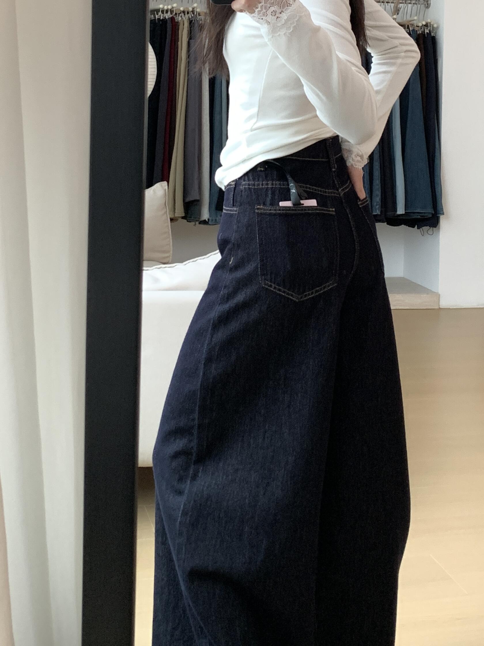 小个子深蓝美式宽松阔腿牛仔裤女2025秋冬垂感慵懒休闲拖地直筒裤