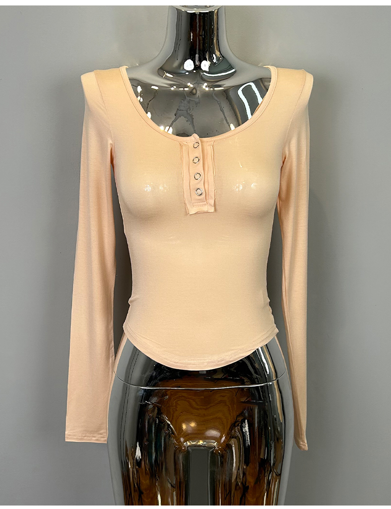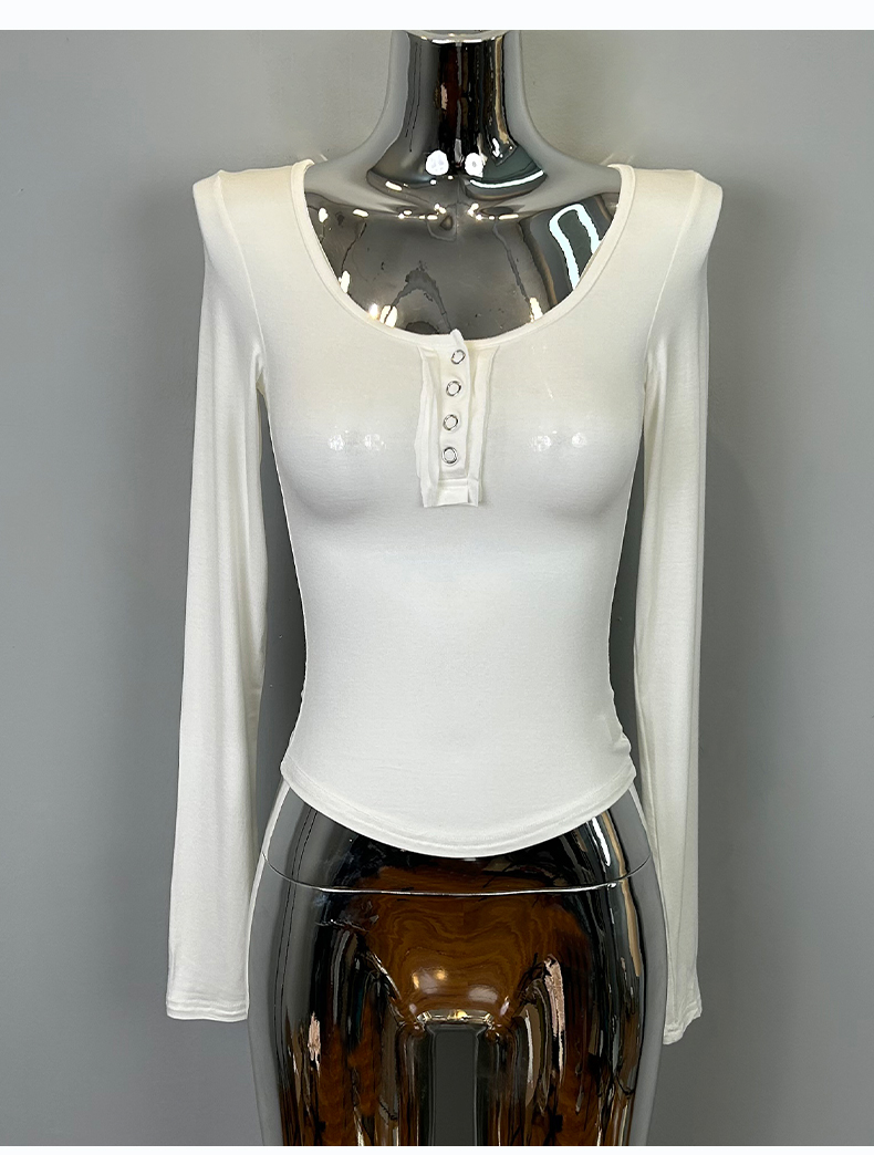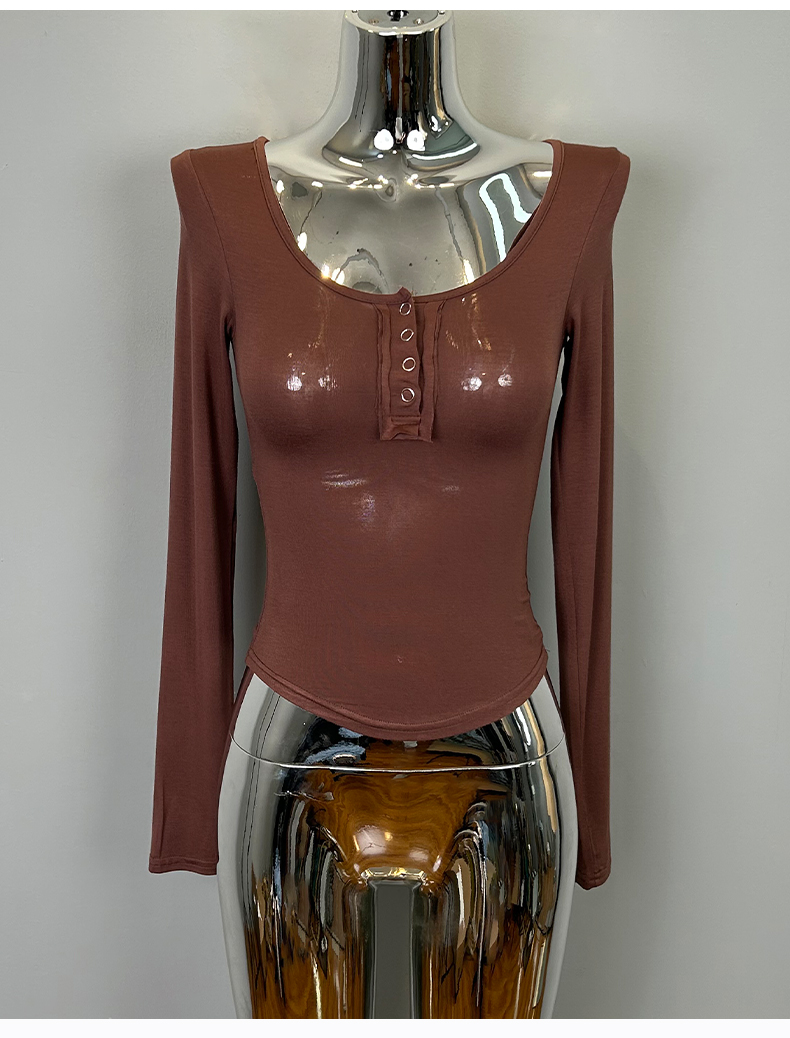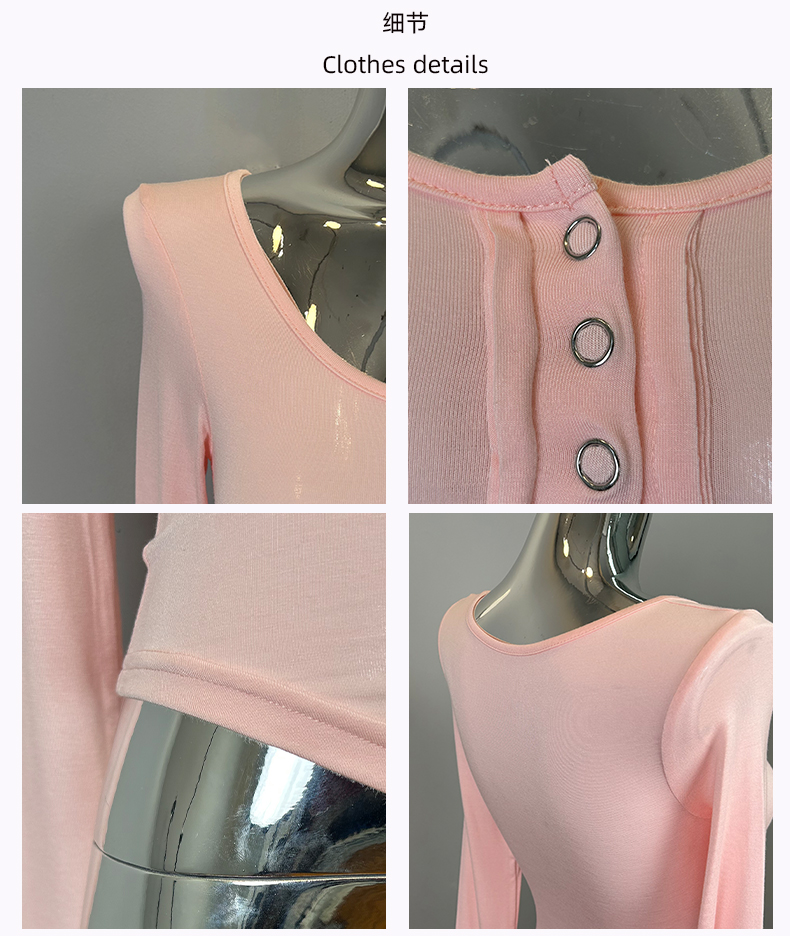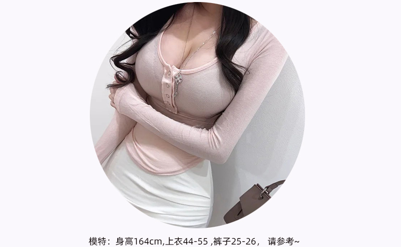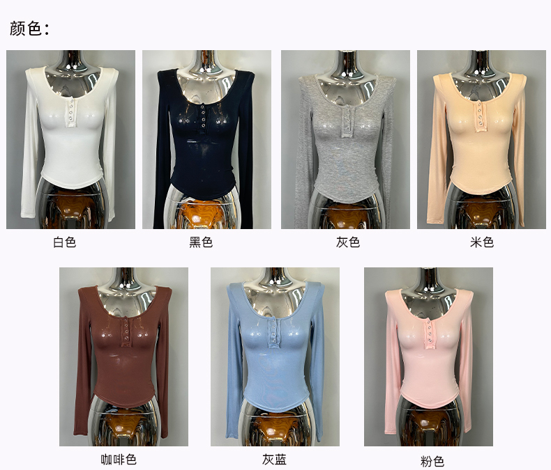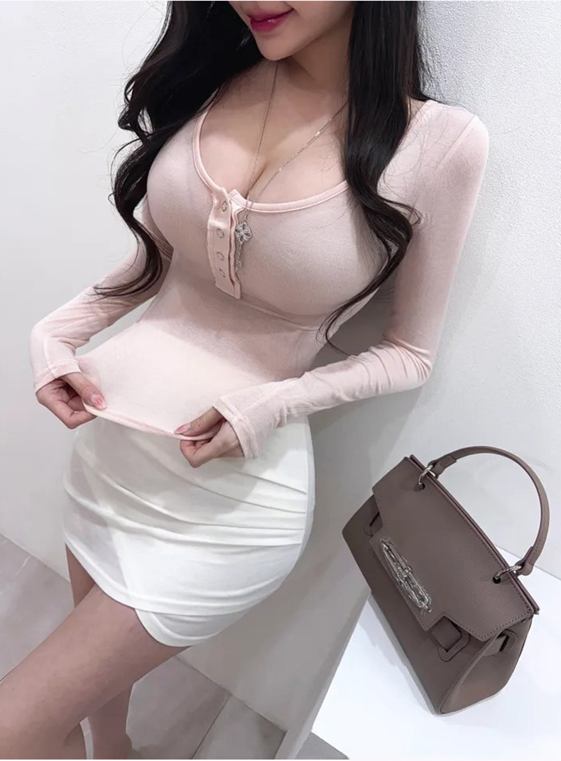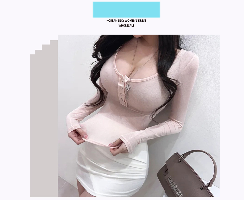 韩国东大门新品 性感显胸大~女人味微透U领紧身打底T恤