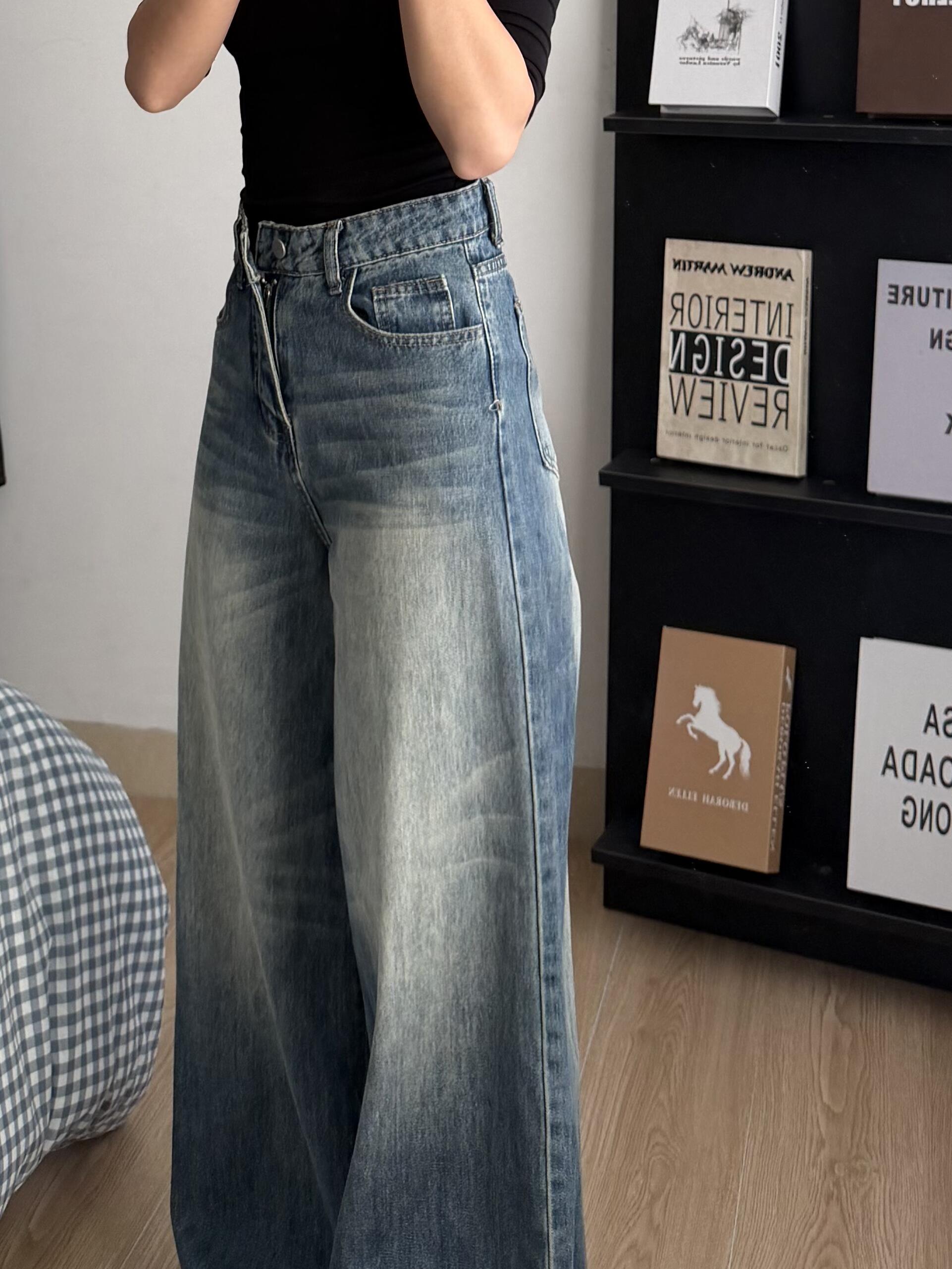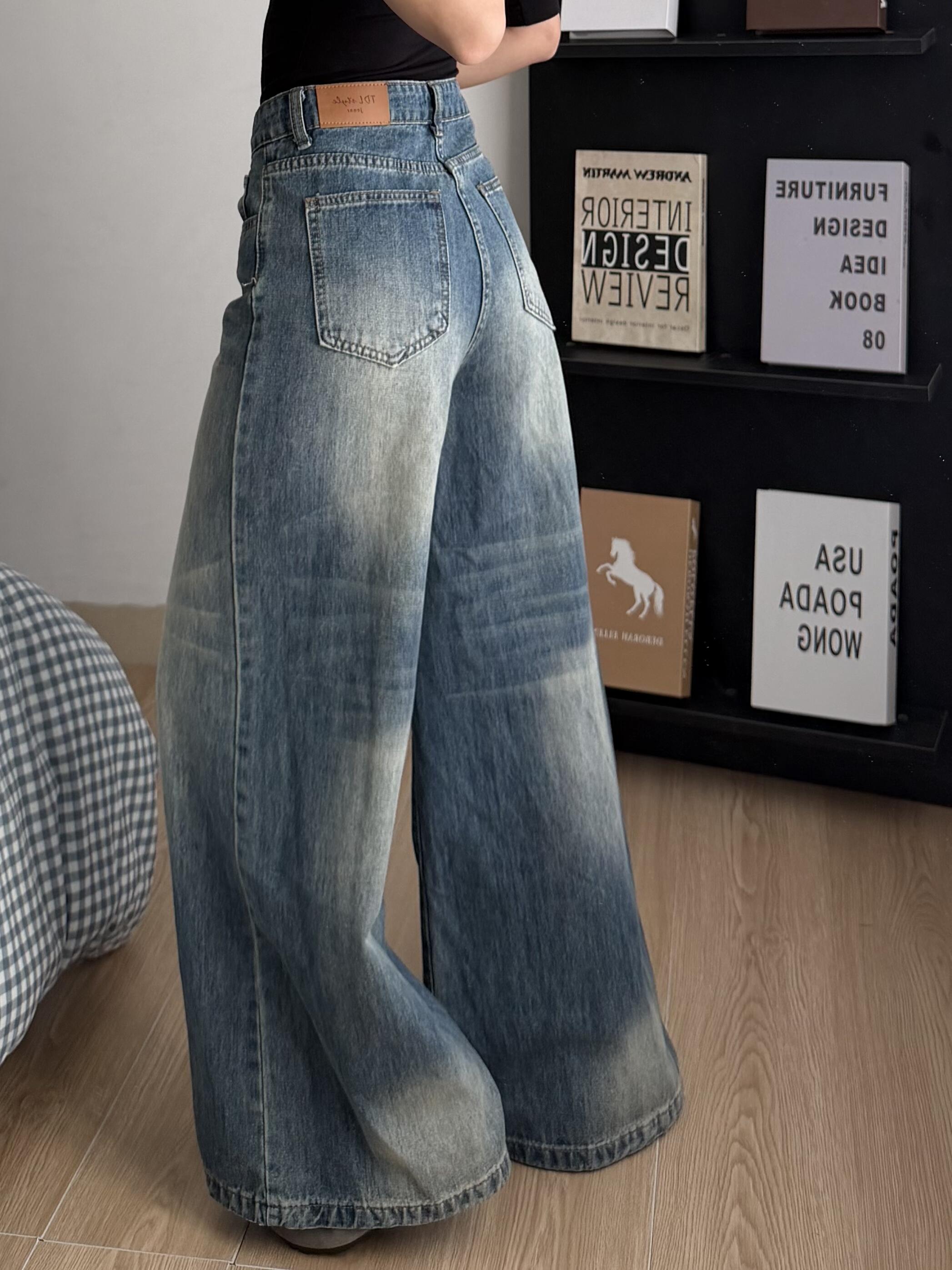 美式复古阔腿牛仔裤女款秋冬季2025新款高腰宽松松弛感直筒拖地裤