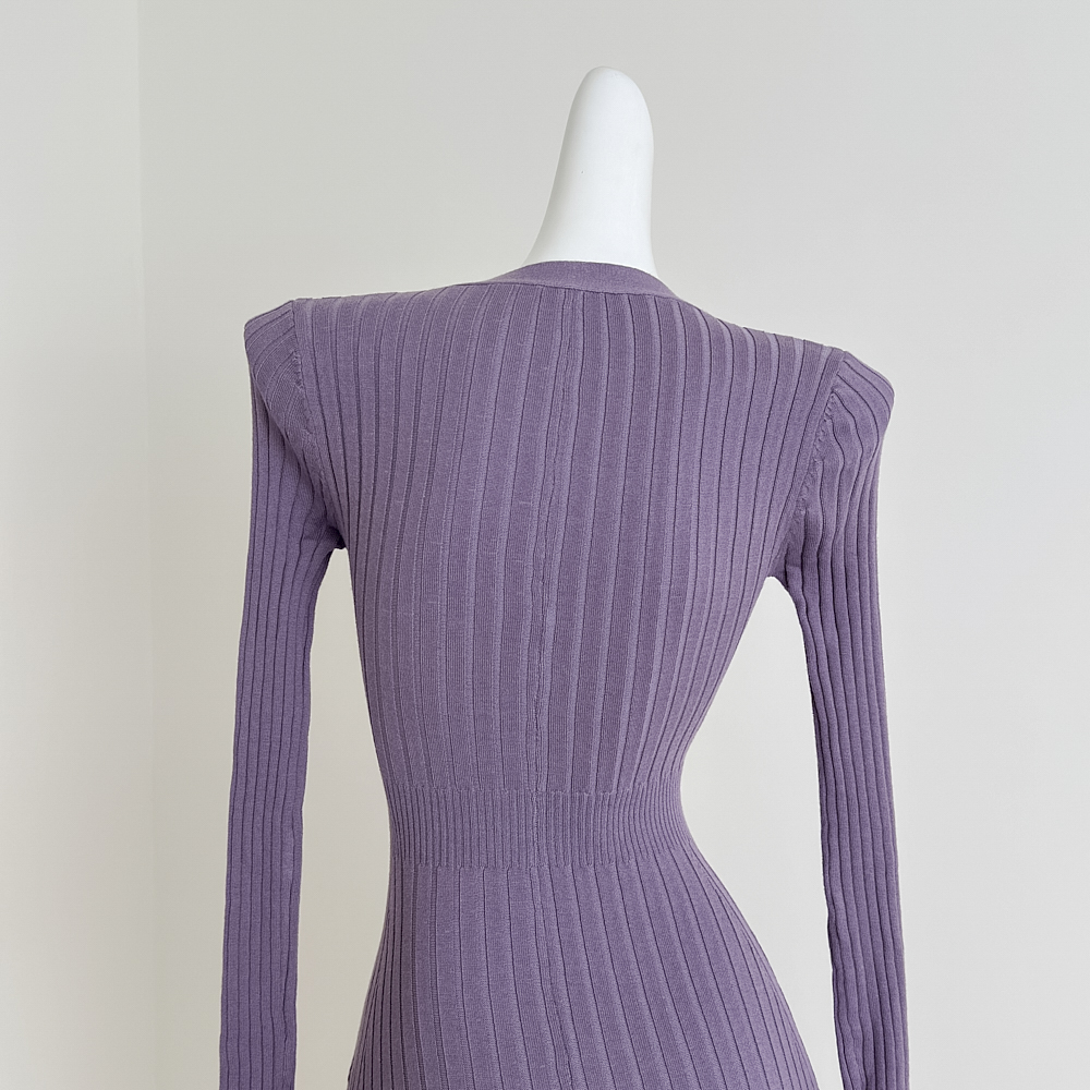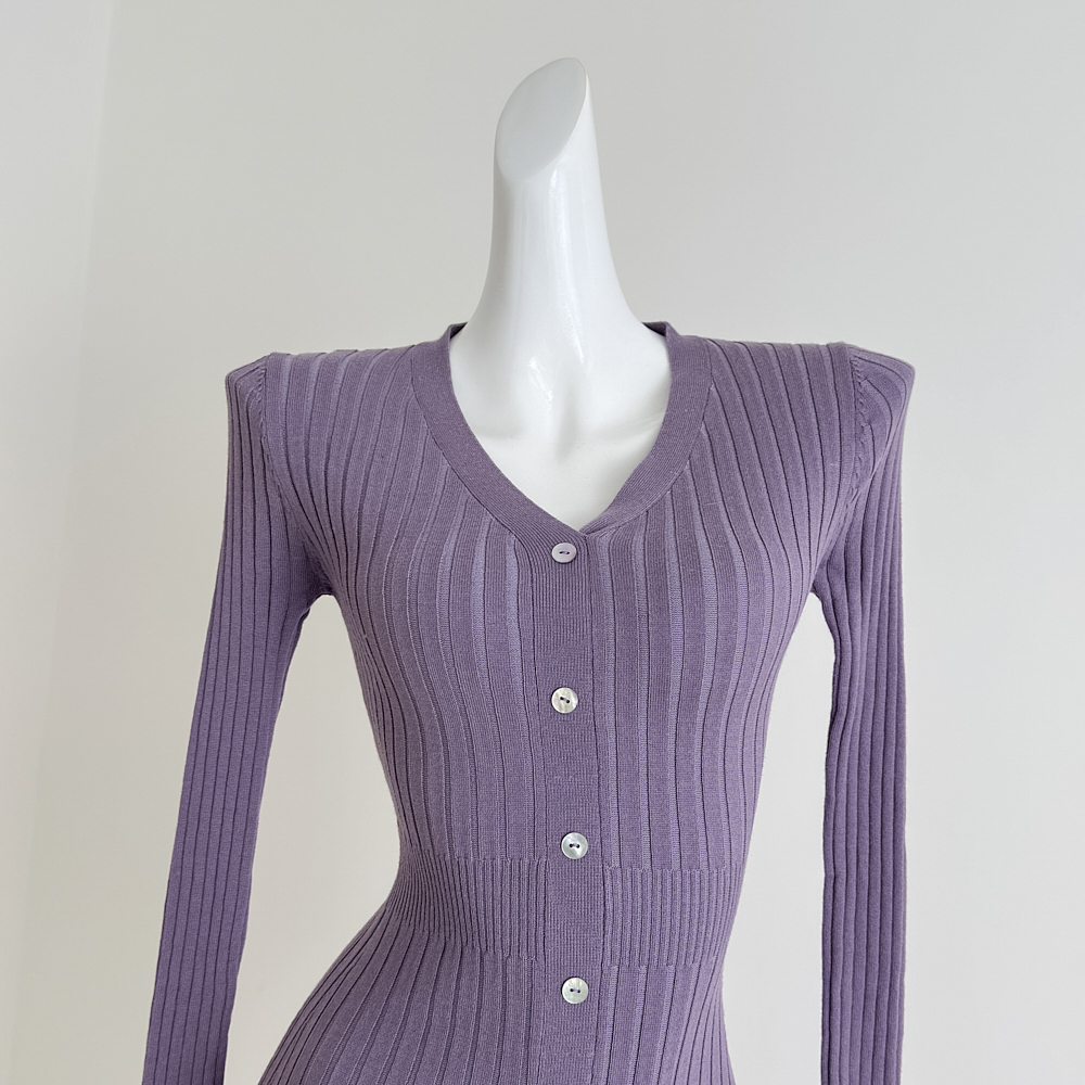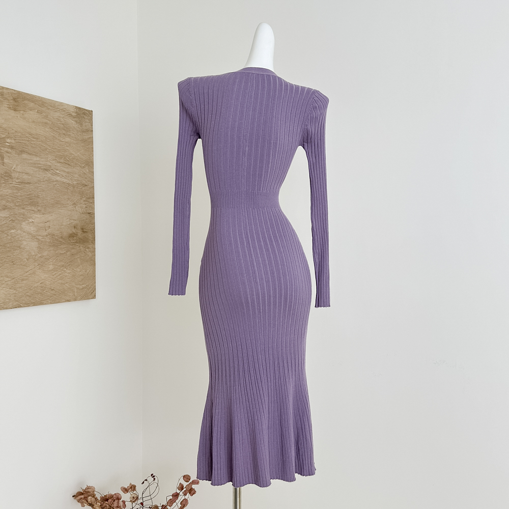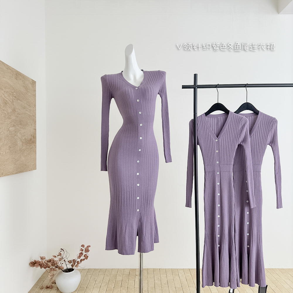 Fart Shop丁香情愫 羊毛V领针织紫色连衣裙冬鱼尾圣诞包臀裙