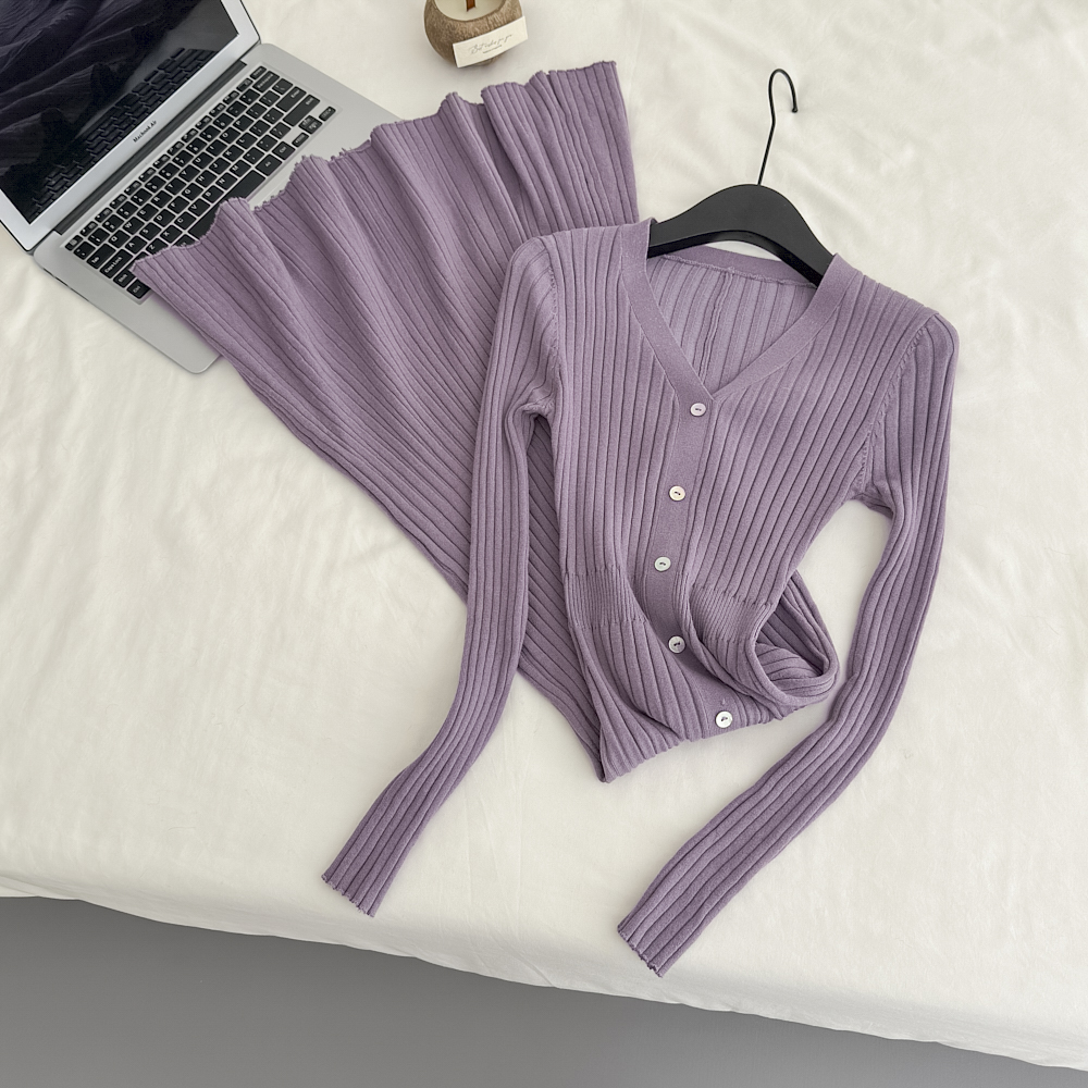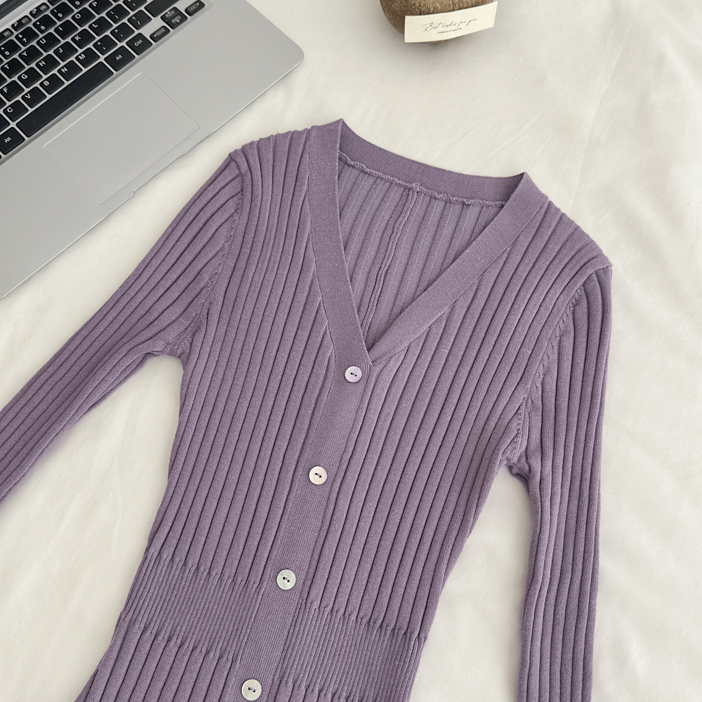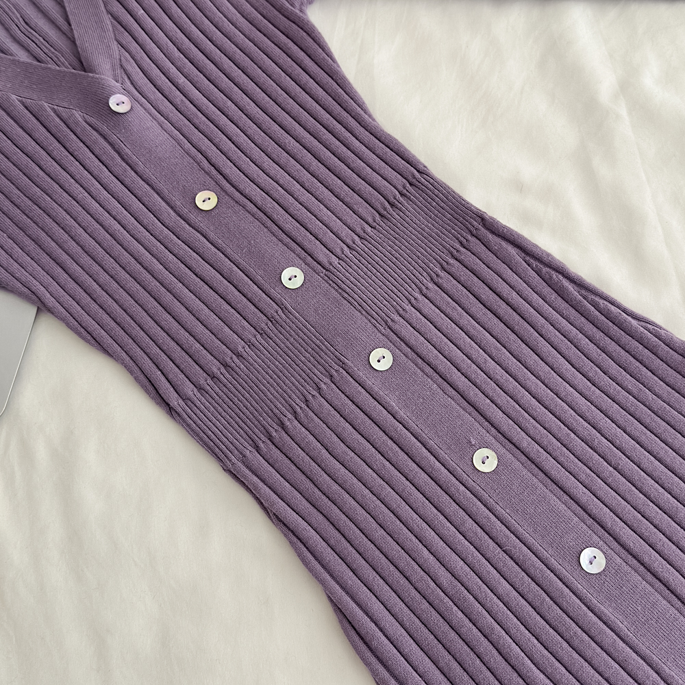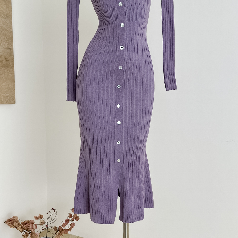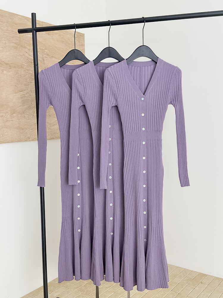 Fart Shop丁香情愫 羊毛V领针织紫色连衣裙冬鱼尾圣诞包臀裙