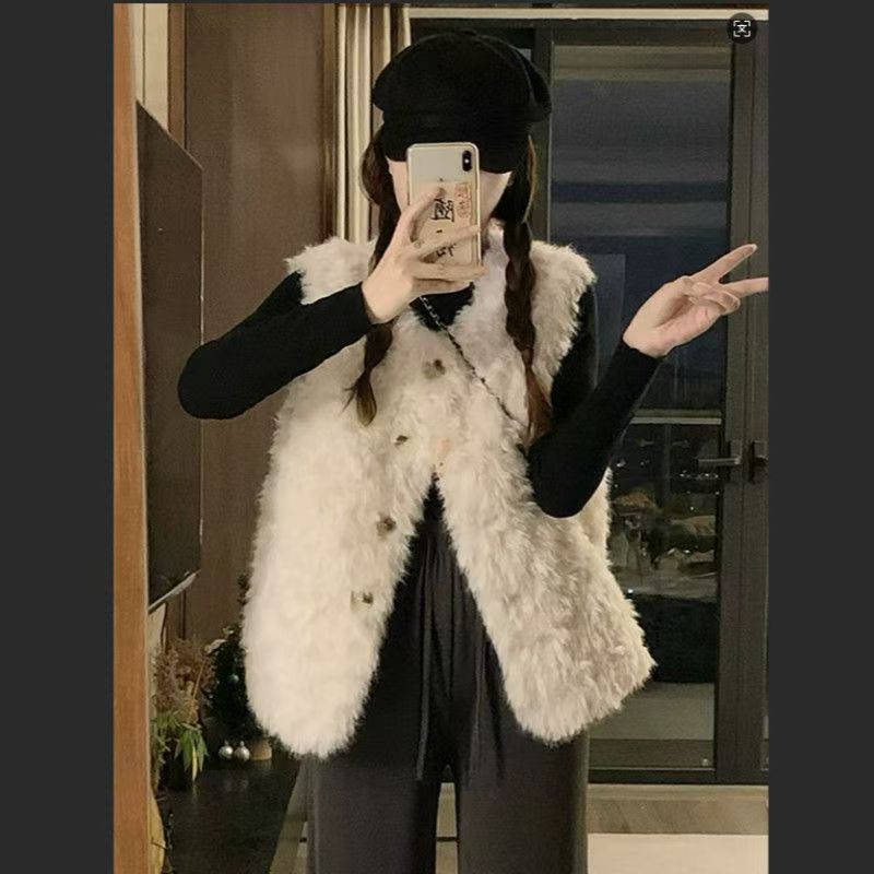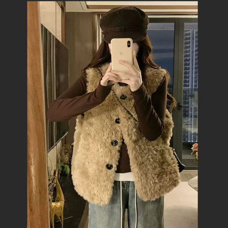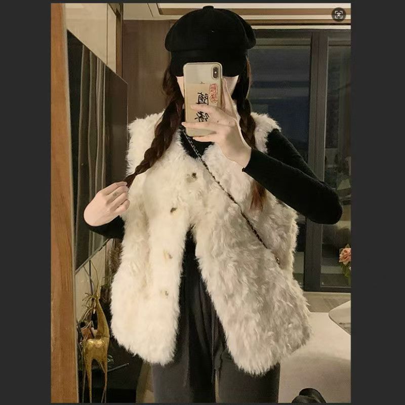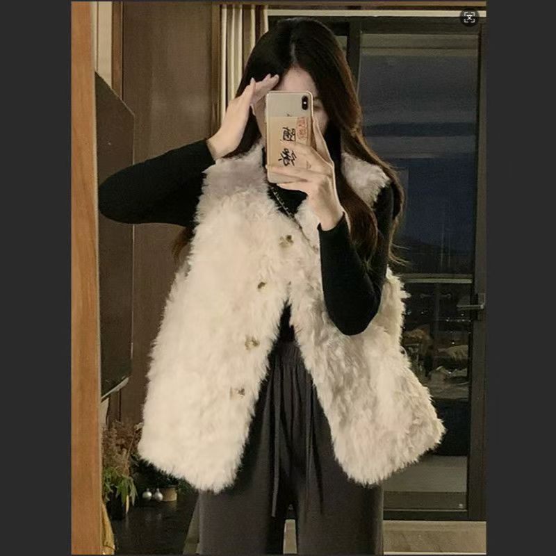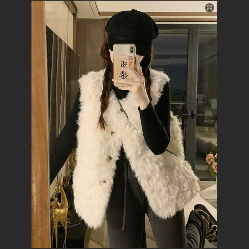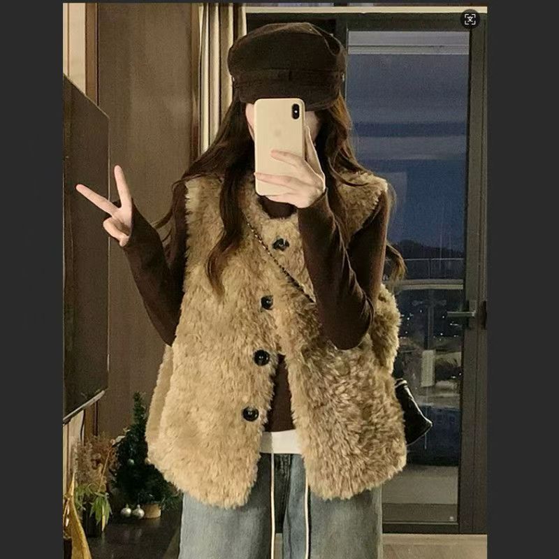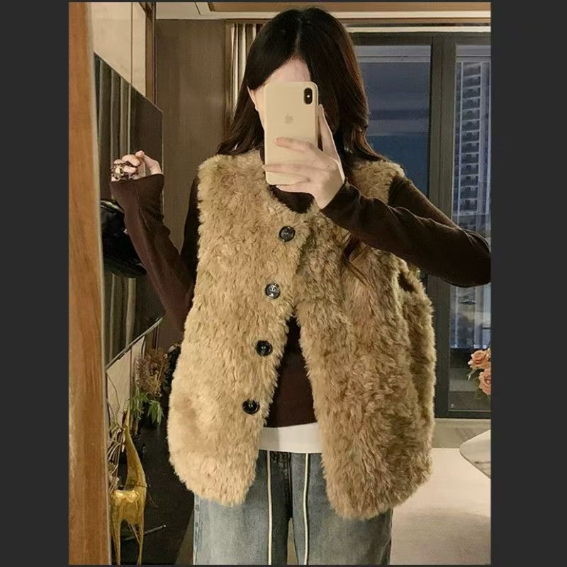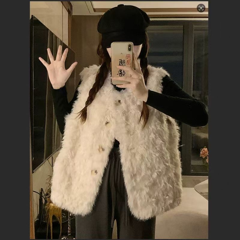 秋冬季新款仿羊羔毛慵懒风马甲皮草外套托斯卡纳坎肩毛毛保暖背心
