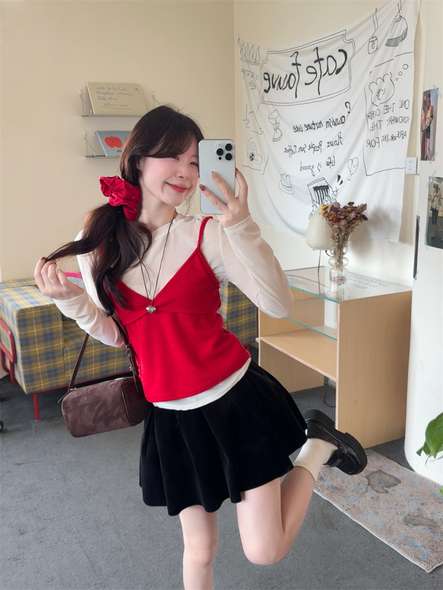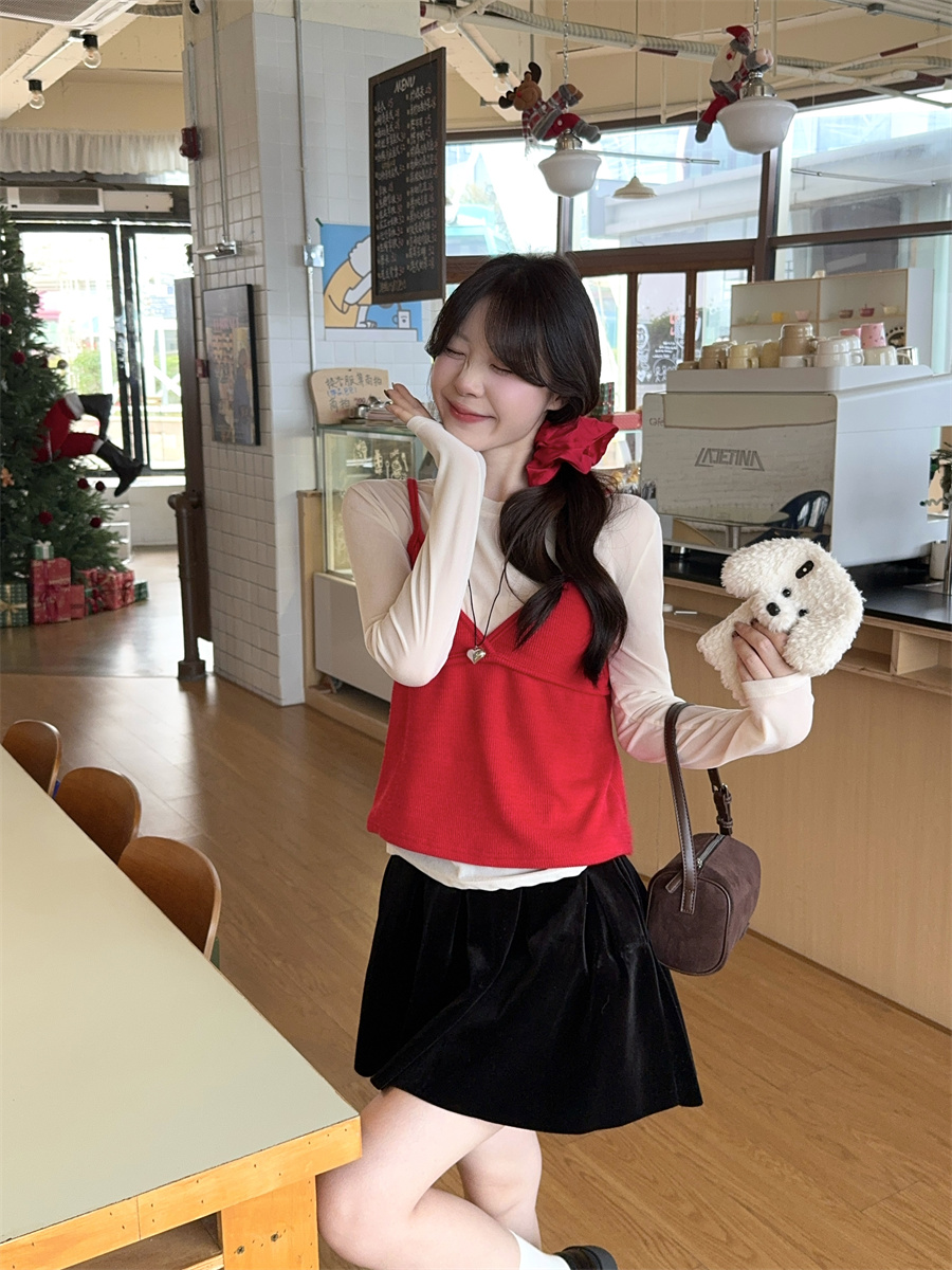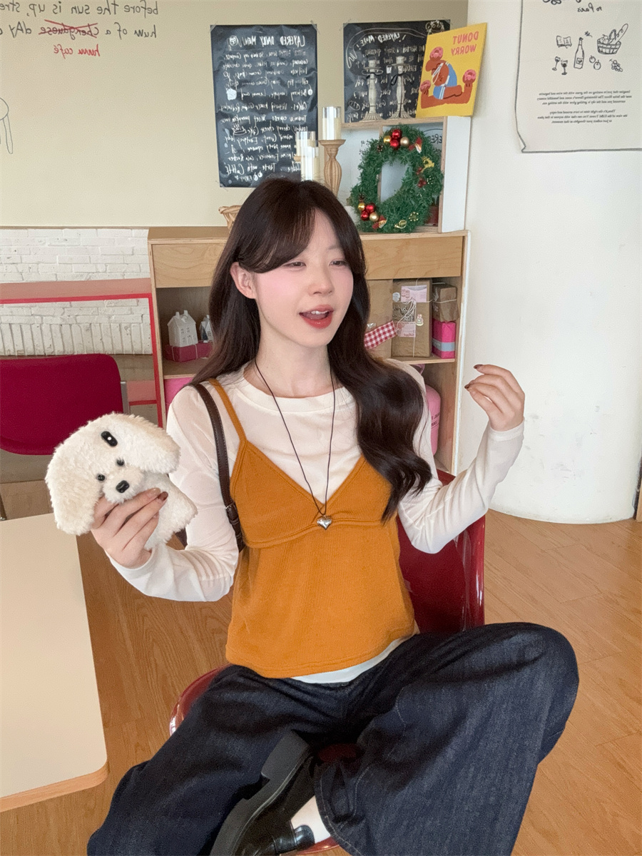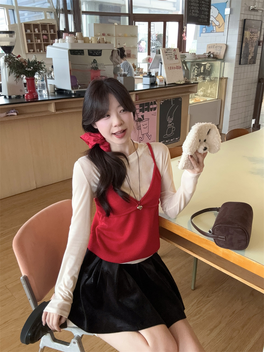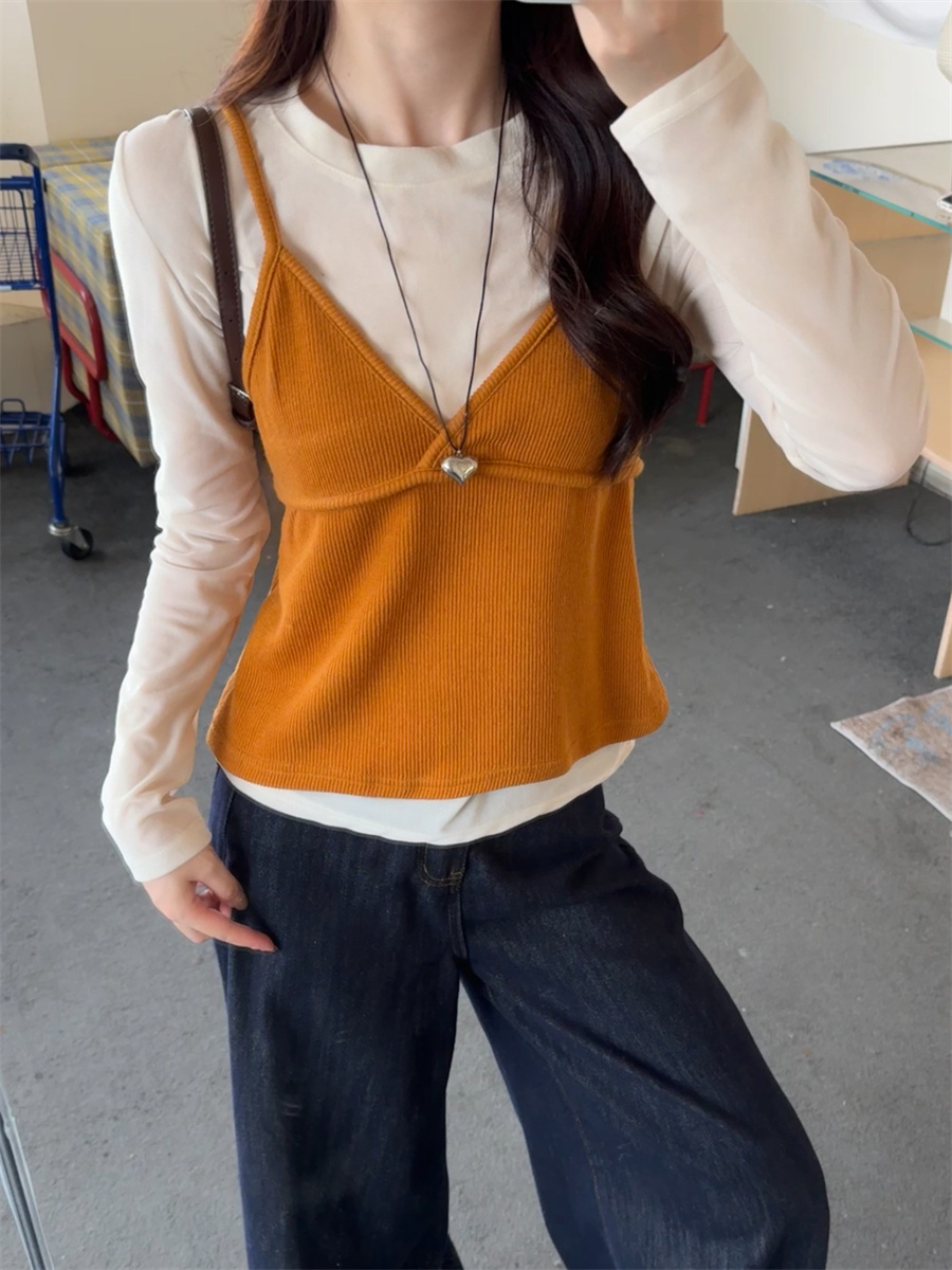 实拍~韩版甜美叠穿针织吊带两件套