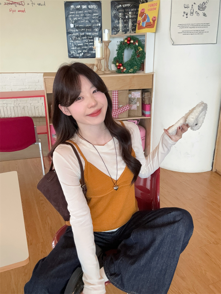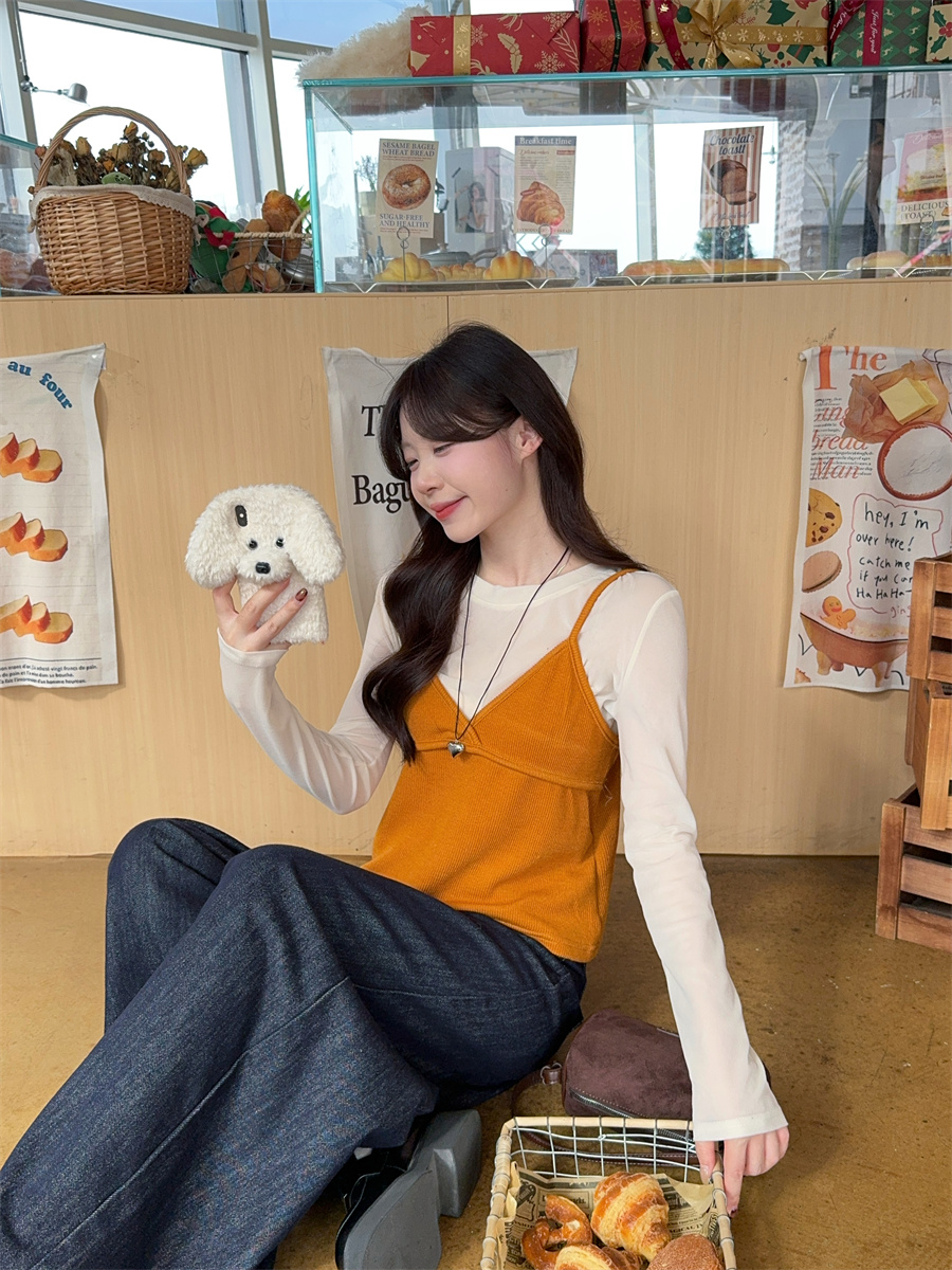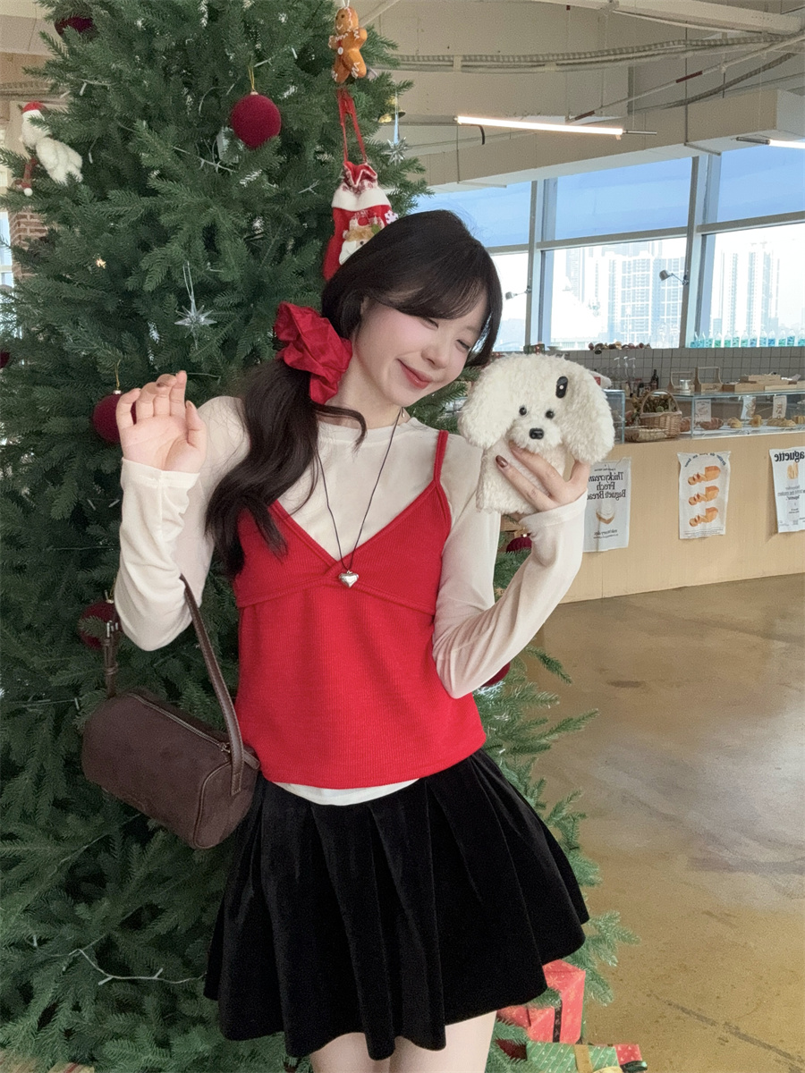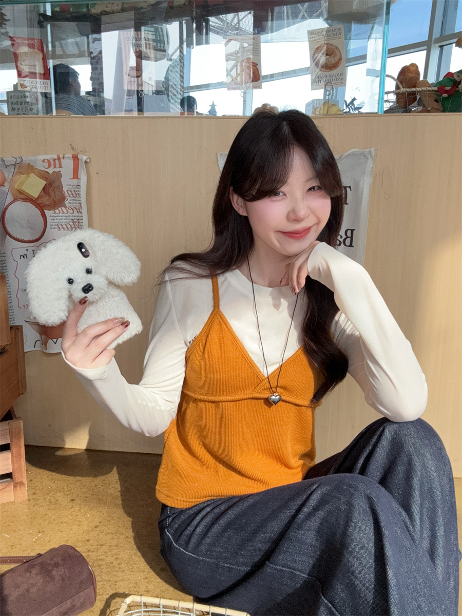实拍~韩版甜美叠穿针织吊带两件套