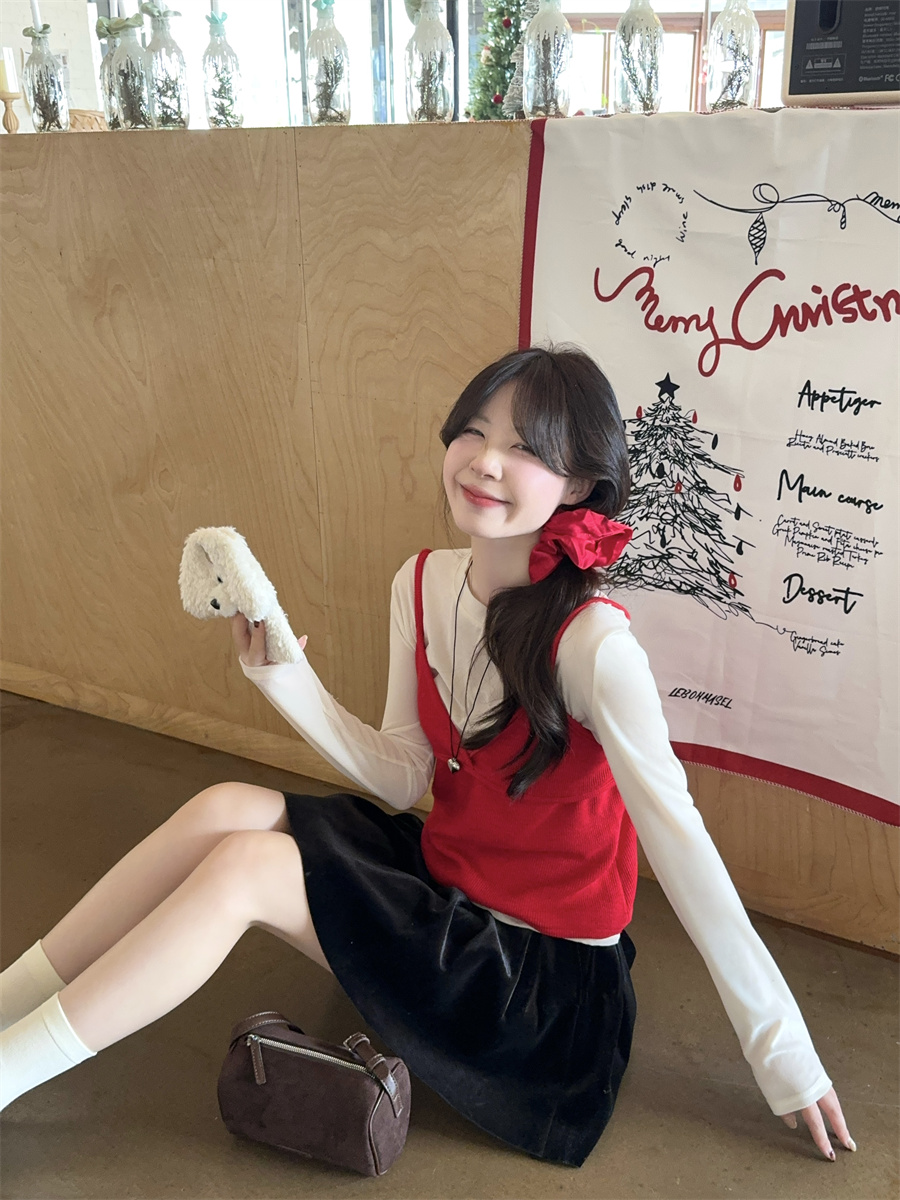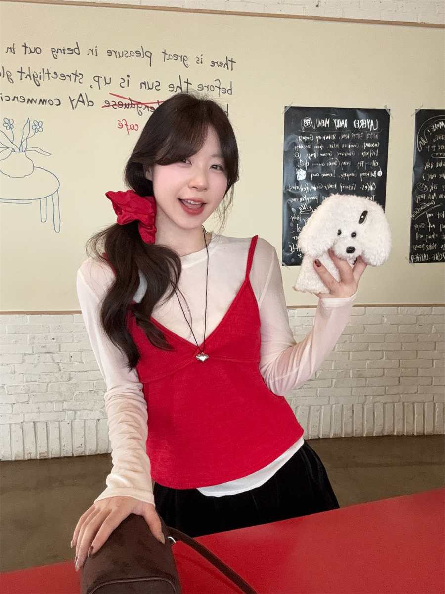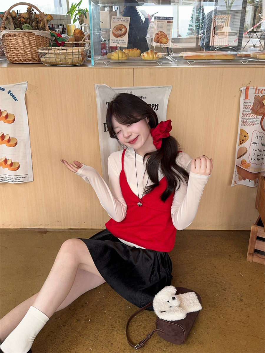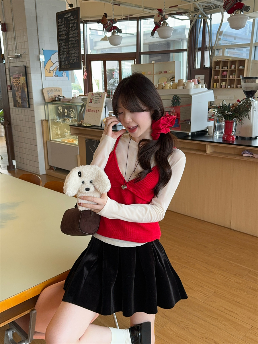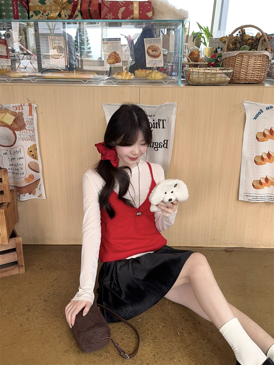 实拍~韩版甜美叠穿针织吊带两件套