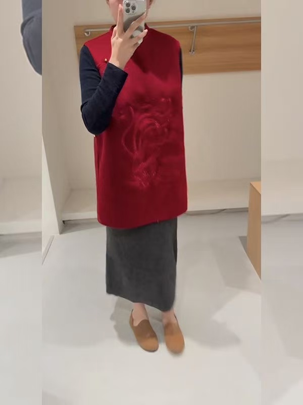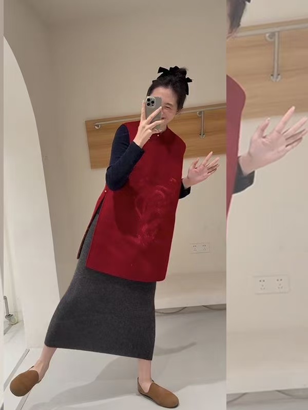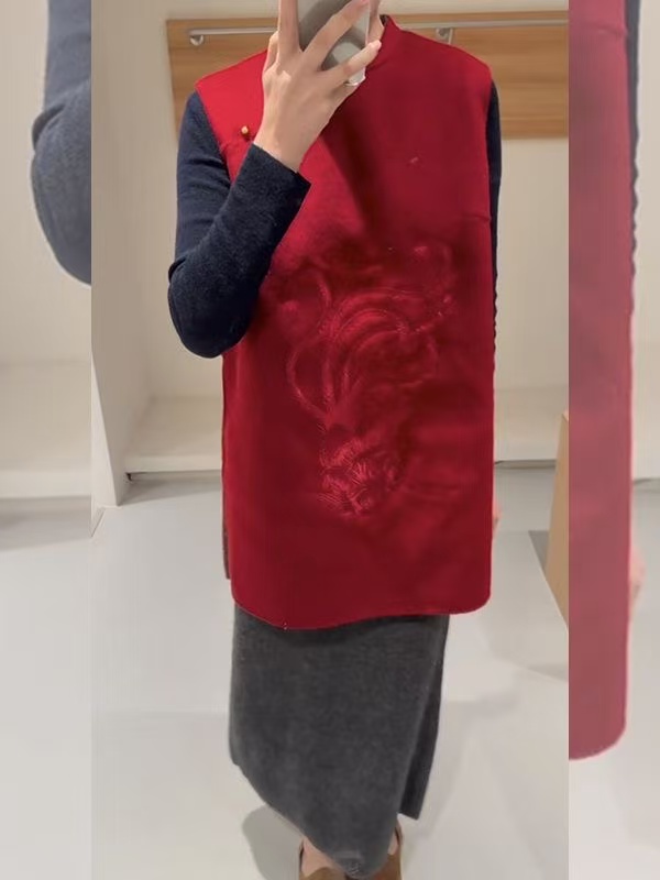 新中式红色设计感超好看马甲2025年冬季小个子通勤改良高级感马夹