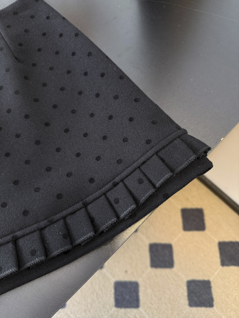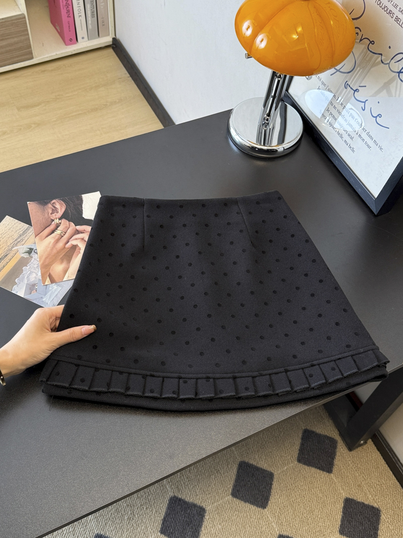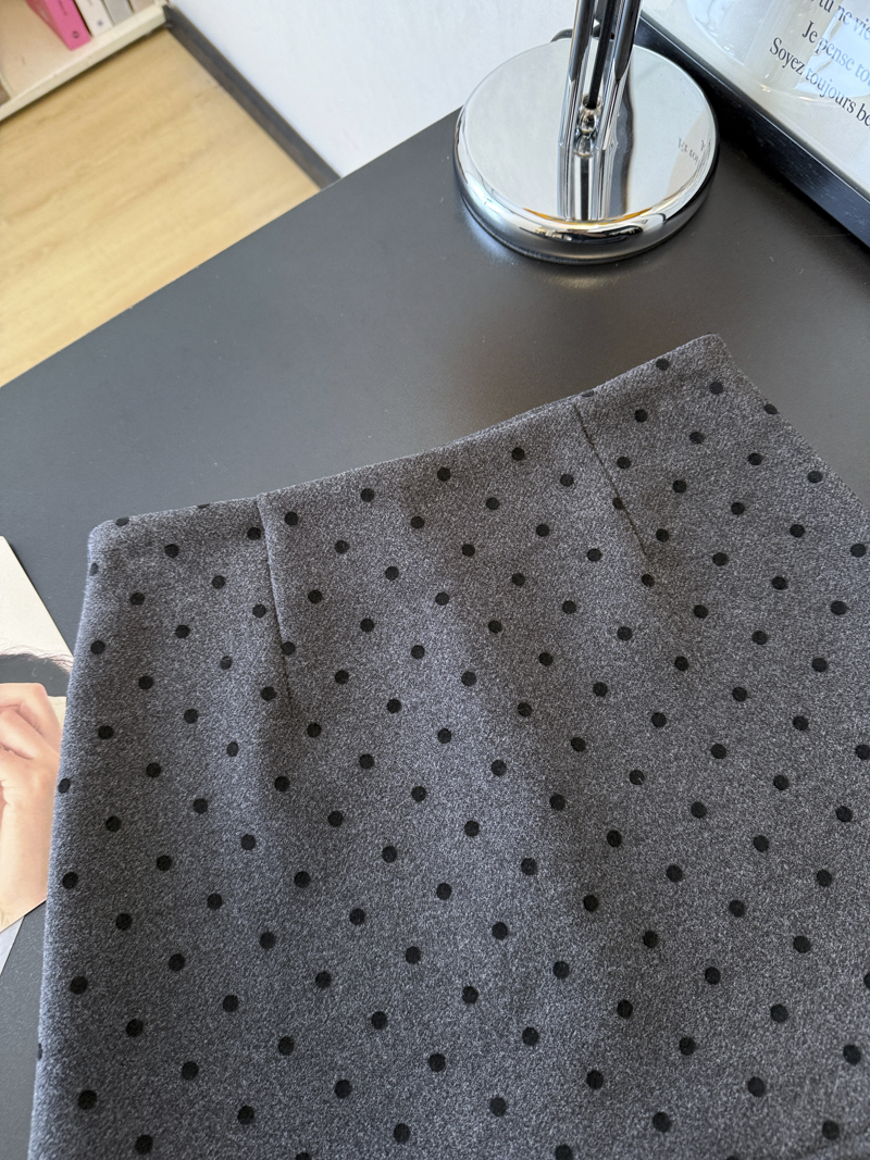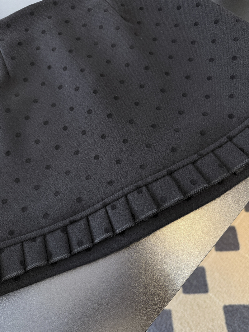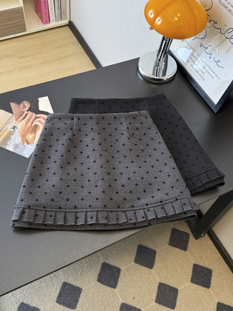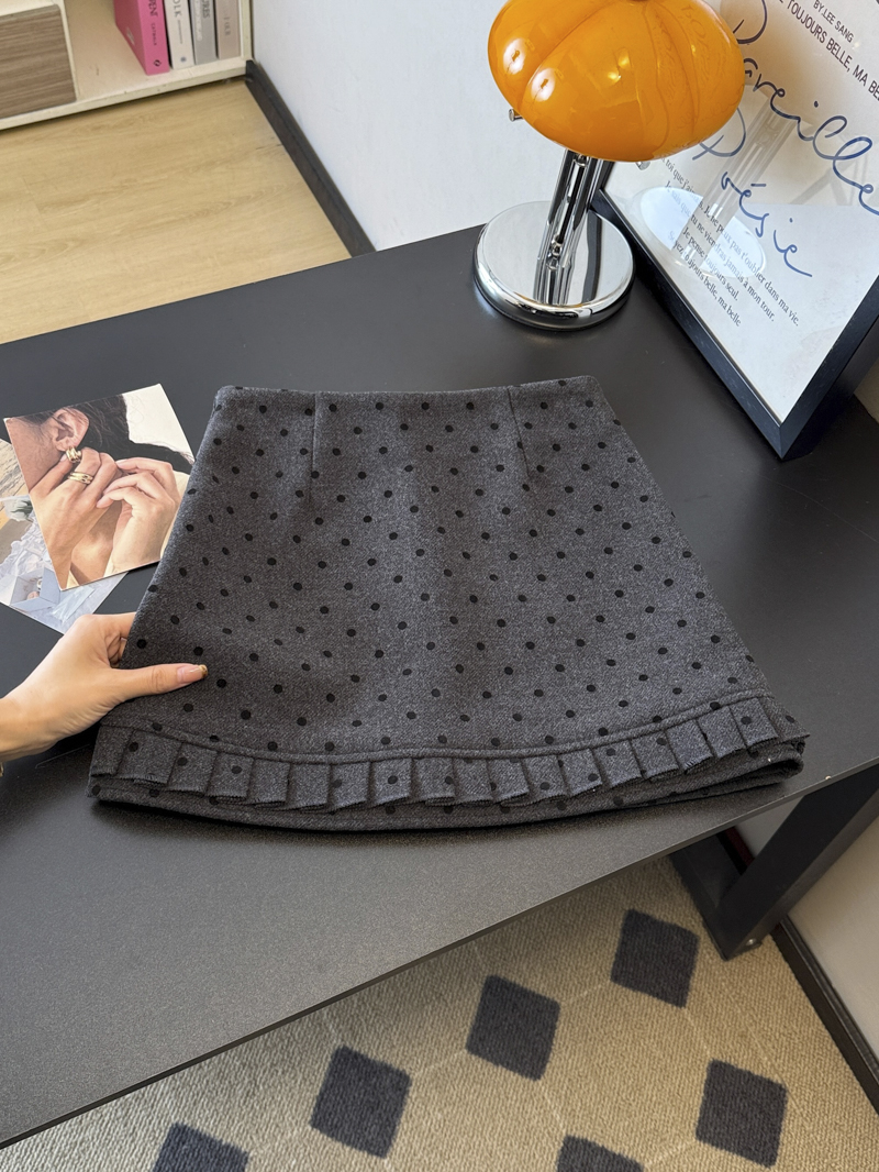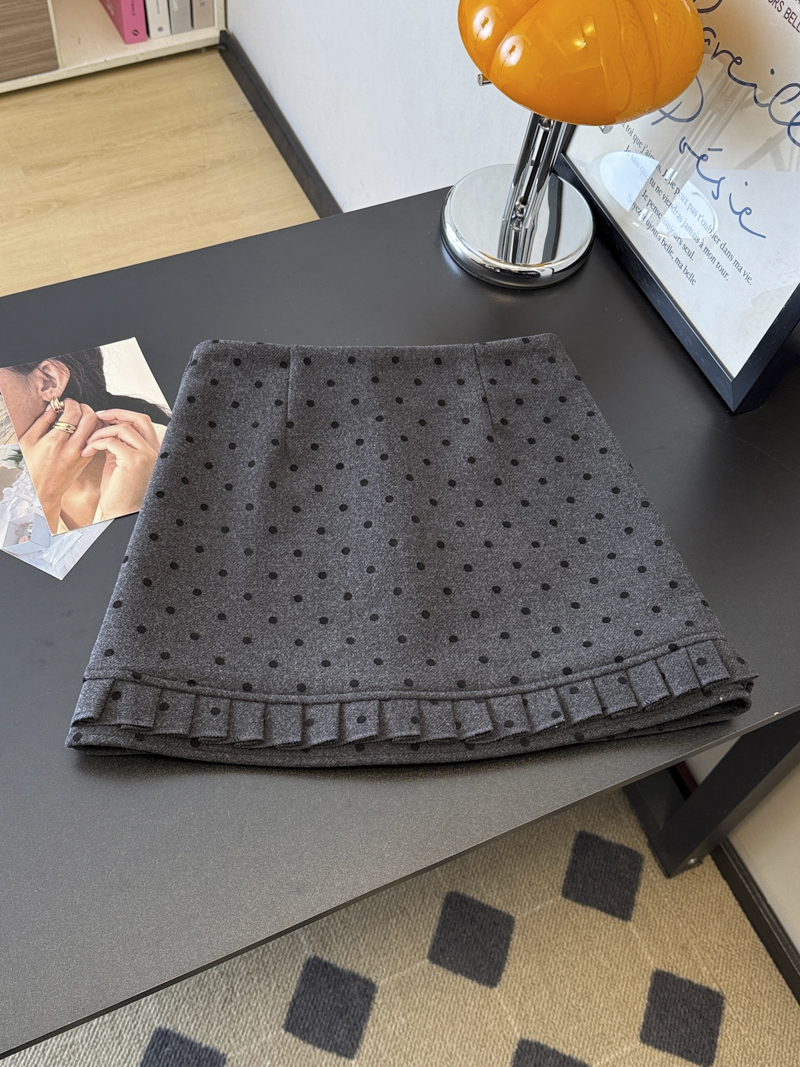实拍 秋冬韩系灰色波点半身裙女2025秋冬新款减龄木耳边A字短裙