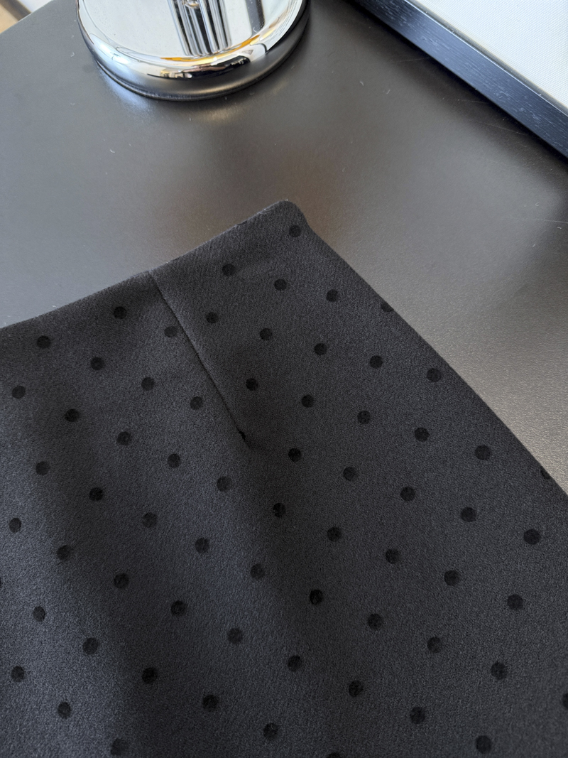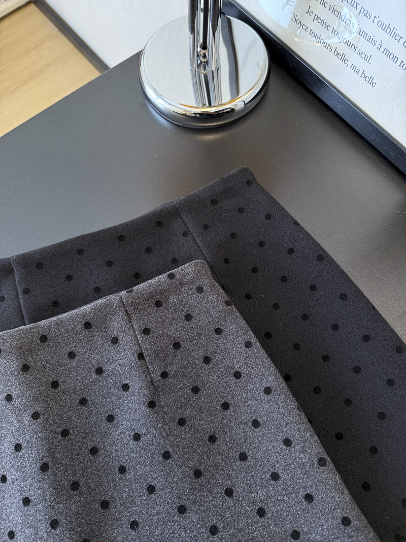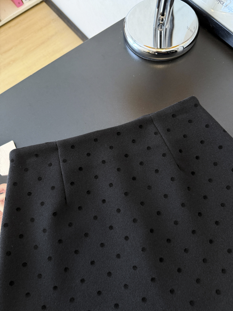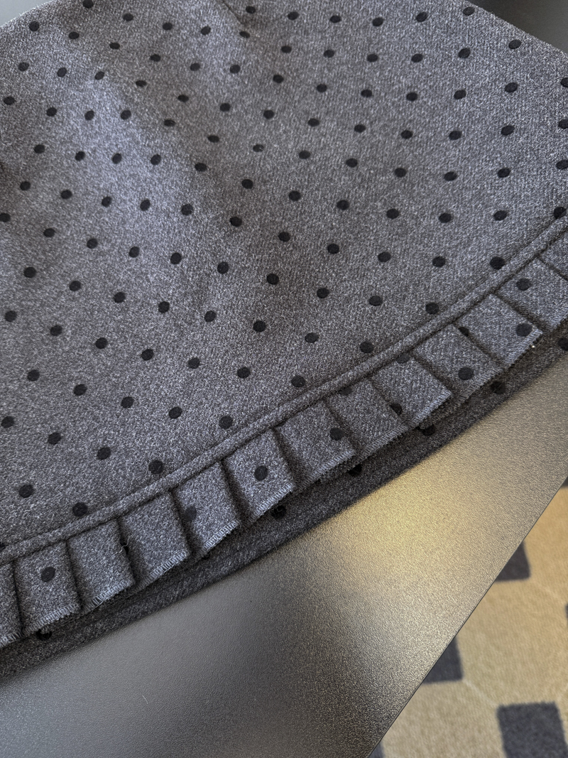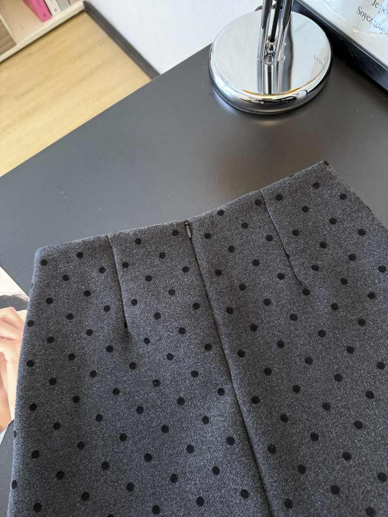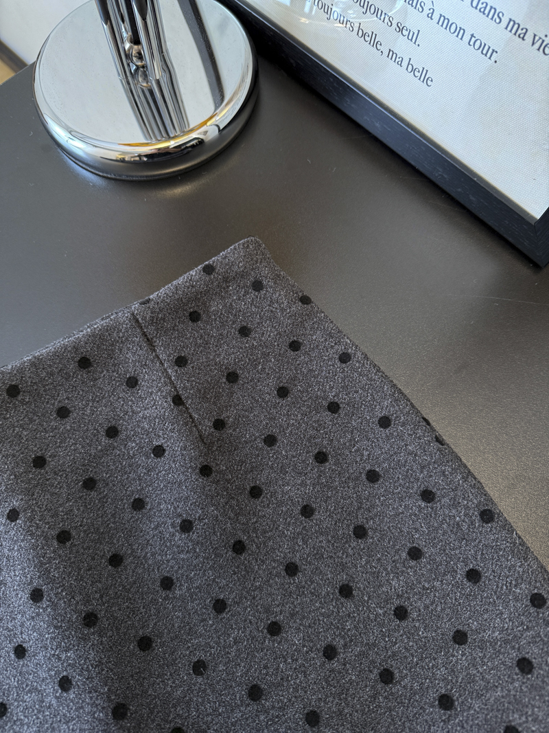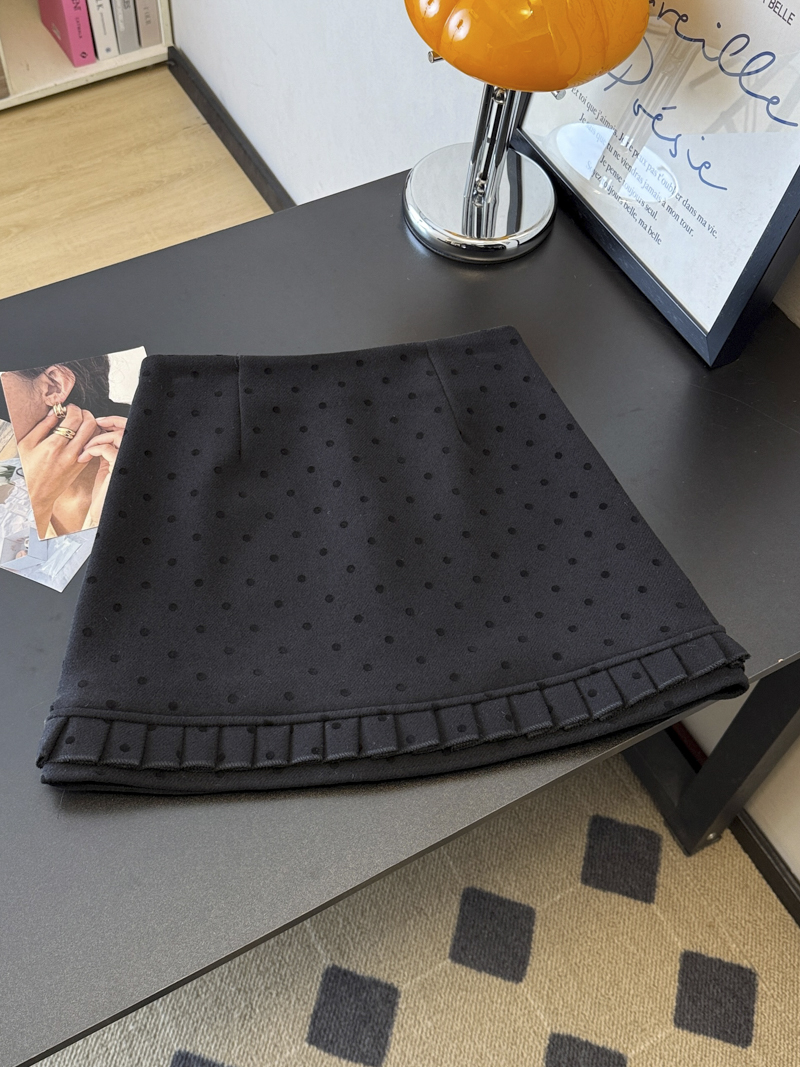 实拍 秋冬韩系灰色波点半身裙女2025秋冬新款减龄木耳边A字短裙