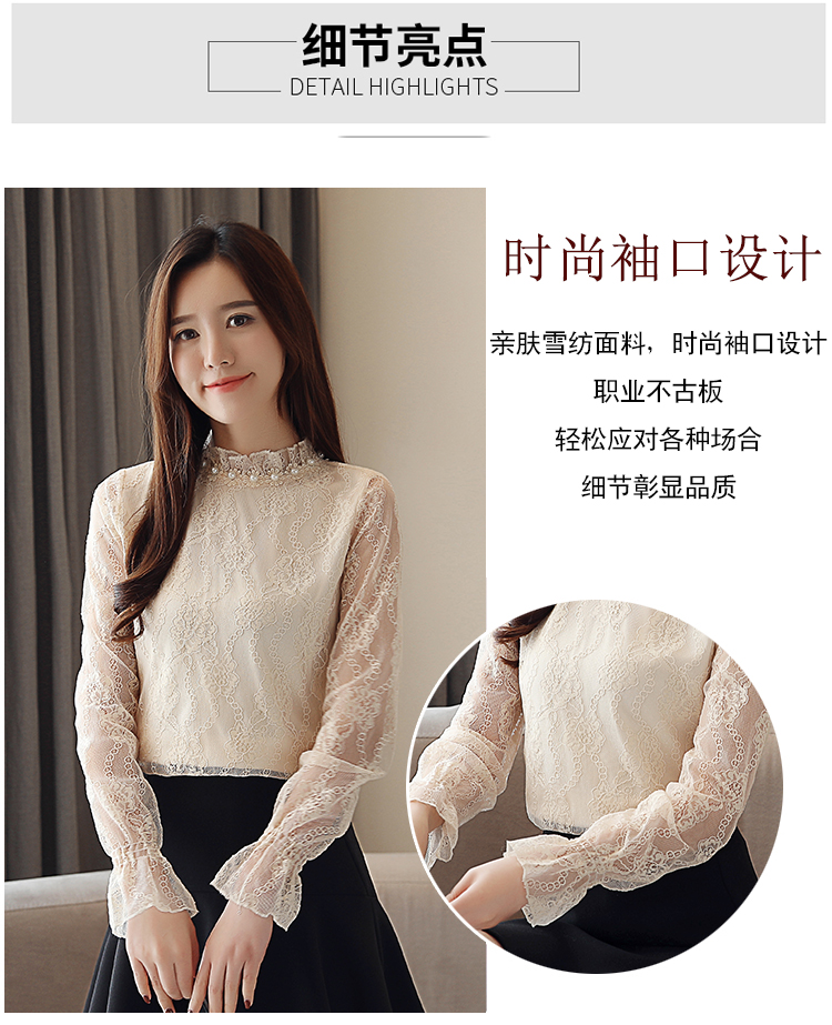 2026春秋装新款韩版时尚欧货蕾丝打底衫洋气雪纺小衫女