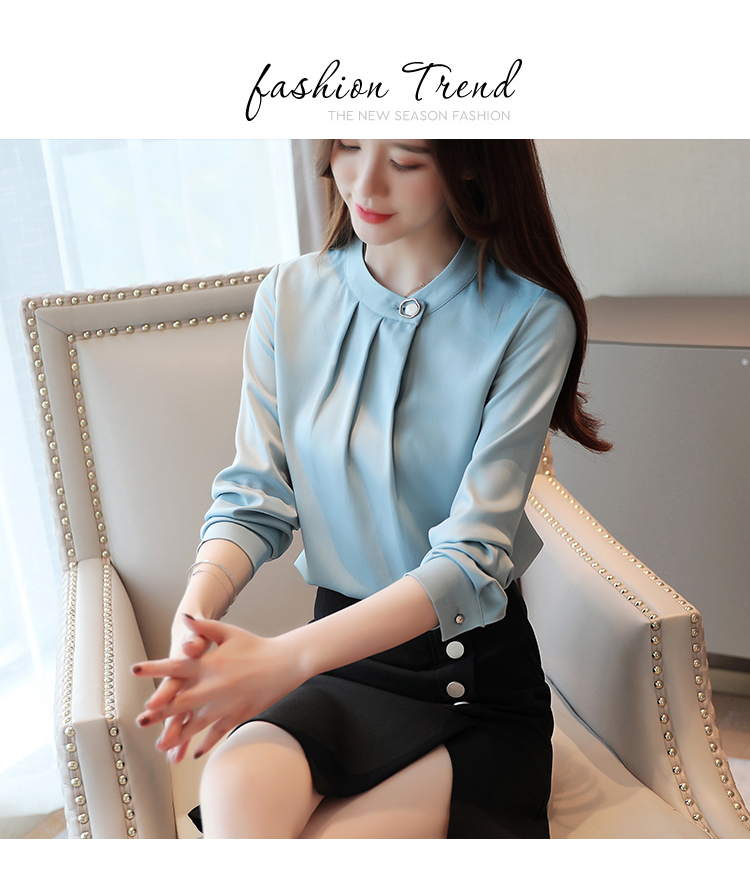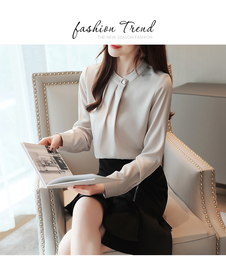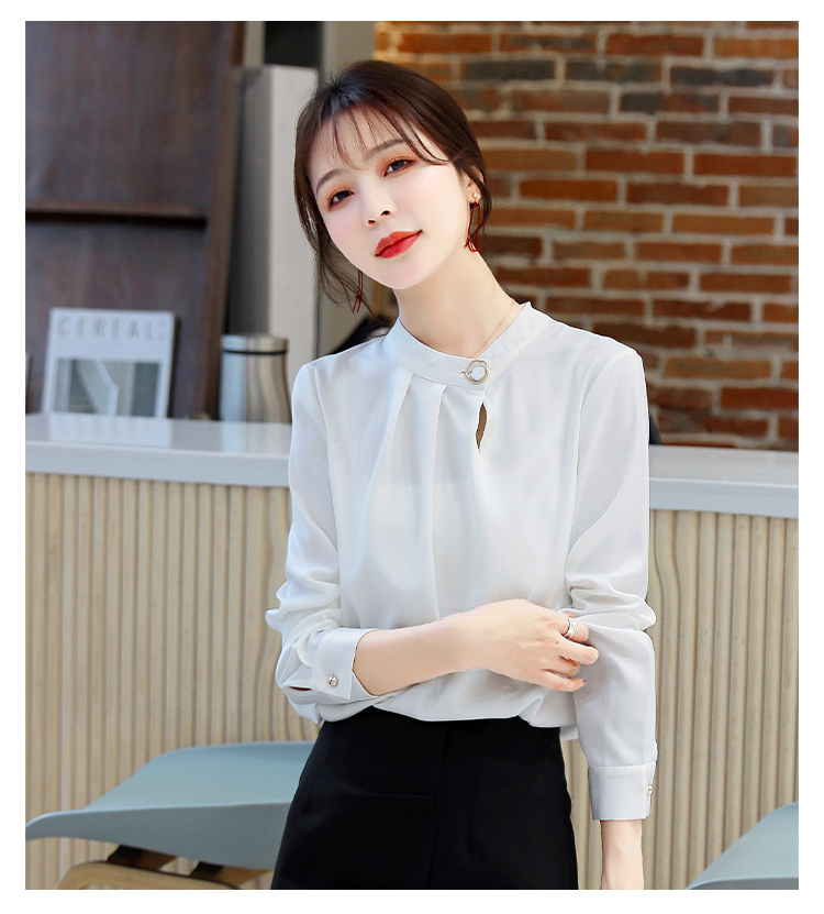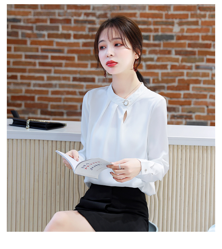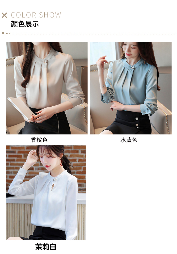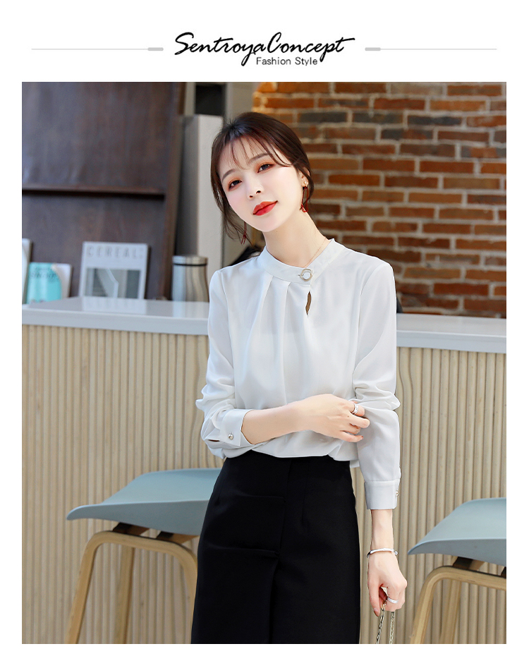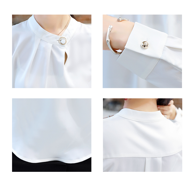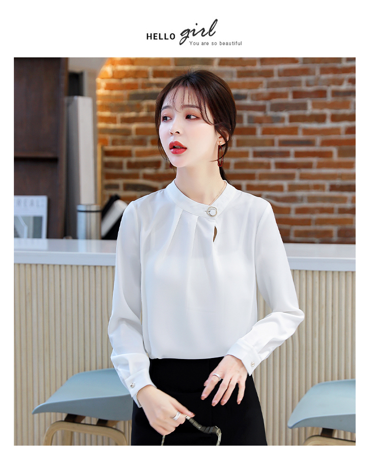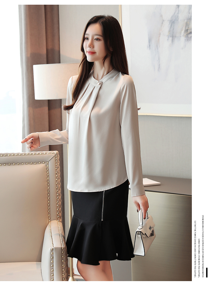 2026년 봄 시즌 전문 여성 셔츠의 실제 사진입니다. 독특한 한국 스타일의 긴팔 새틴 시폰 블라우스입니다.