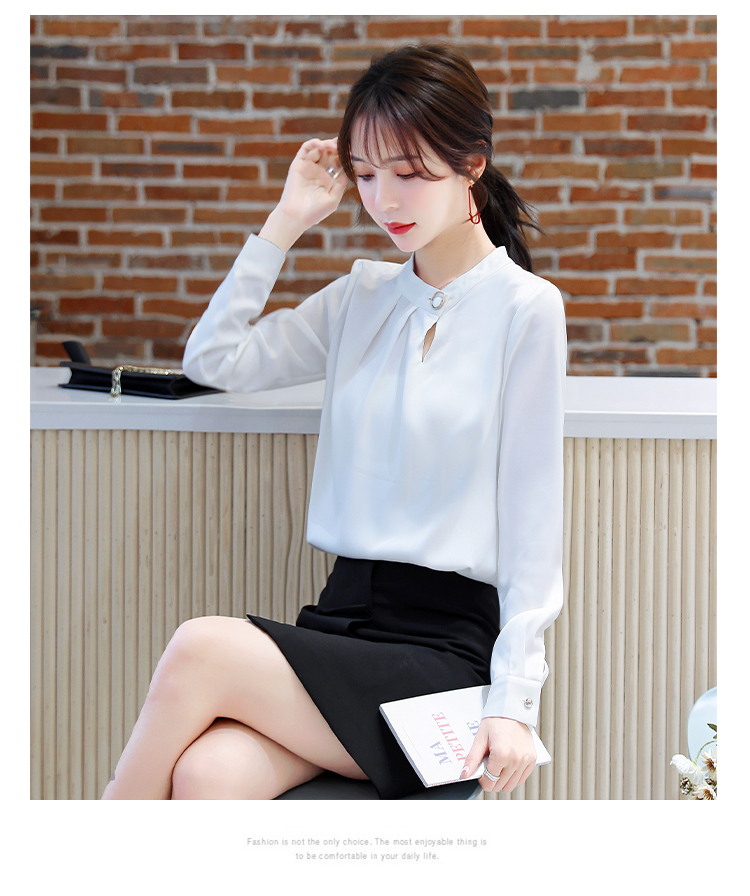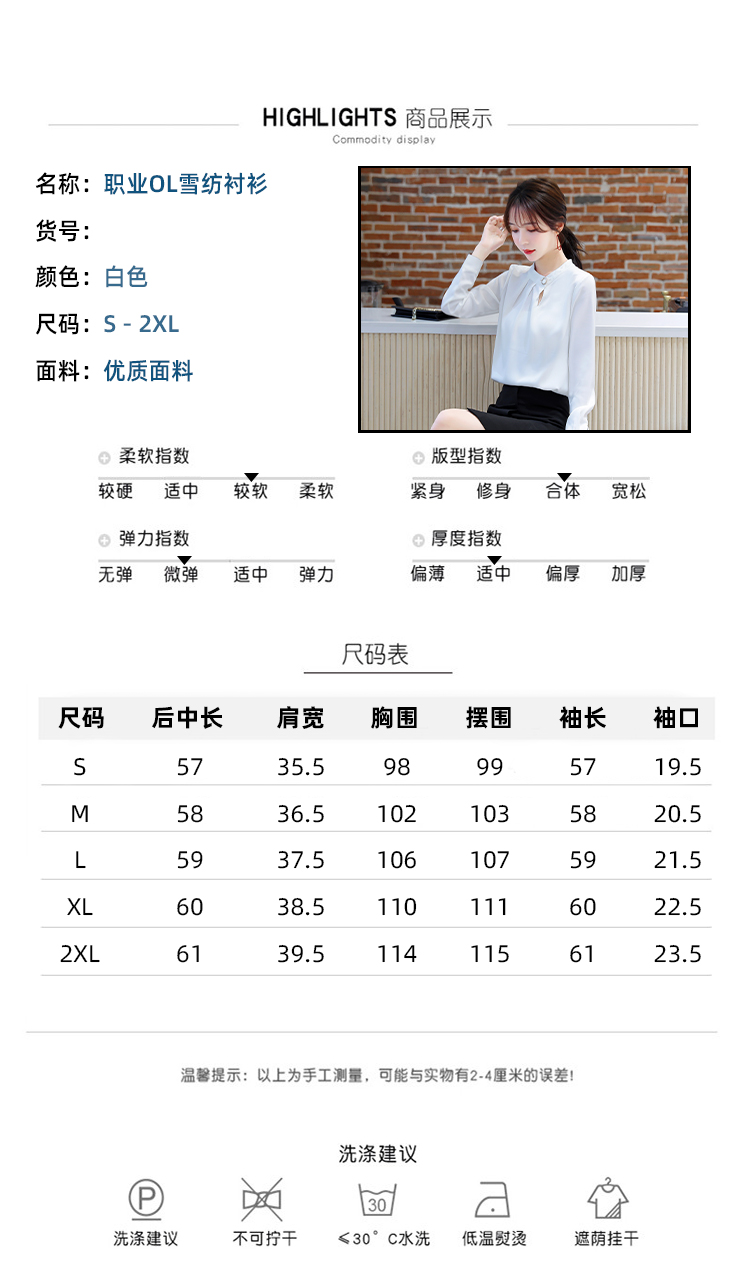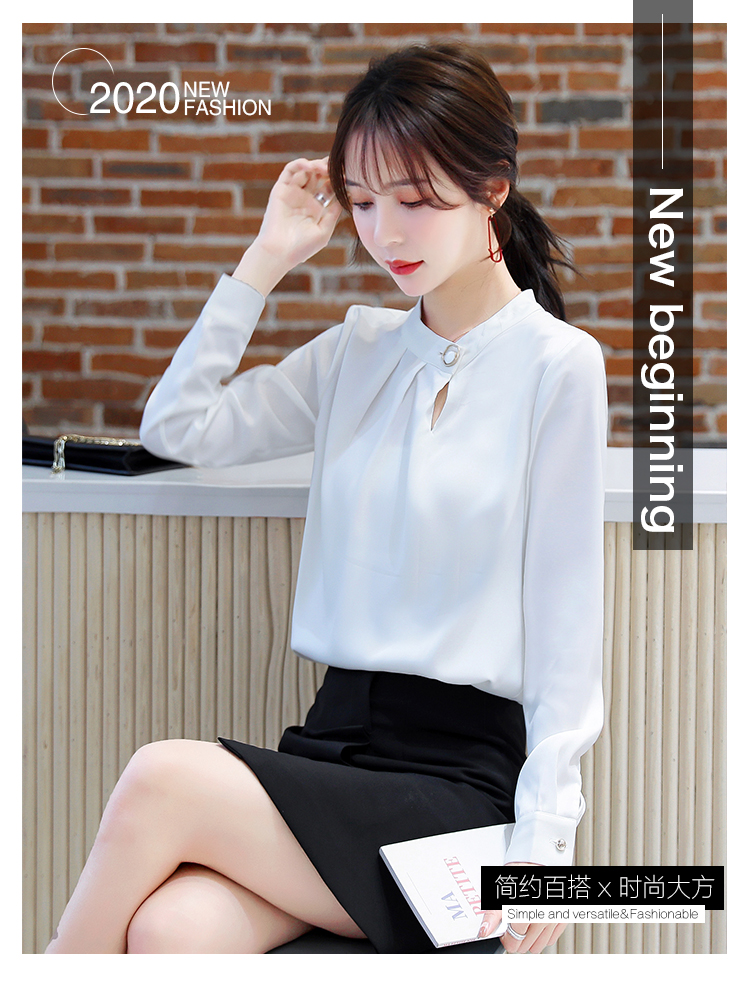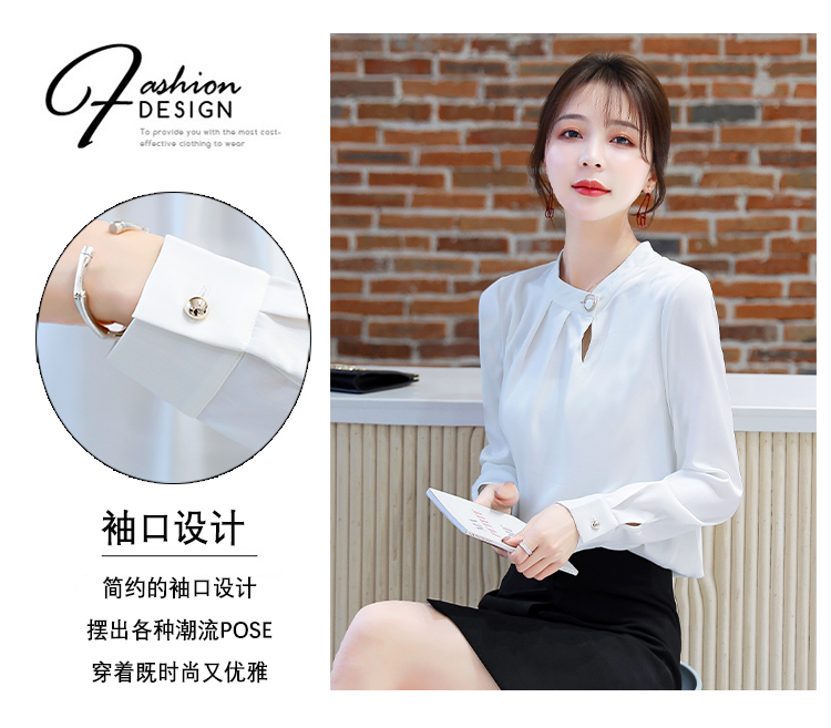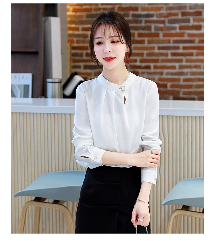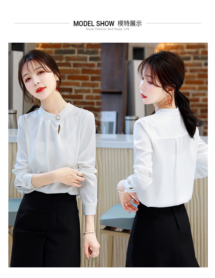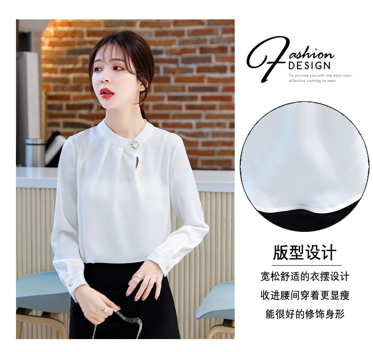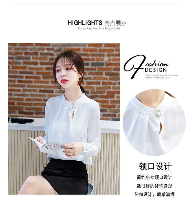 2026년 봄 시즌 전문 여성 셔츠의 실제 사진입니다. 독특한 한국 스타일의 긴팔 새틴 시폰 블라우스입니다.