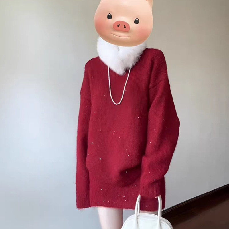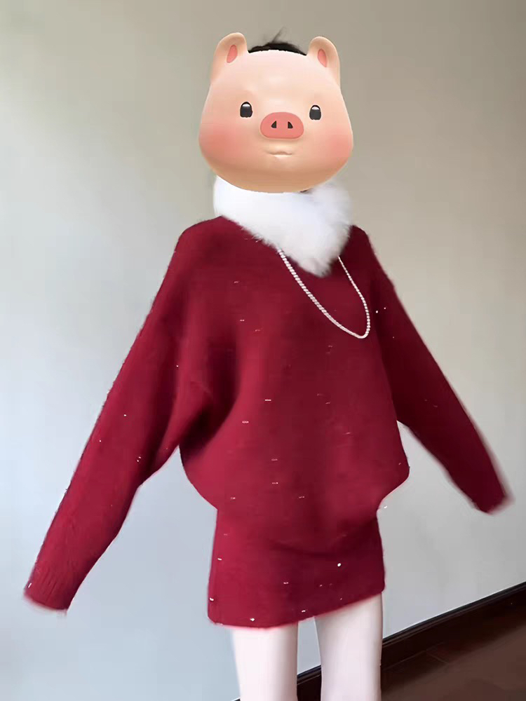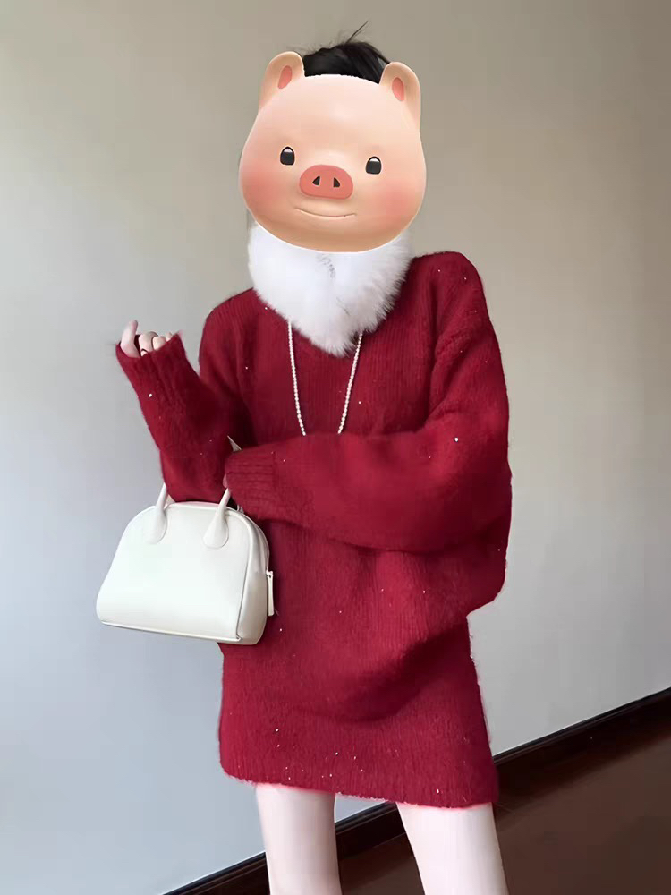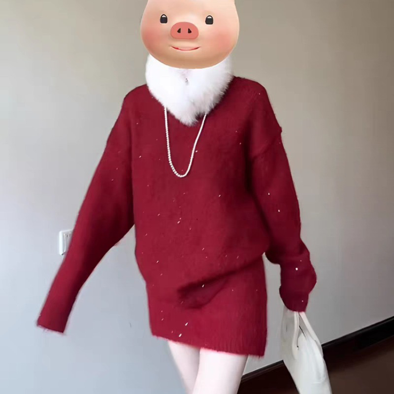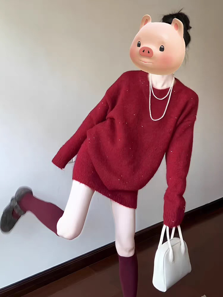 红色系穿搭一整套2026超火冬装独特漂亮韩系小香风毛衣短裙两件套