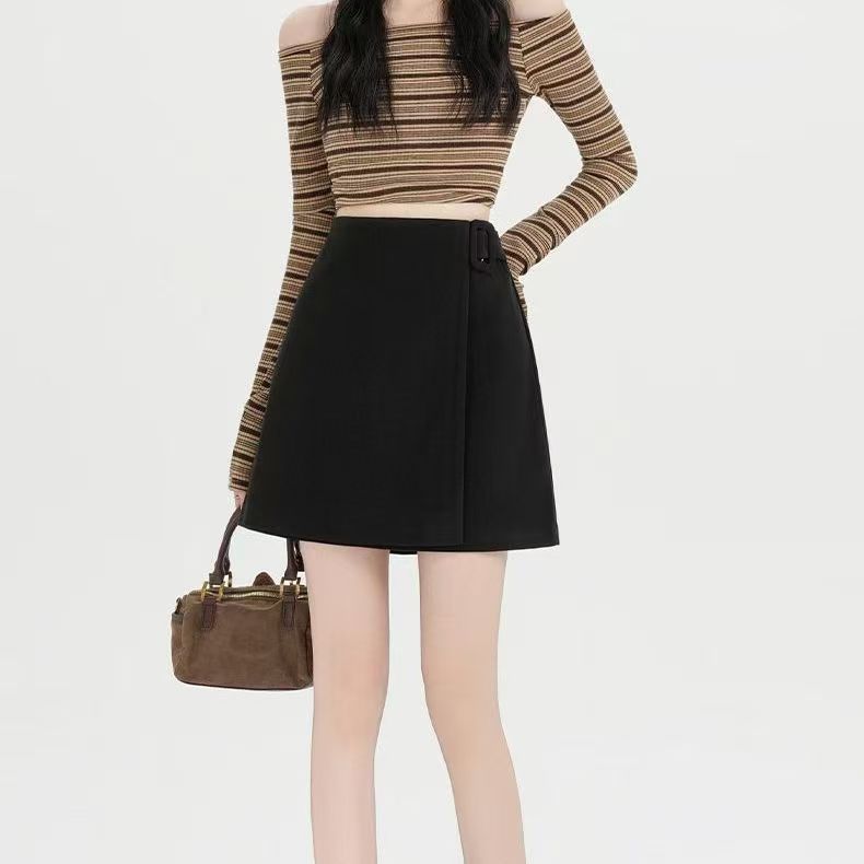 加厚350克星空呢+松紧腰+安全裤无后拉链新款百搭休闲风半身裙