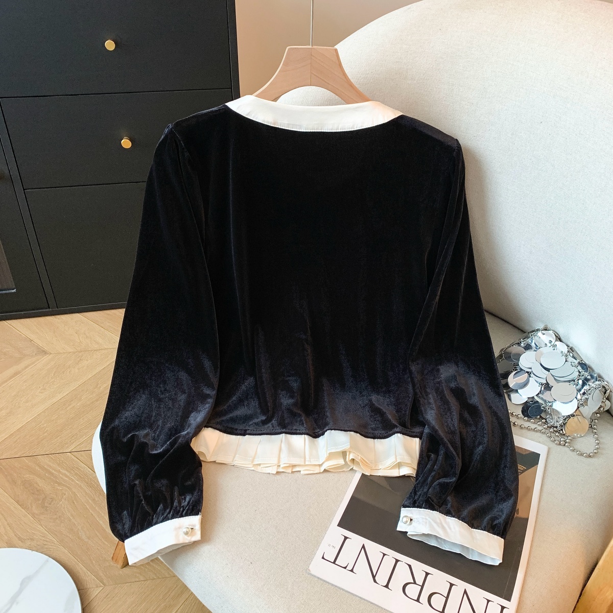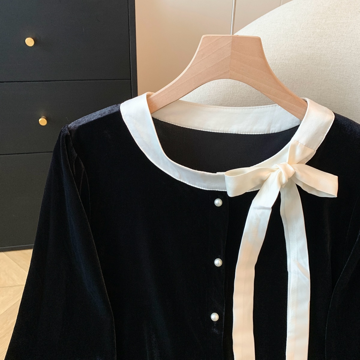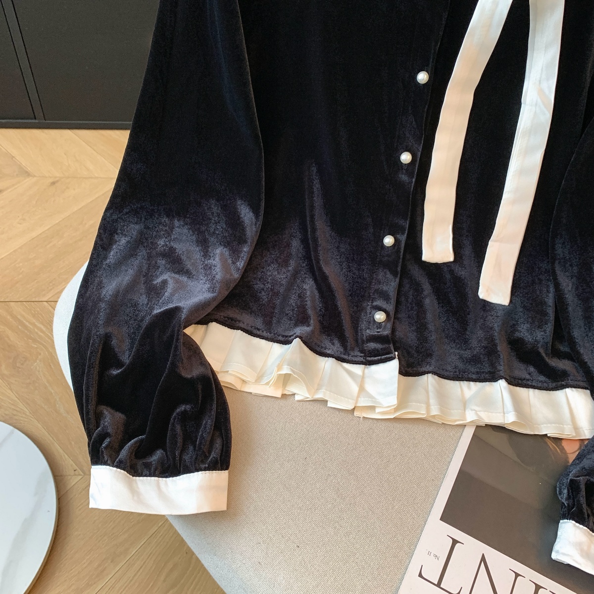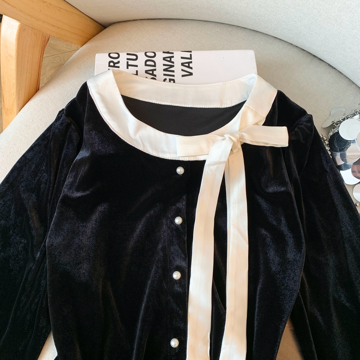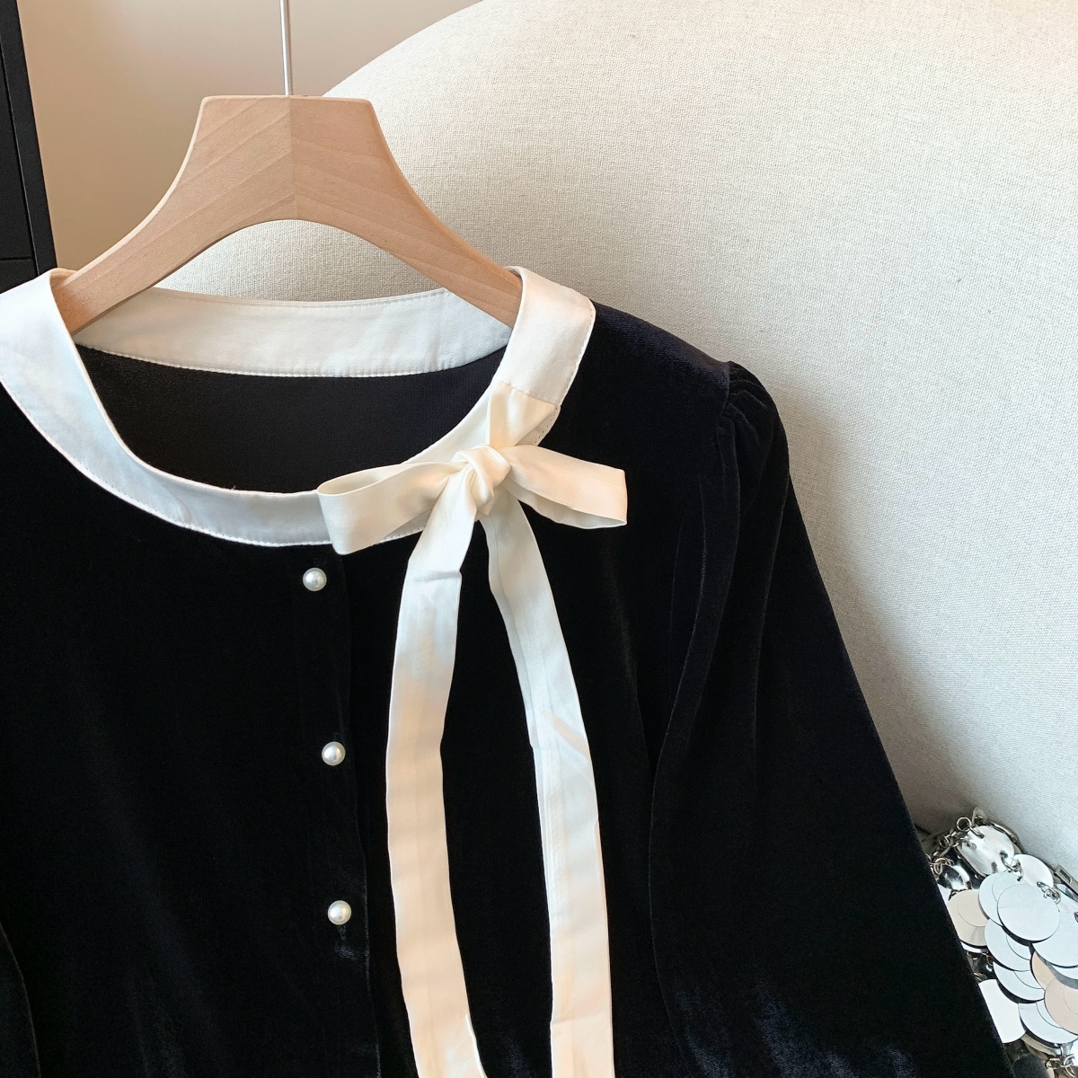 实拍秋冬甜辣妹复古丝绒打底衬衫女设计感蝴蝶结系带修身长袖上衣