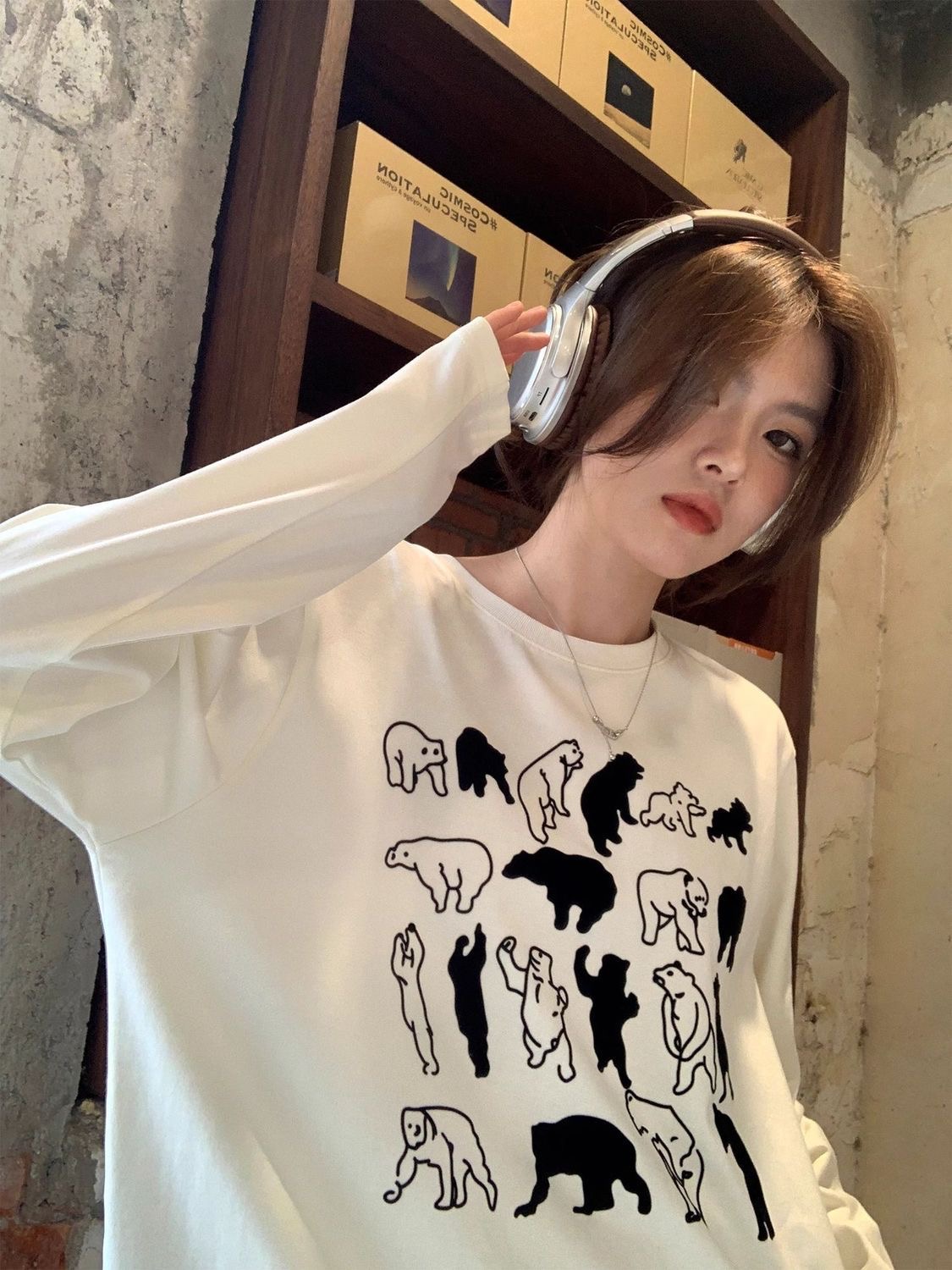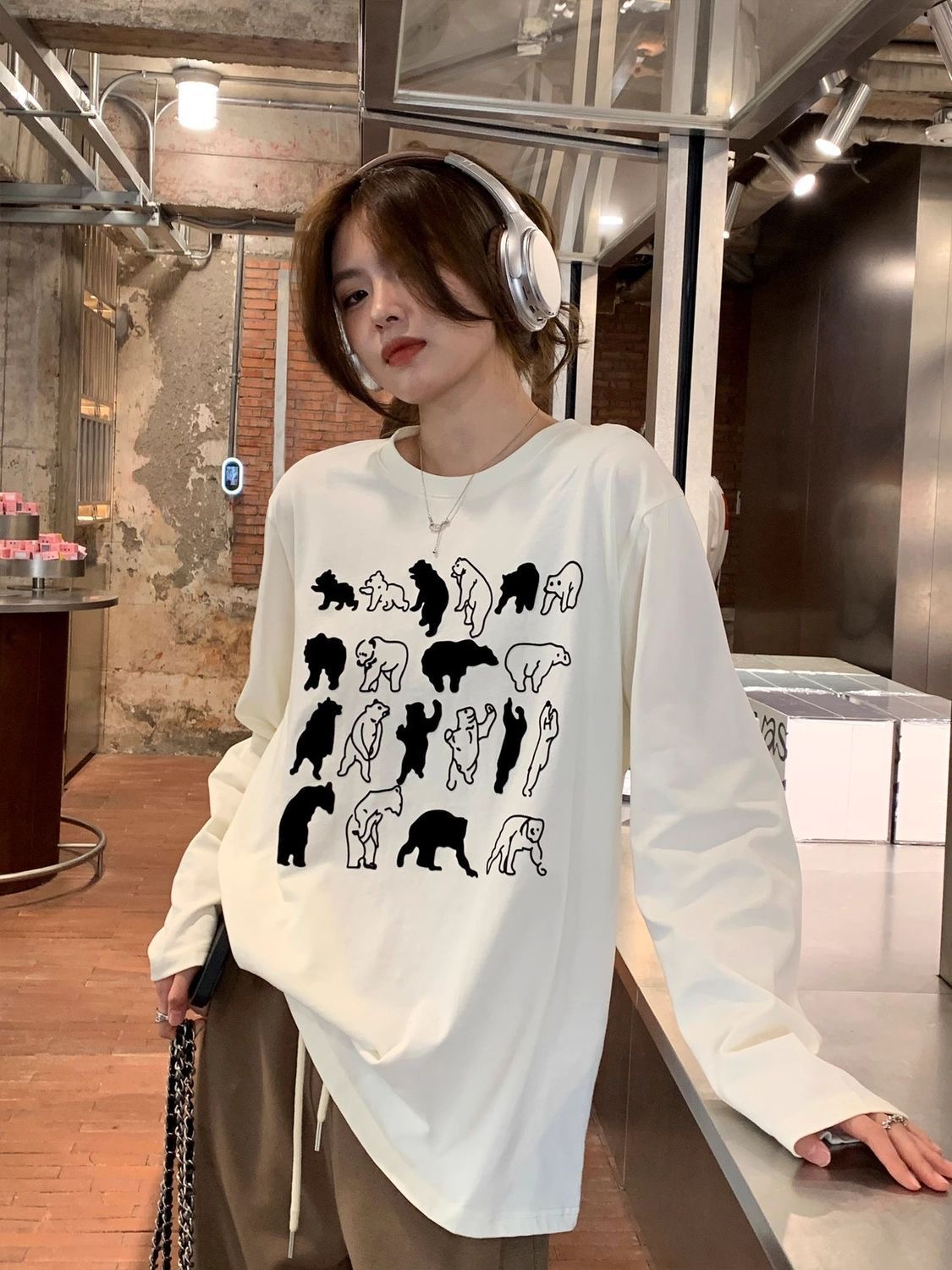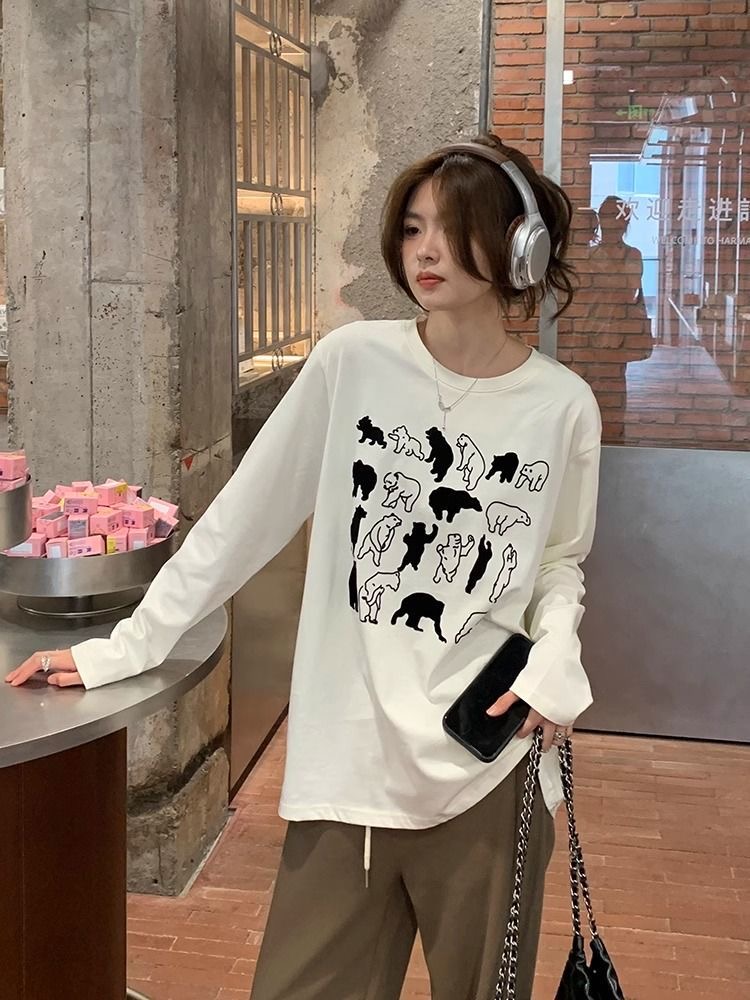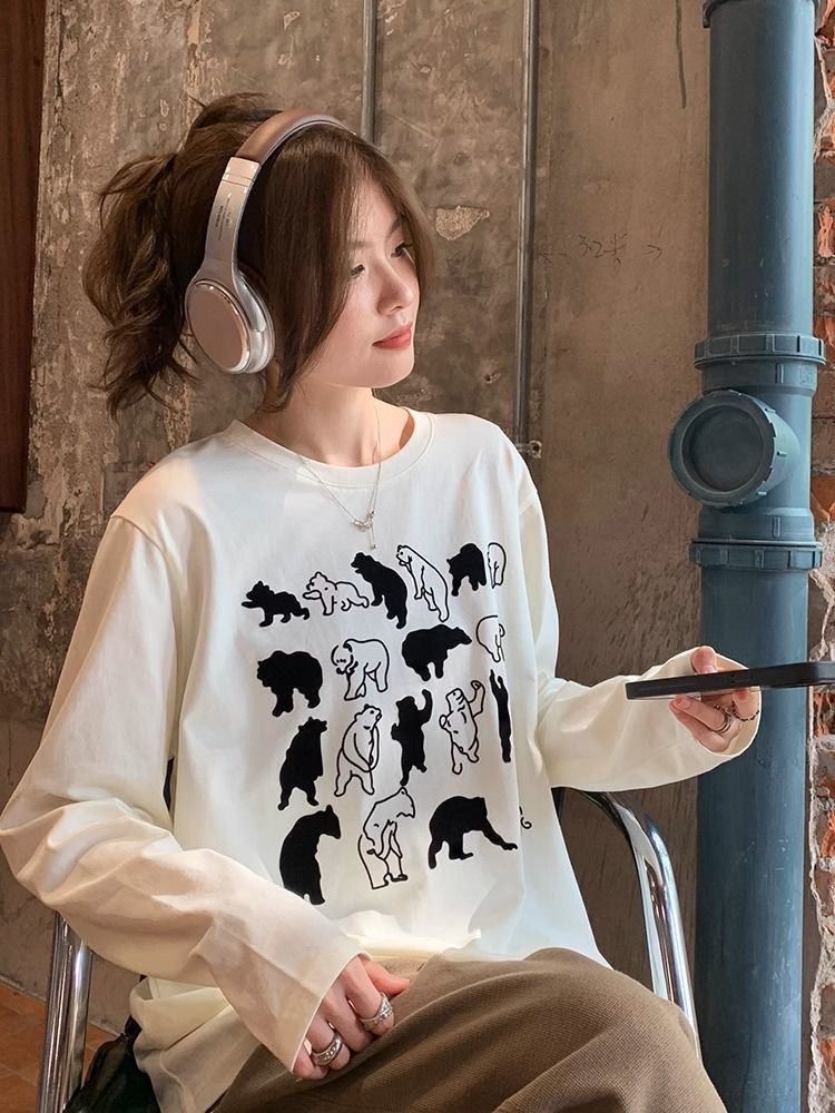 21支纯棉-210克100%棉 2026春装长袖T恤女宽松上衣印花