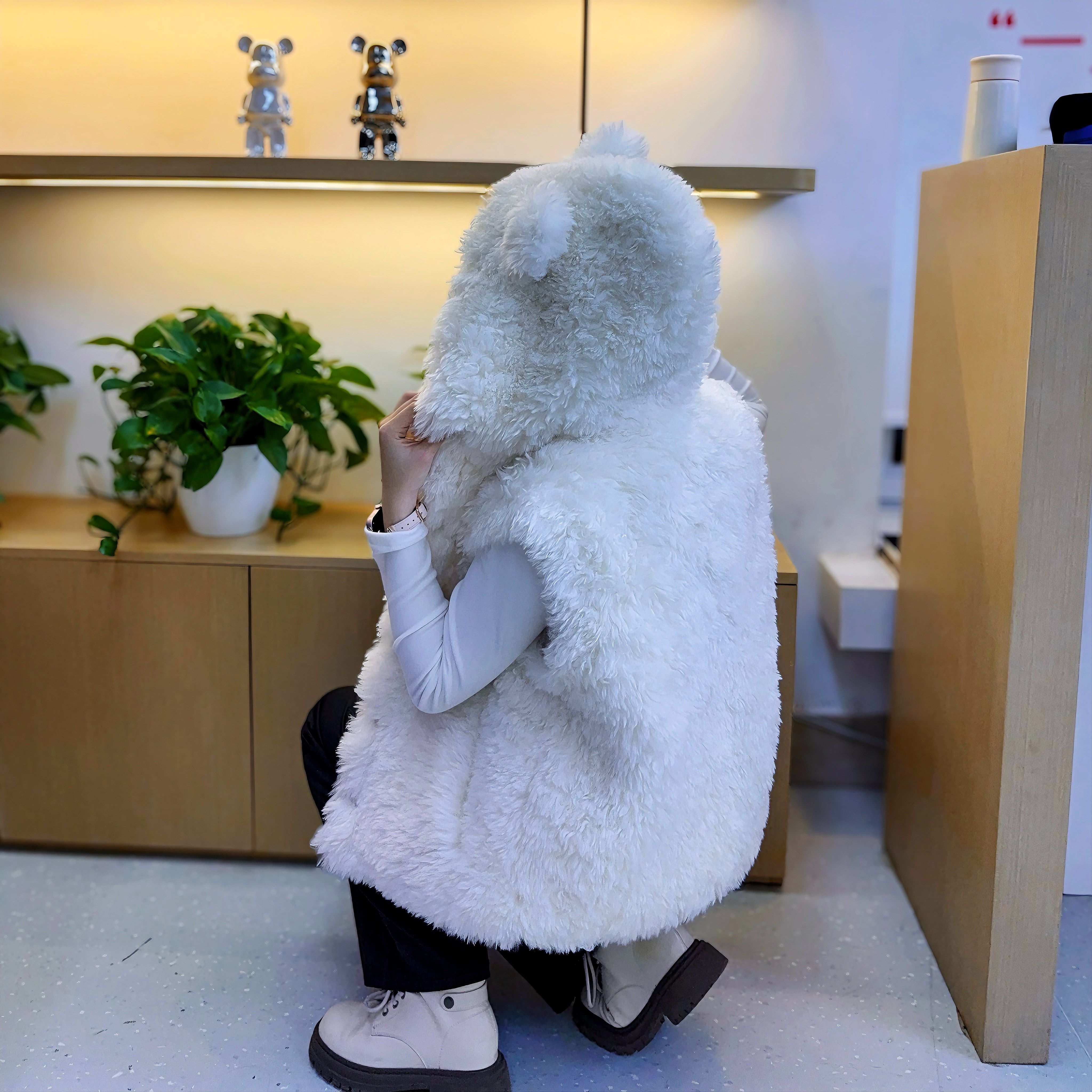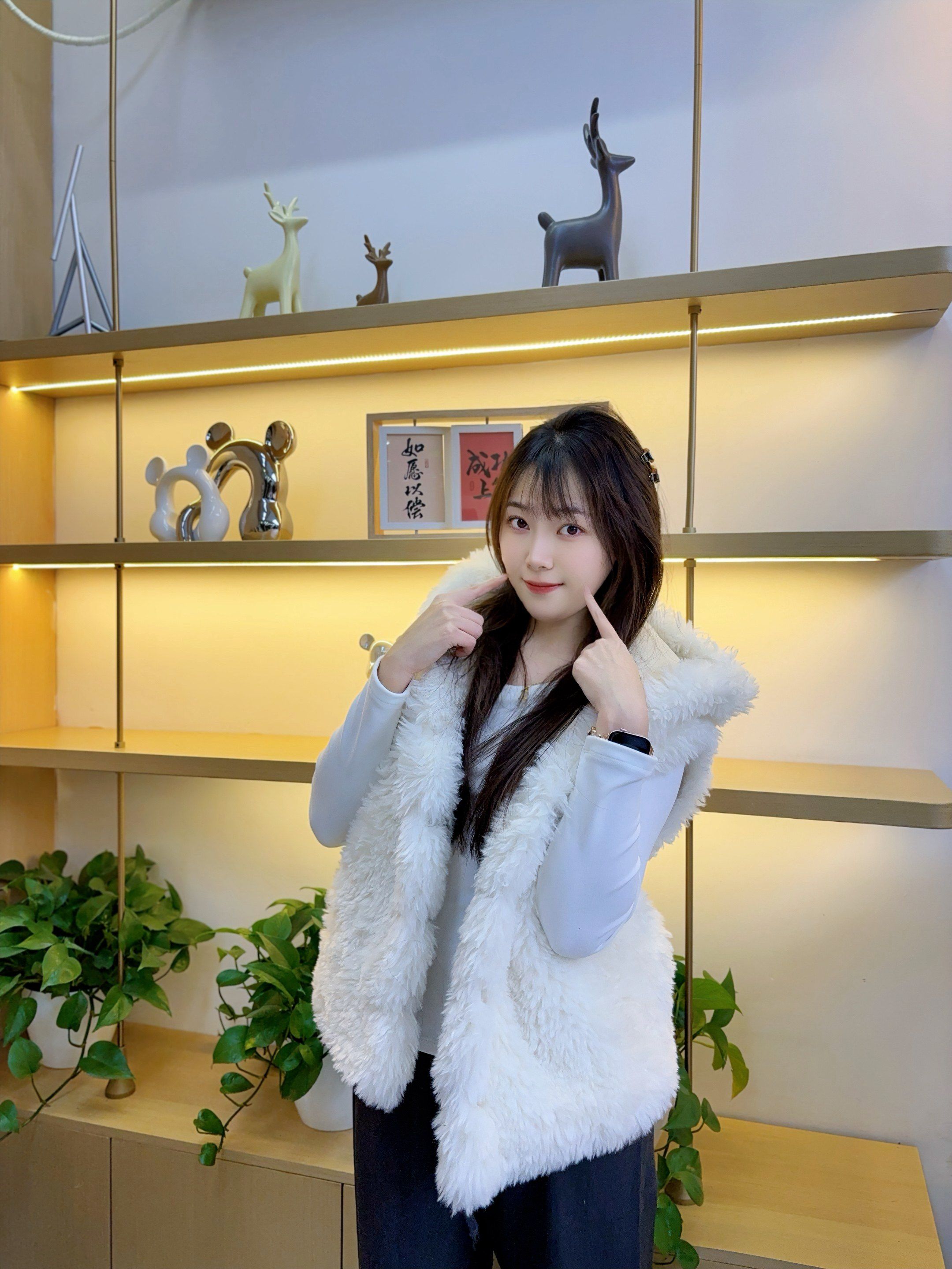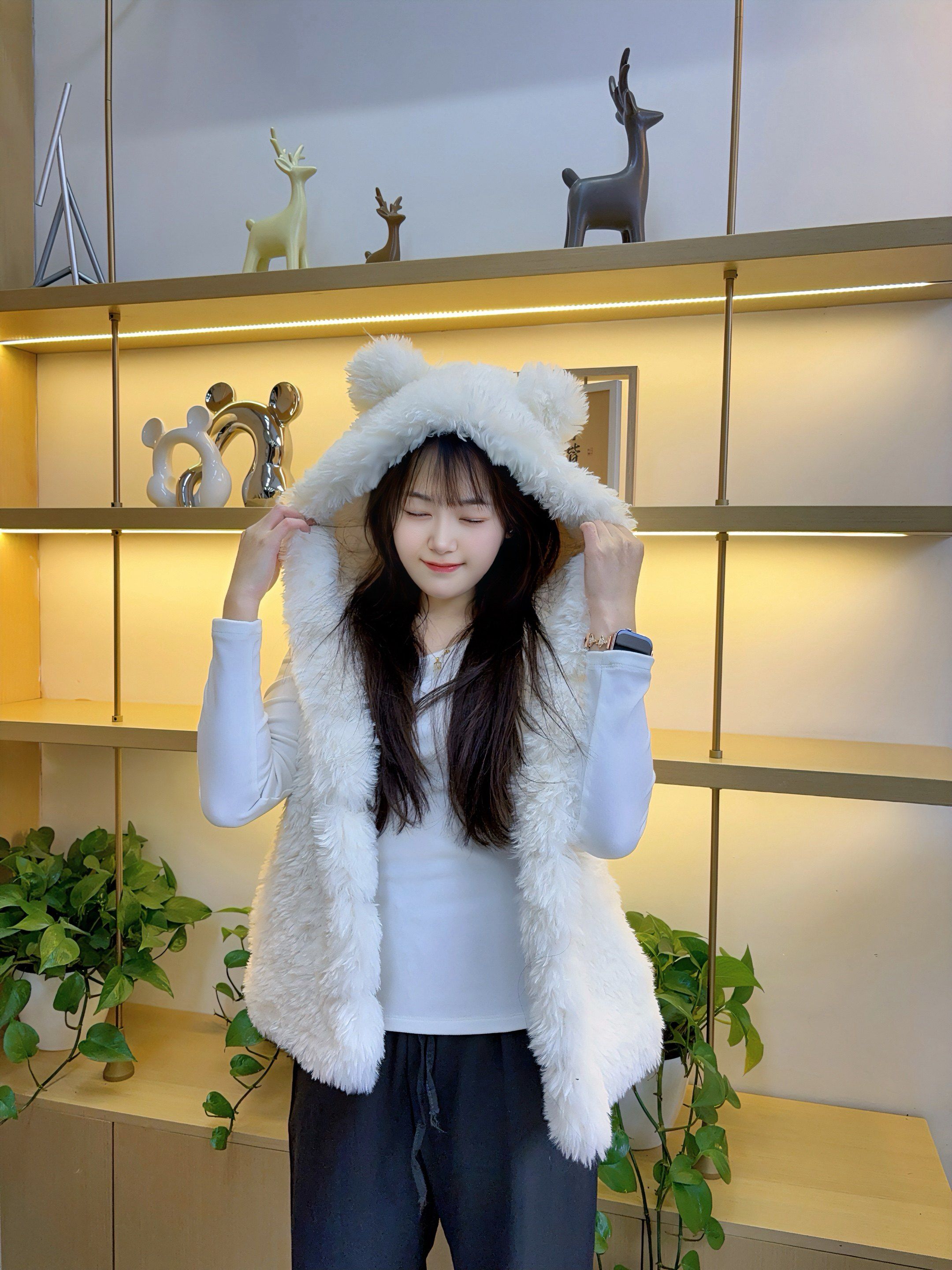 纯色小熊耳朵设计上衣2025秋冬季环保皮草皮毛一体超好看女生马甲