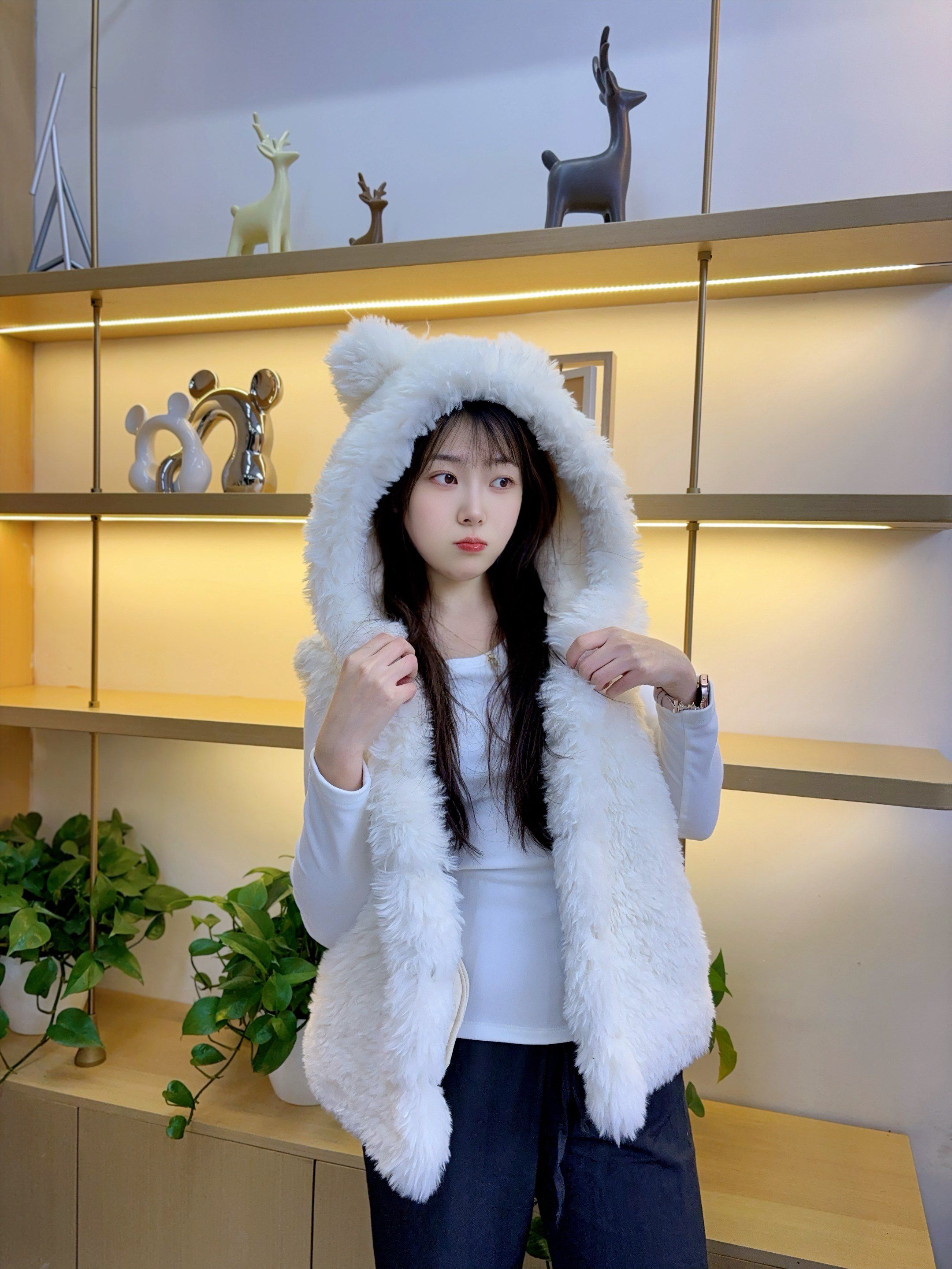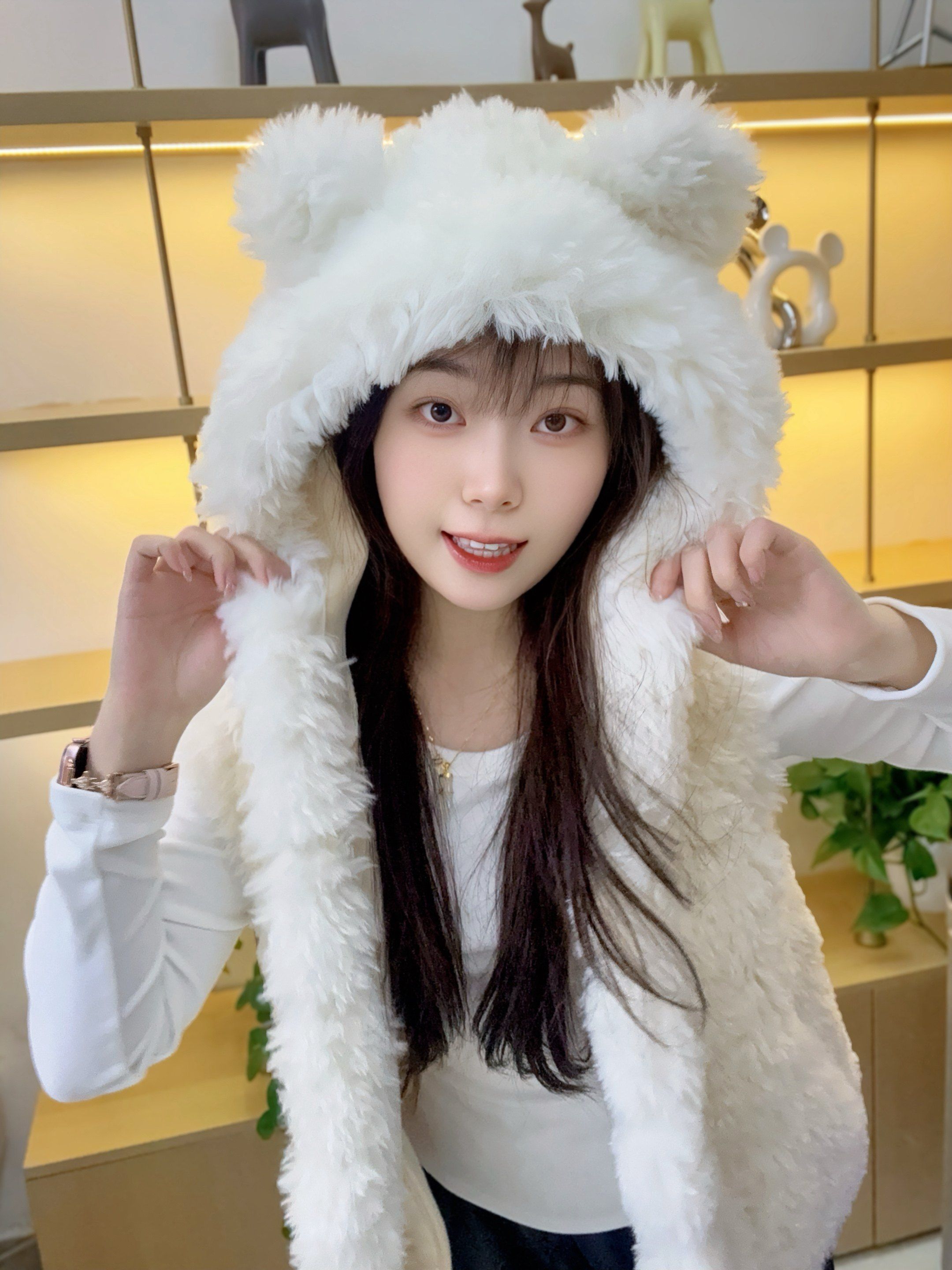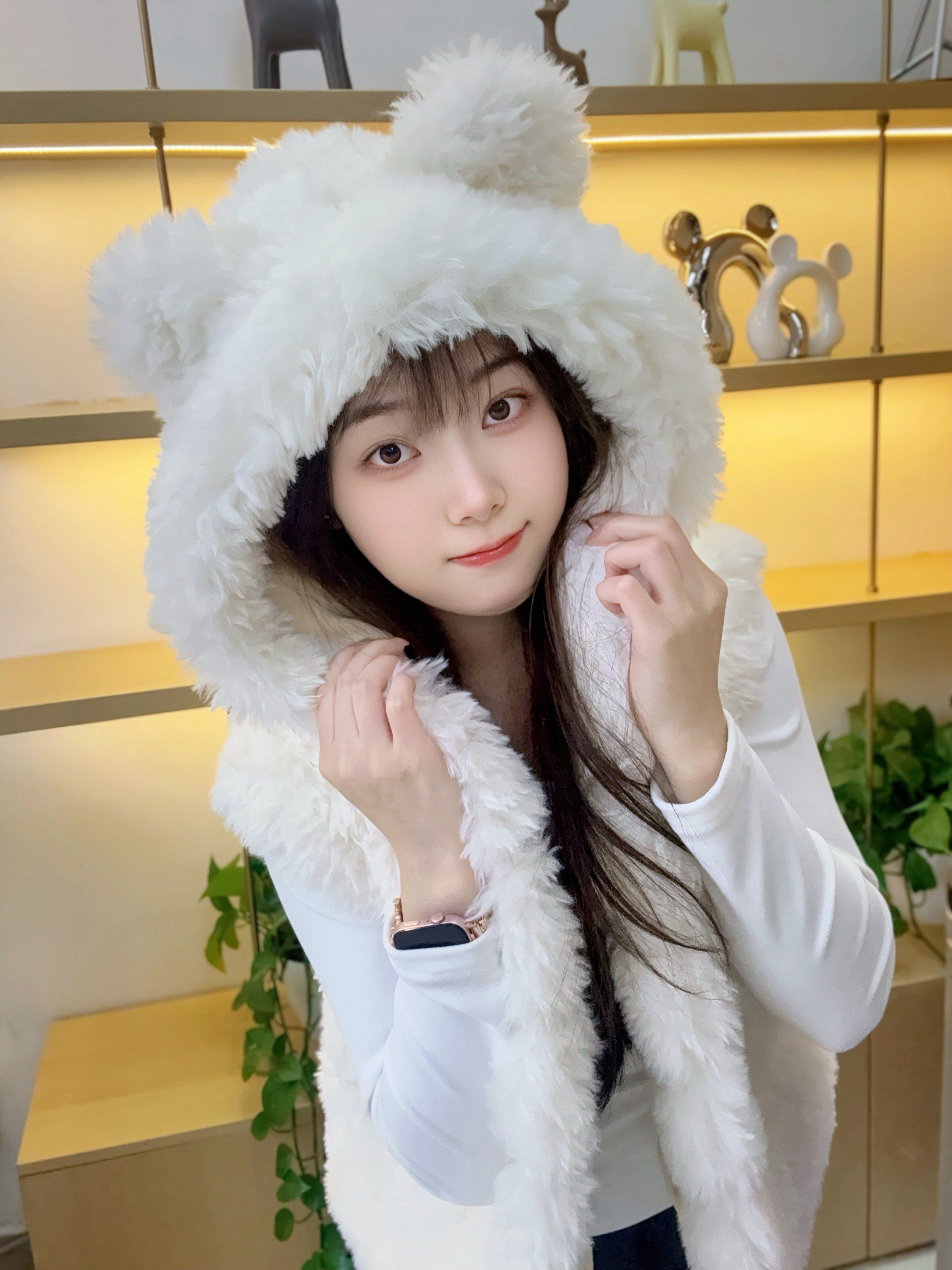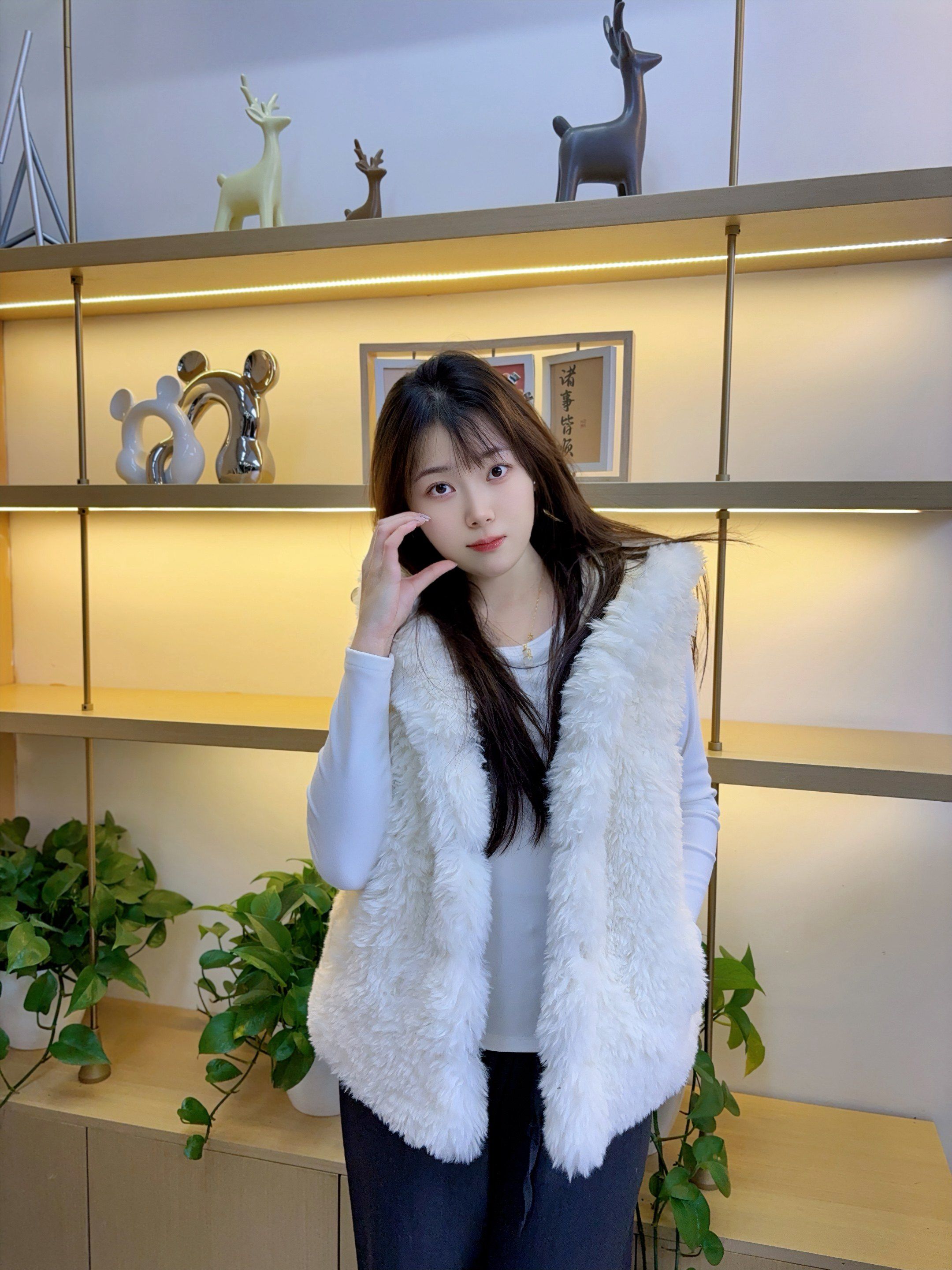 纯色小熊耳朵设计上衣2025秋冬季环保皮草皮毛一体超好看女生马甲