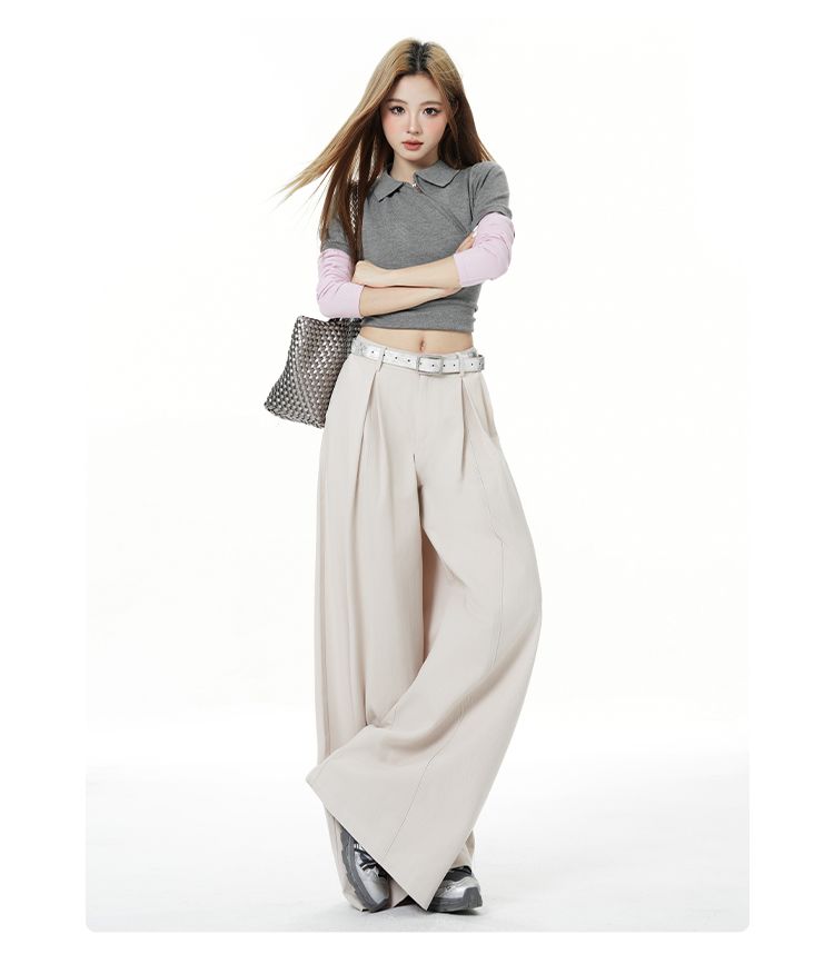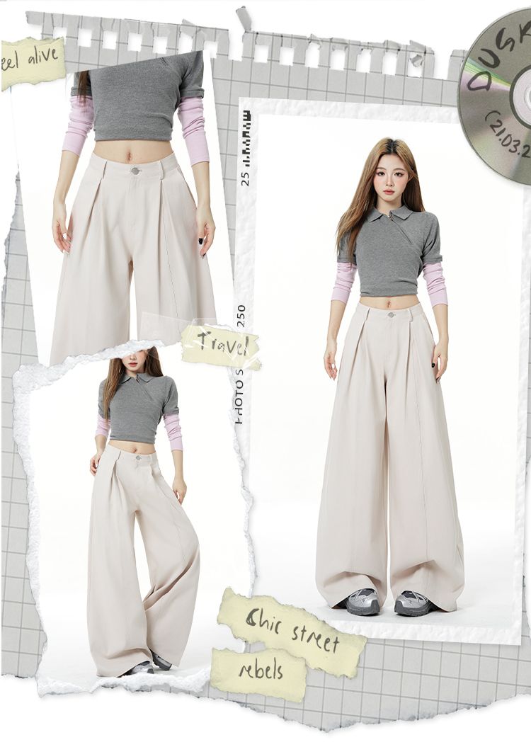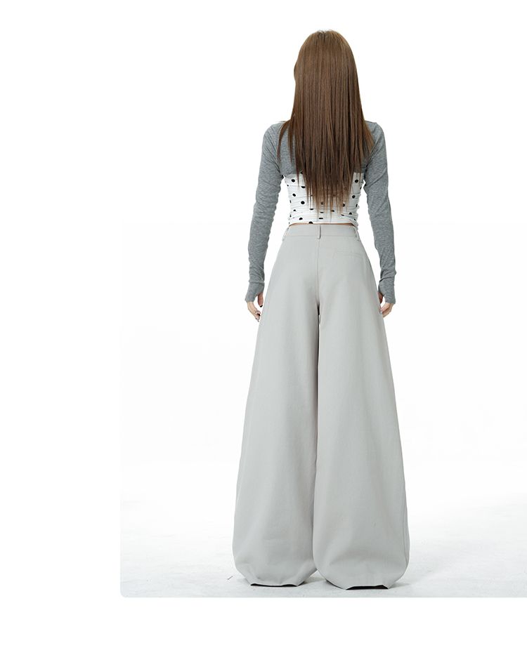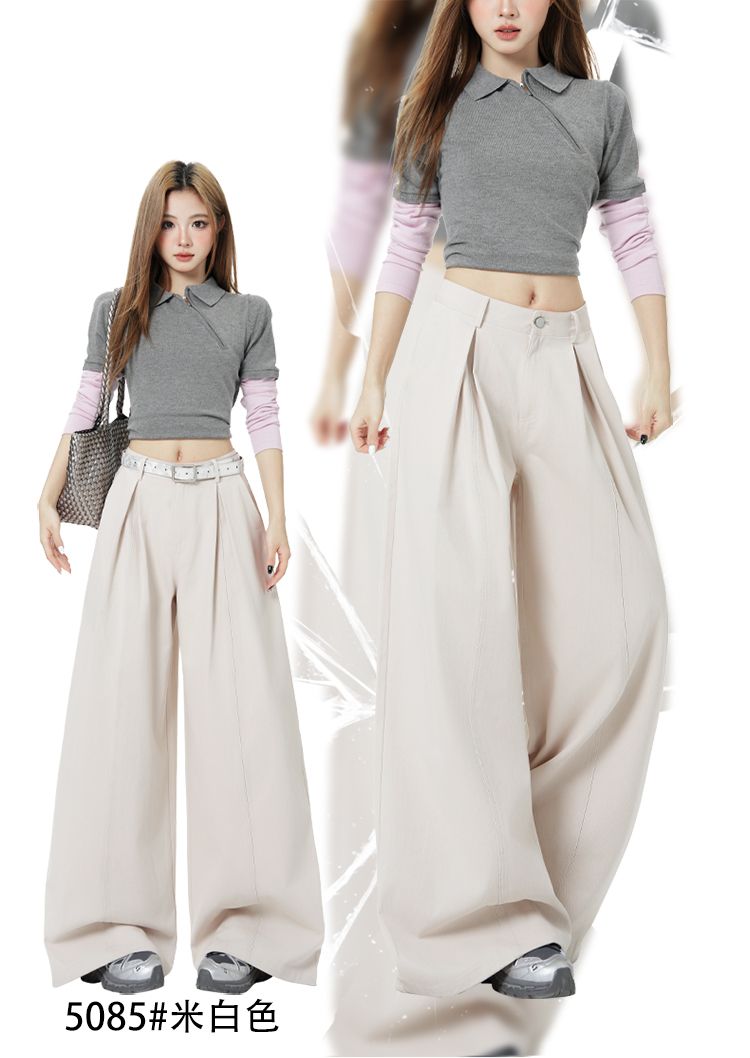 新款米白色美式复古立体褶皱直筒牛仔裤女宽松阔腿长裤