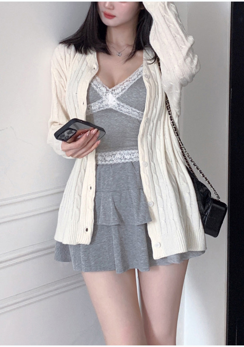 韩国东大门新品 高级感纯欲风纯色简约气质百搭针织开衫女