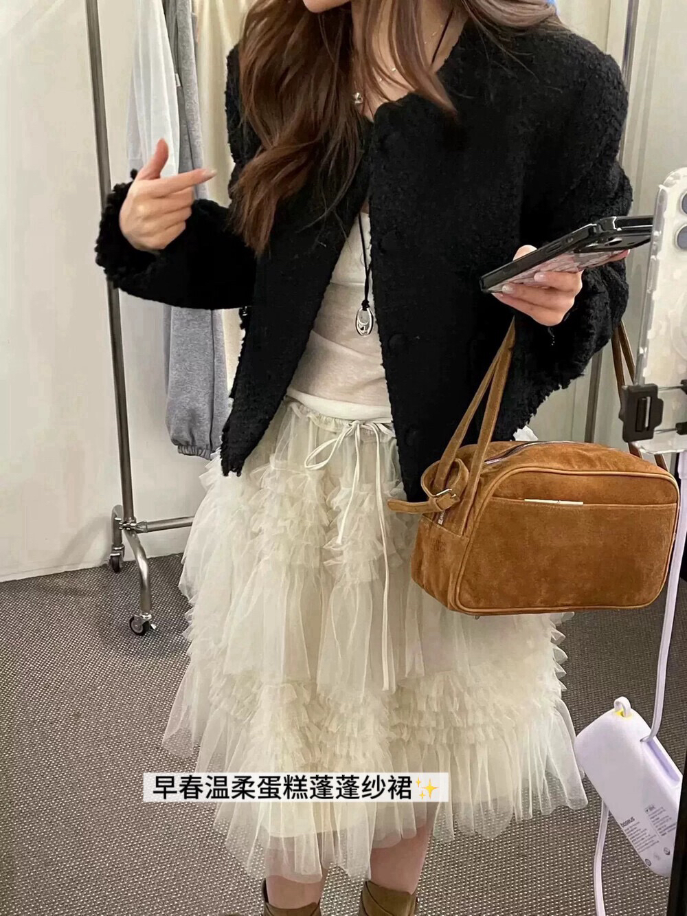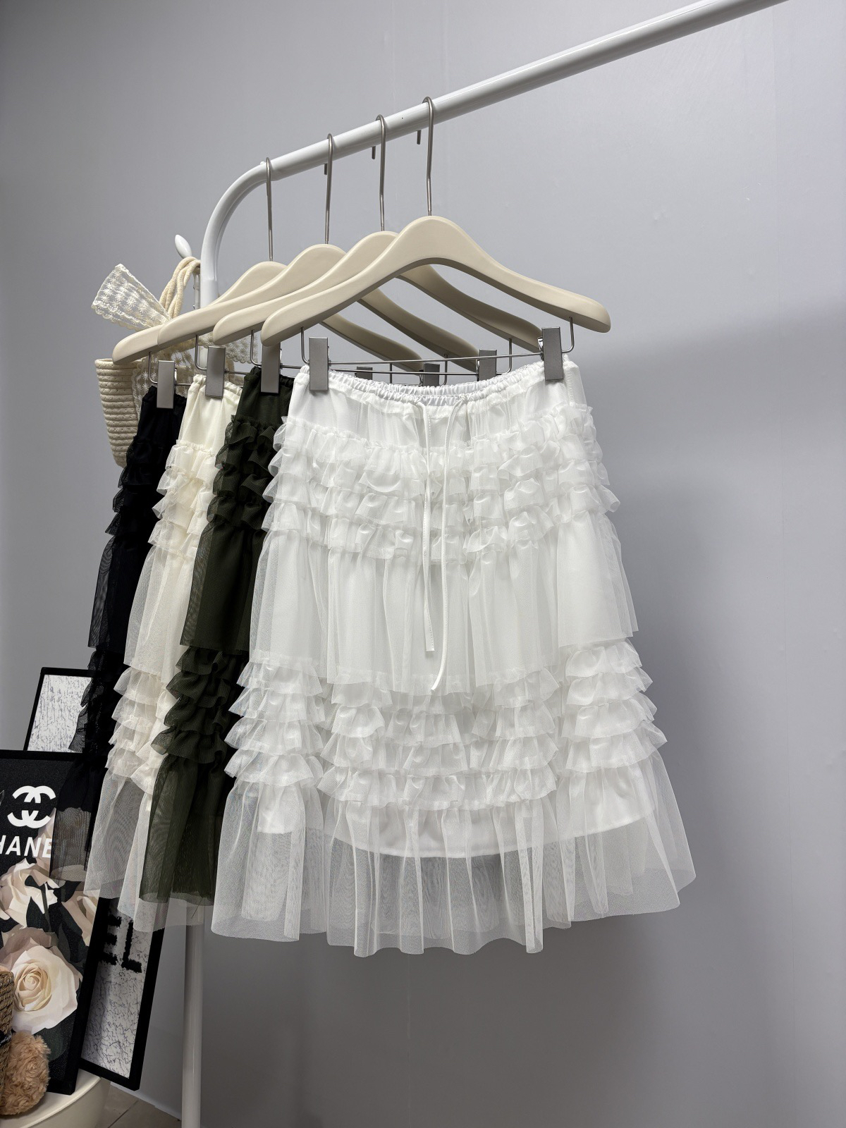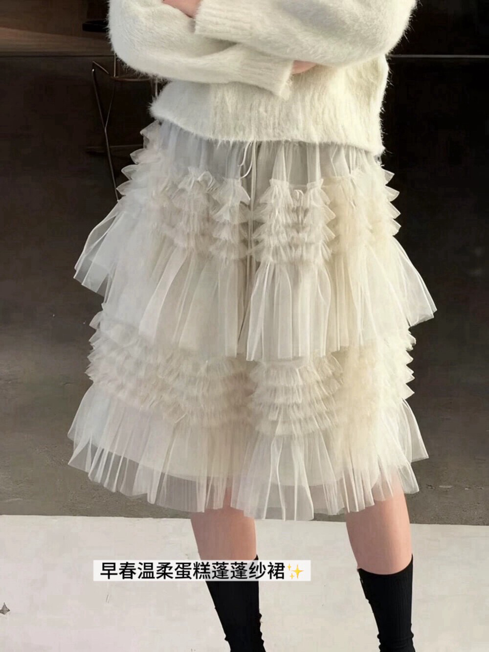 早春新款韩系chic绝美纱裙蛋糕裙层层荷叶边超仙中裙甜美五分裙