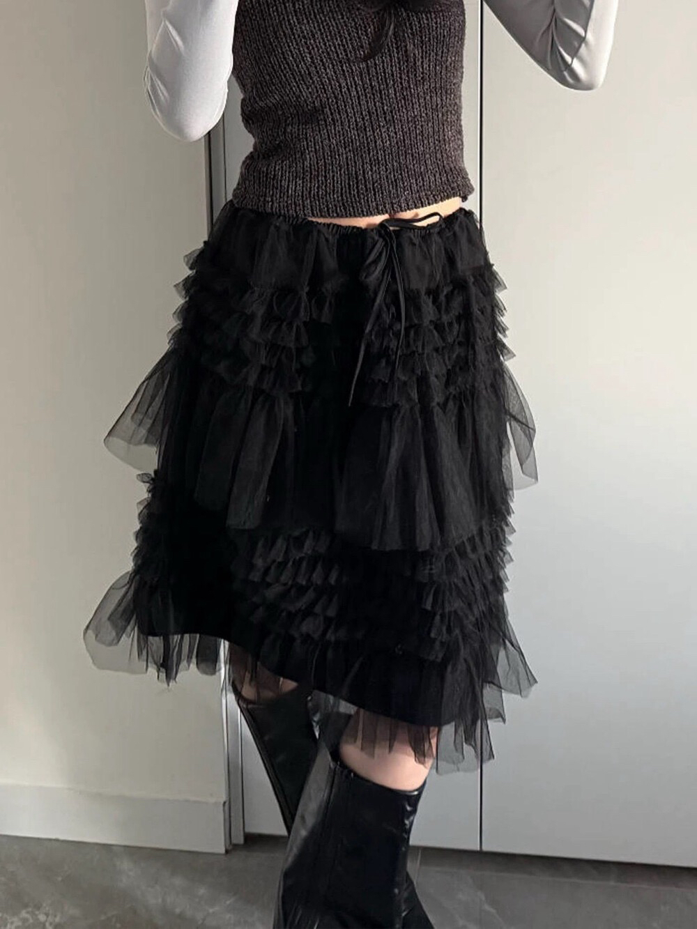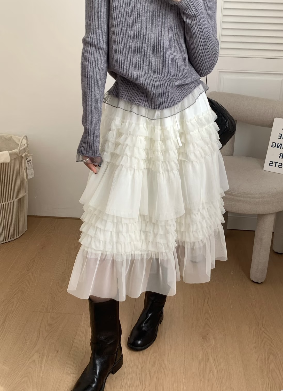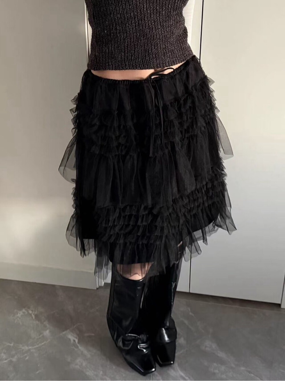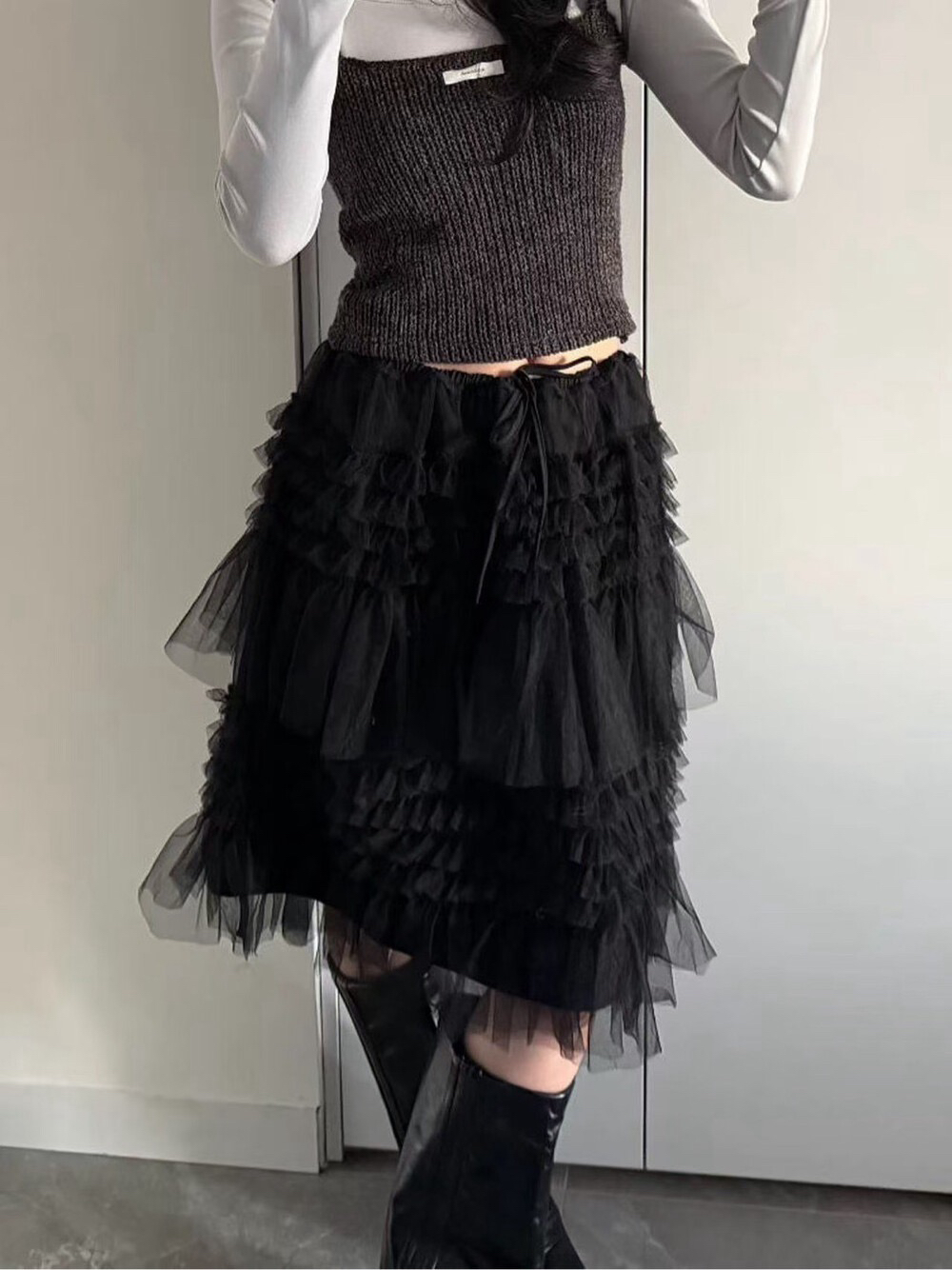 早春新款韩系chic绝美纱裙蛋糕裙层层荷叶边超仙中裙甜美五分裙