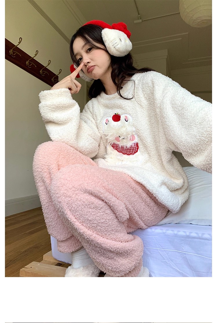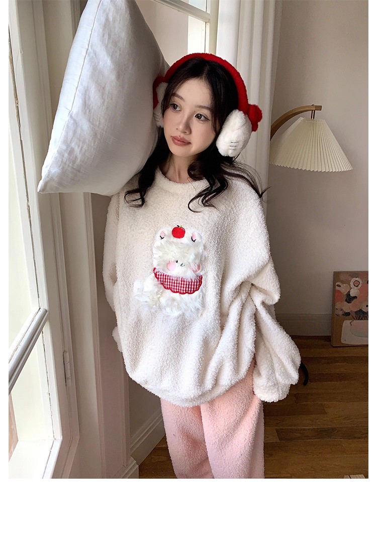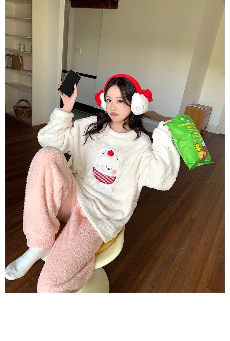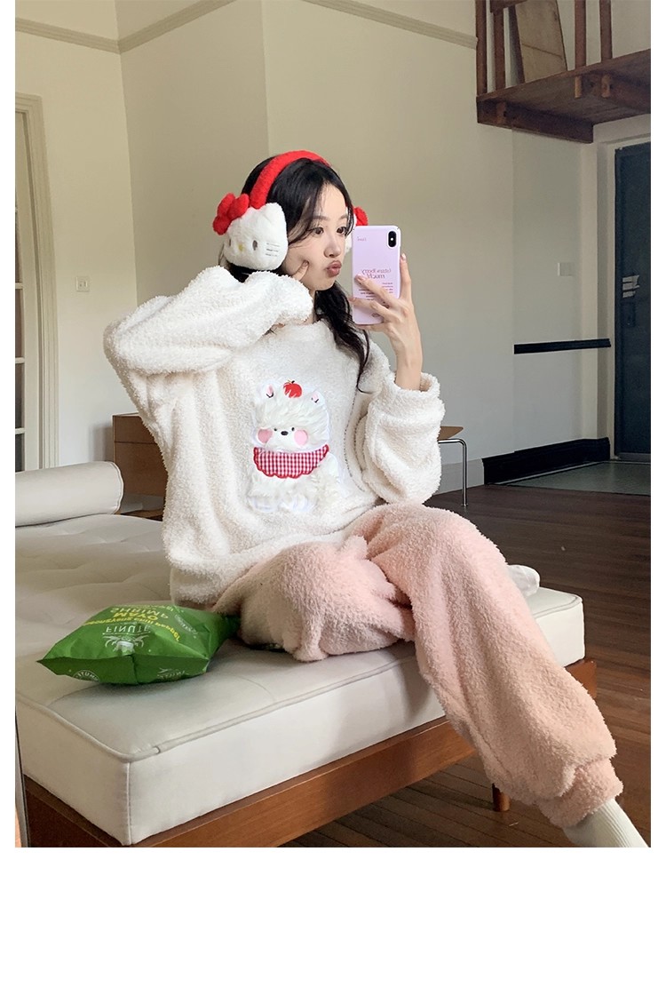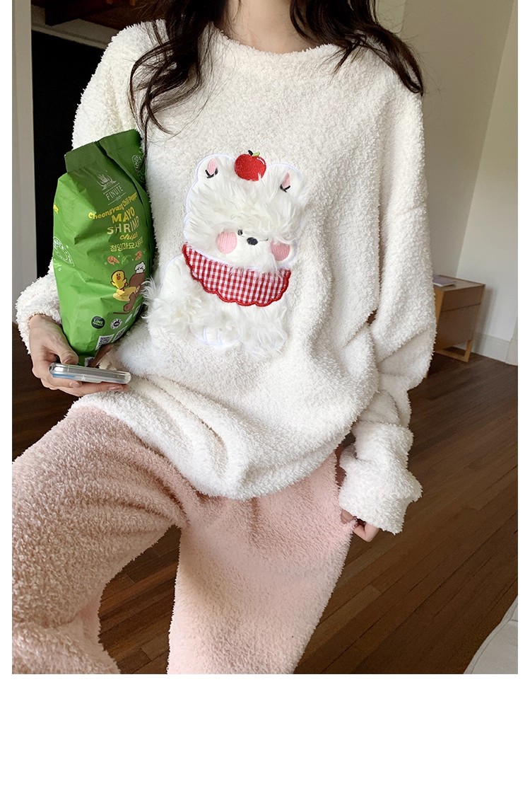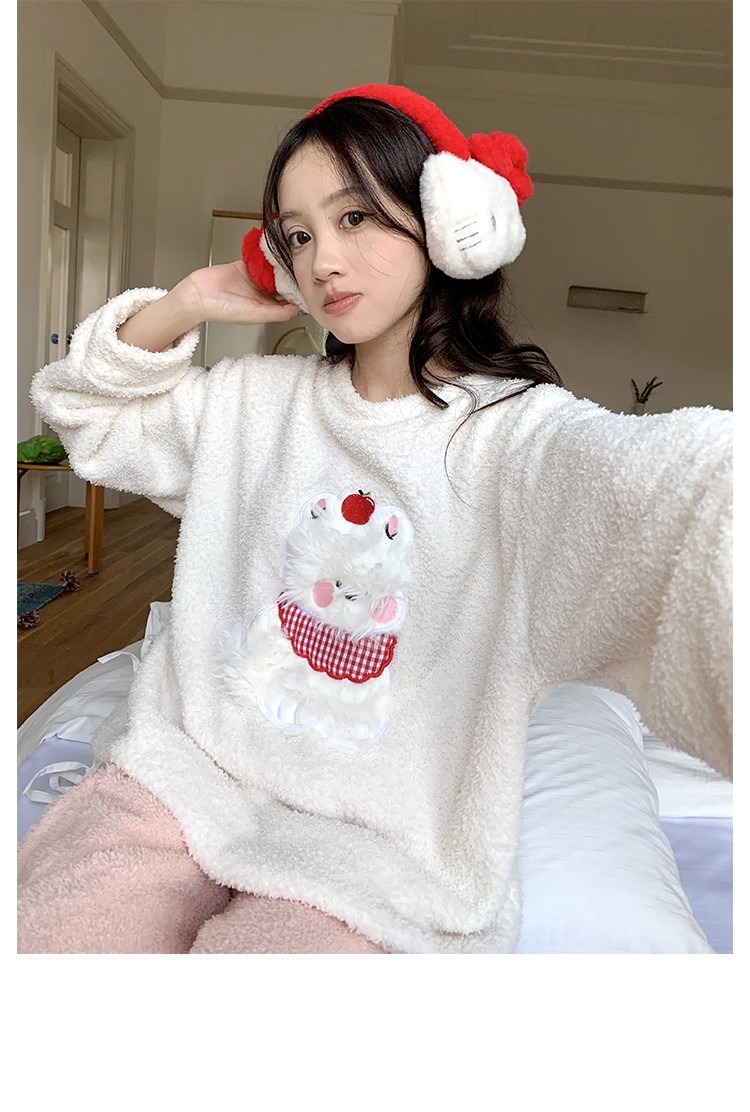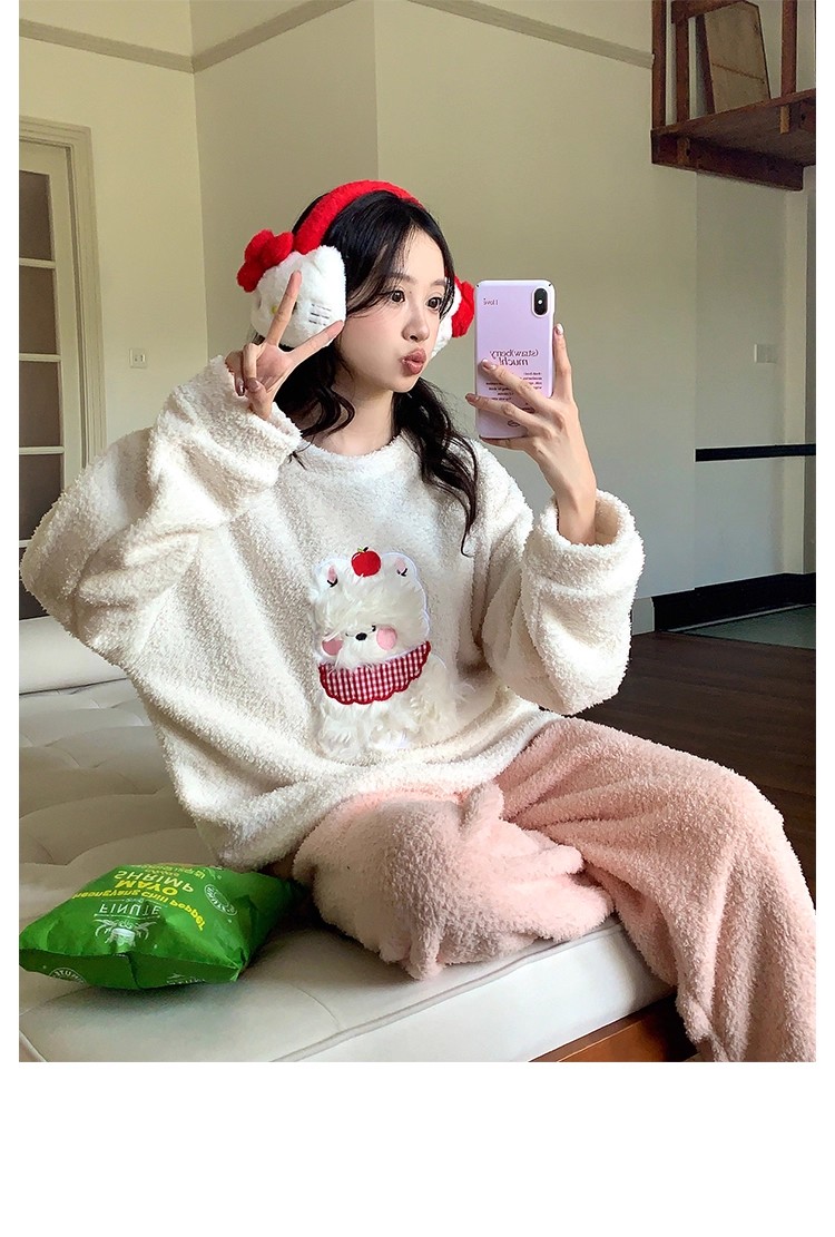 奶萌小狗珊瑚绒卡通可爱睡衣女秋冬季保暖加绒半边绒家居服官方