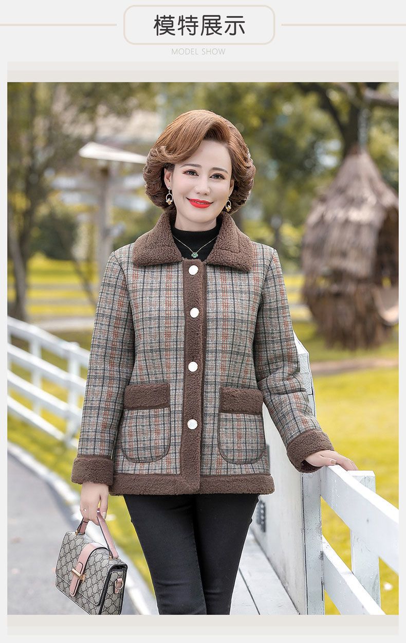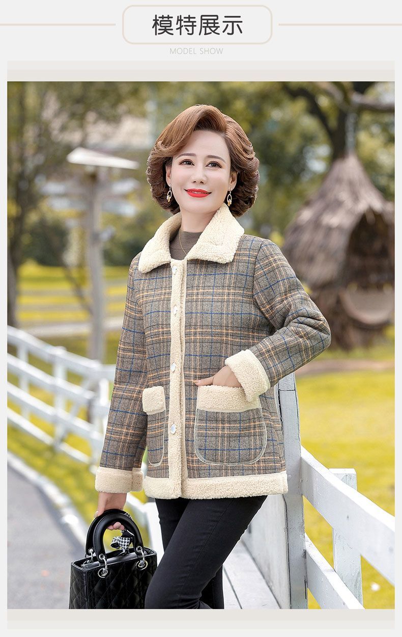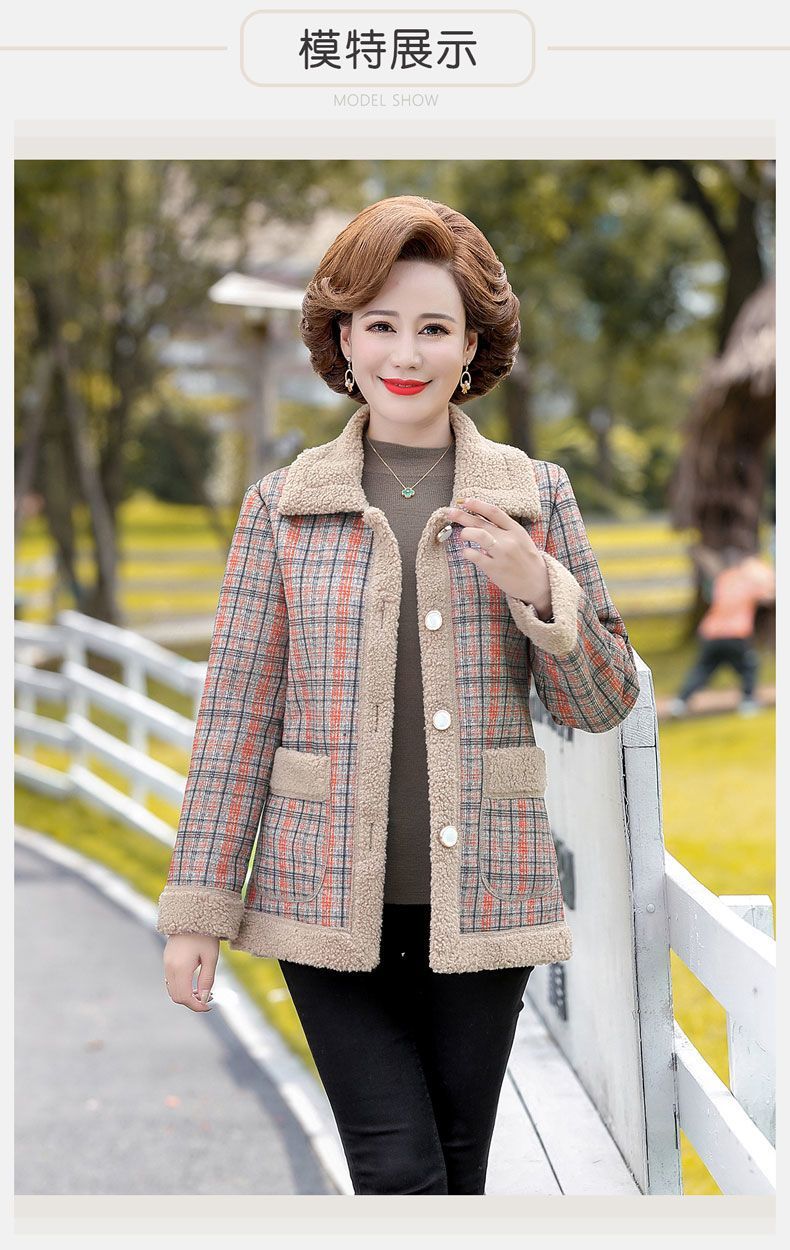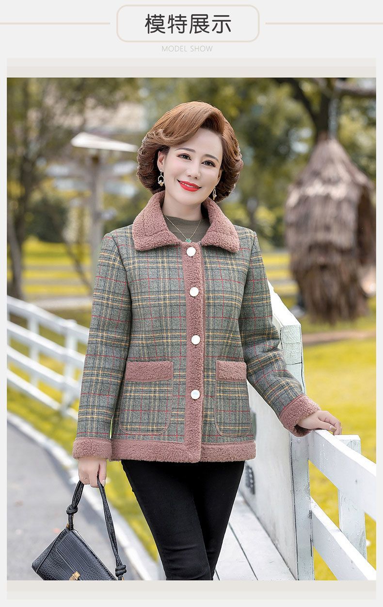 新款妈妈外套秋冬款宽松大码加绒加厚中老年女装洋气短款休闲上衣