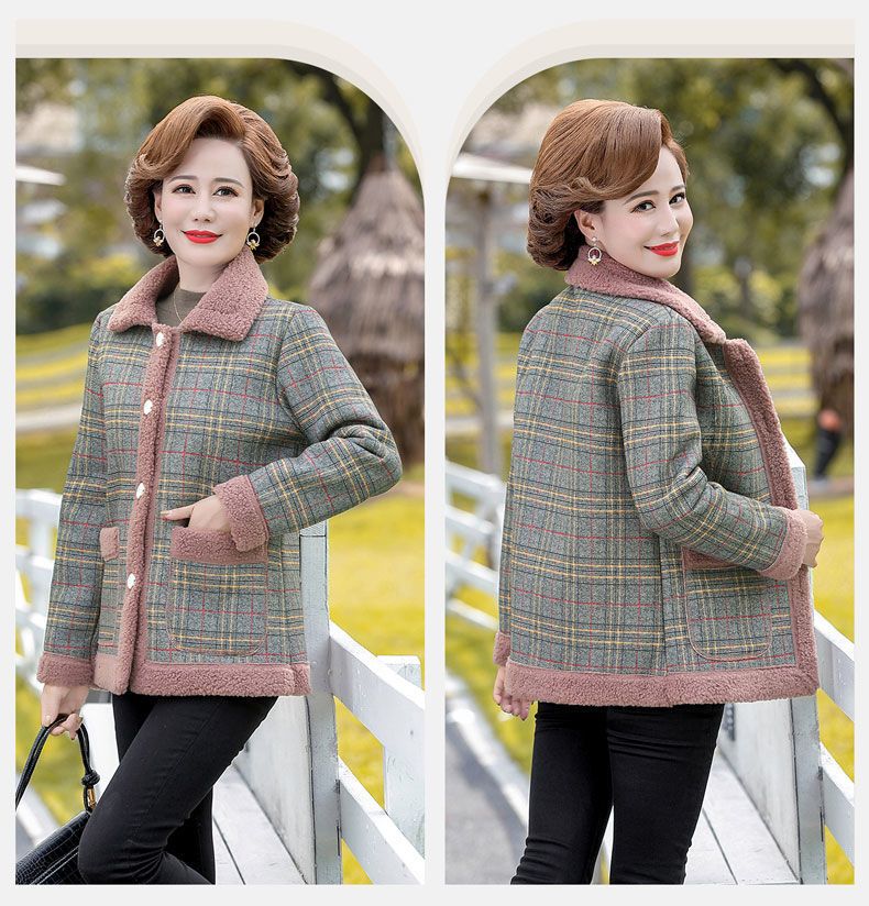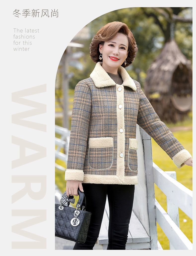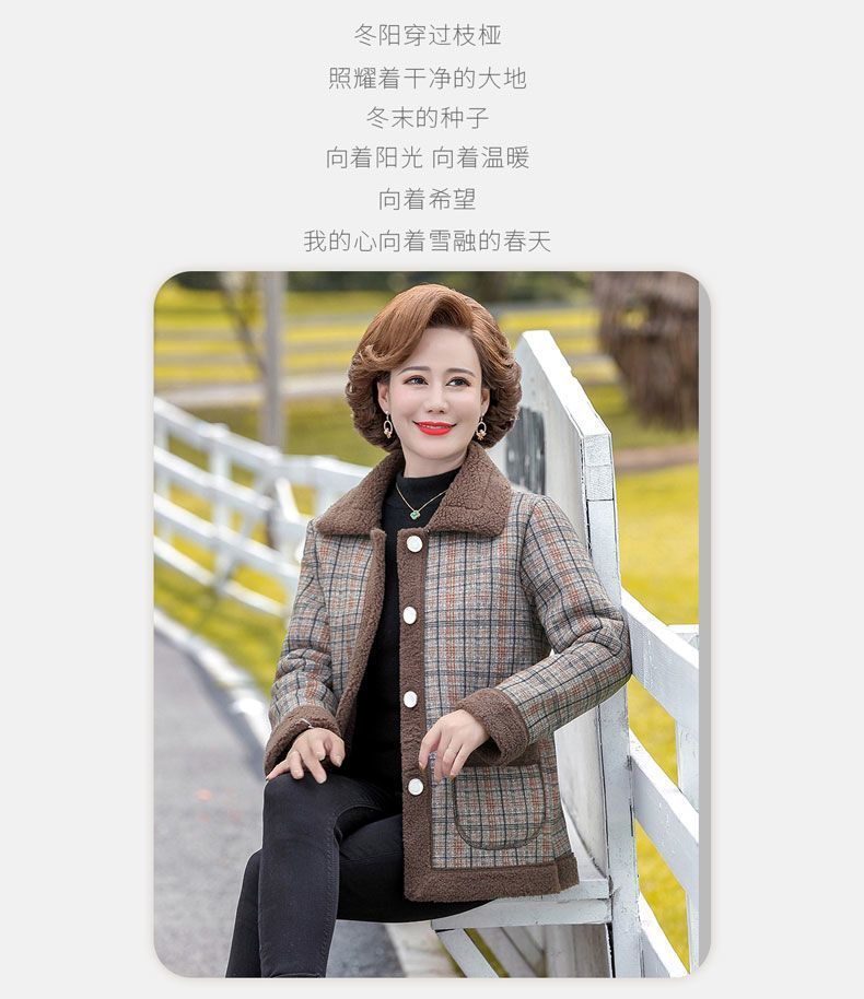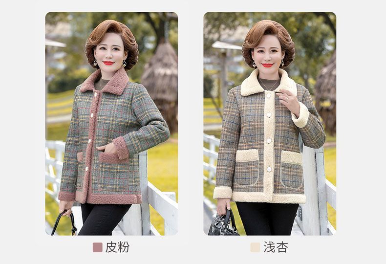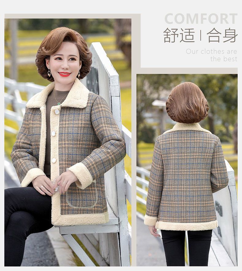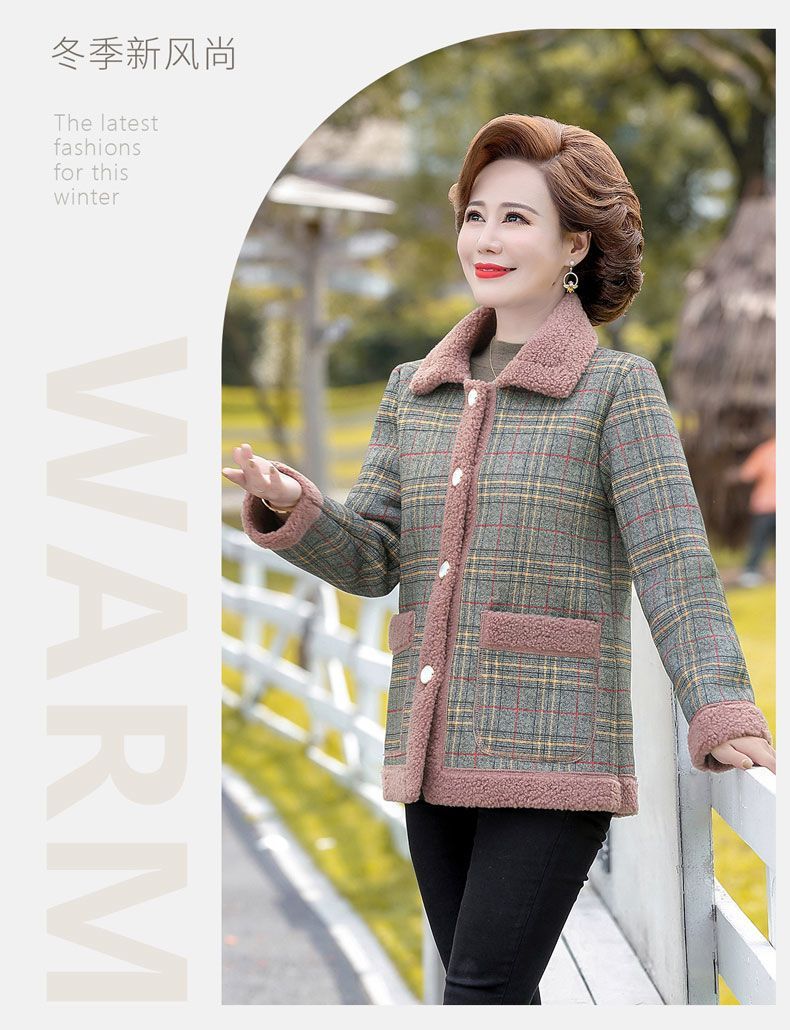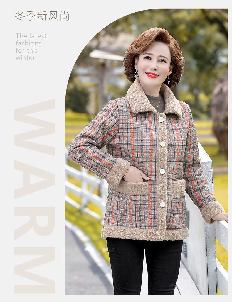 新款妈妈外套秋冬款宽松大码加绒加厚中老年女装洋气短款休闲上衣