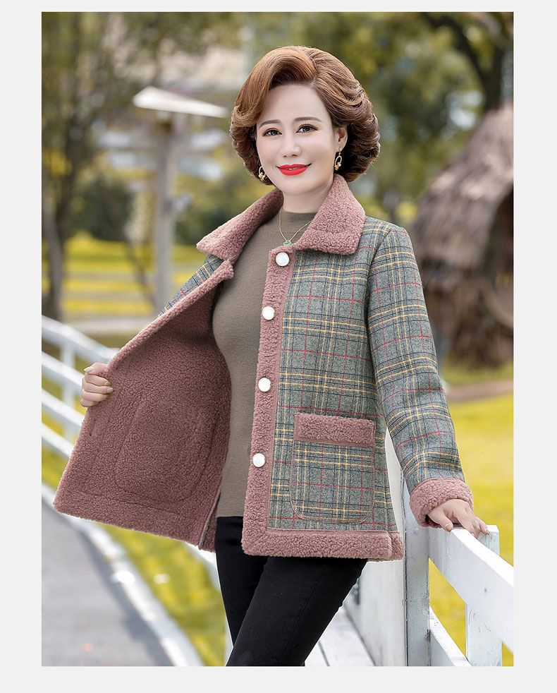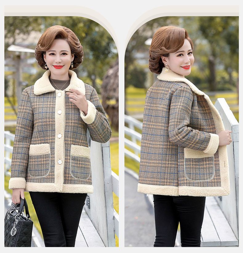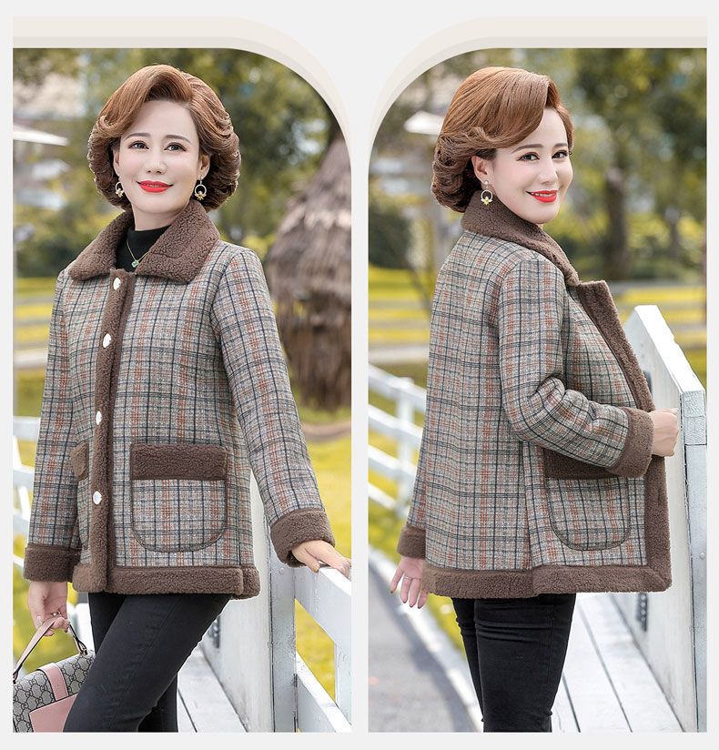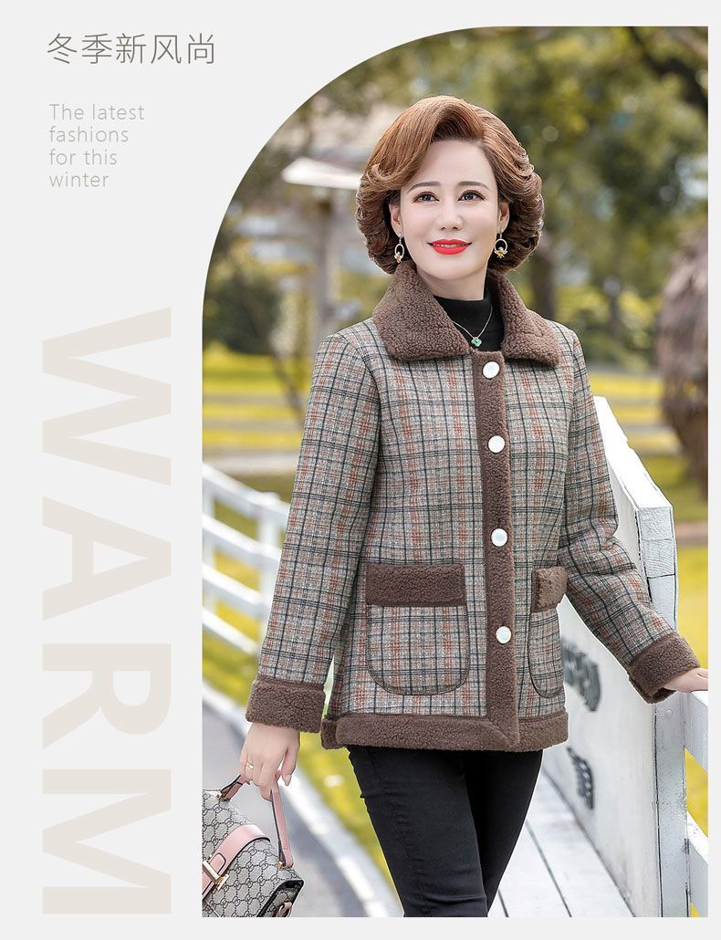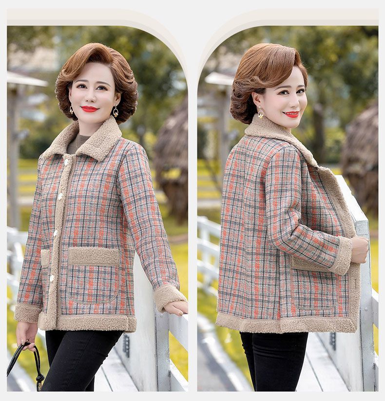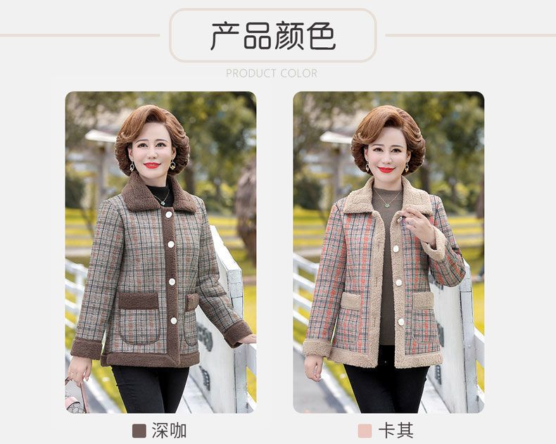 新款妈妈外套秋冬款宽松大码加绒加厚中老年女装洋气短款休闲上衣