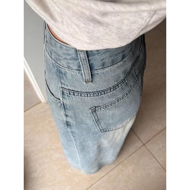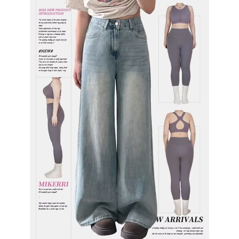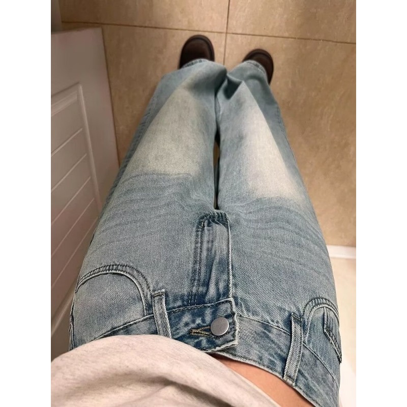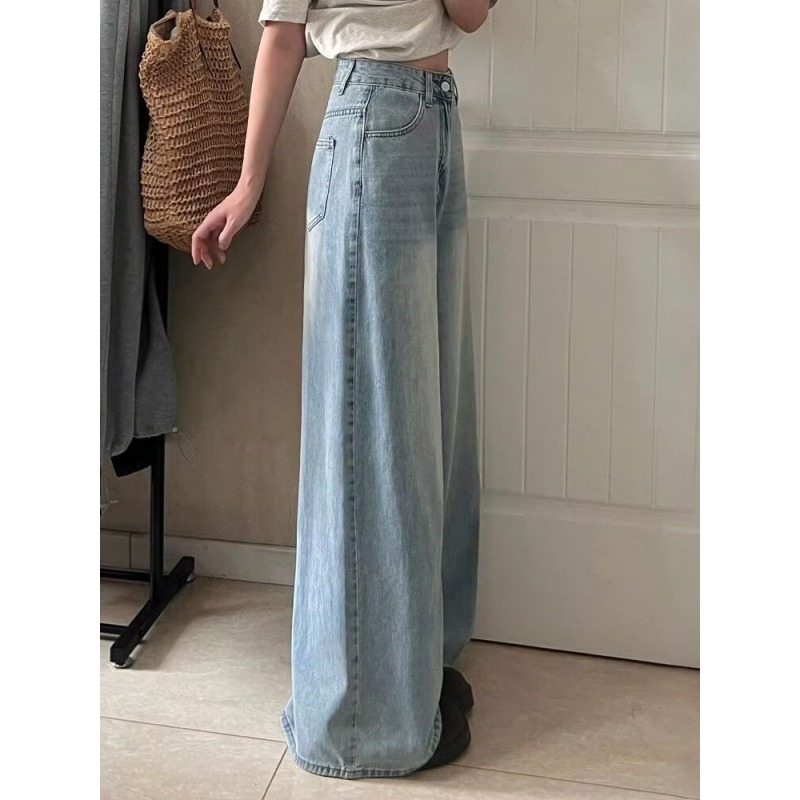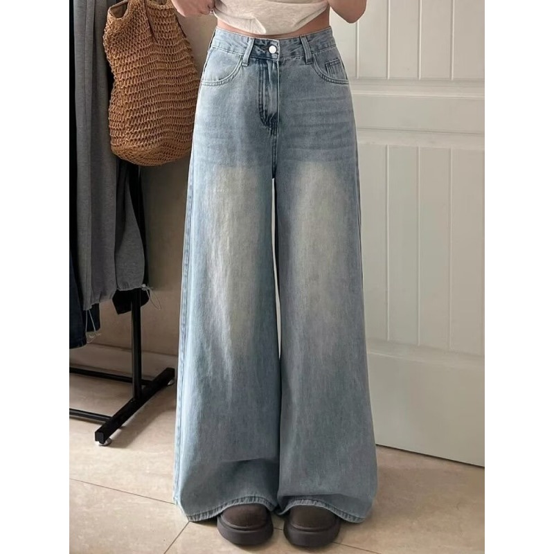 춘추 사우스 스트리트 아메리칸 레트로 플러스 사이즈 여성용 다용도 슬리밍 하이엔드 와이드 레그 진, 한국 스타일