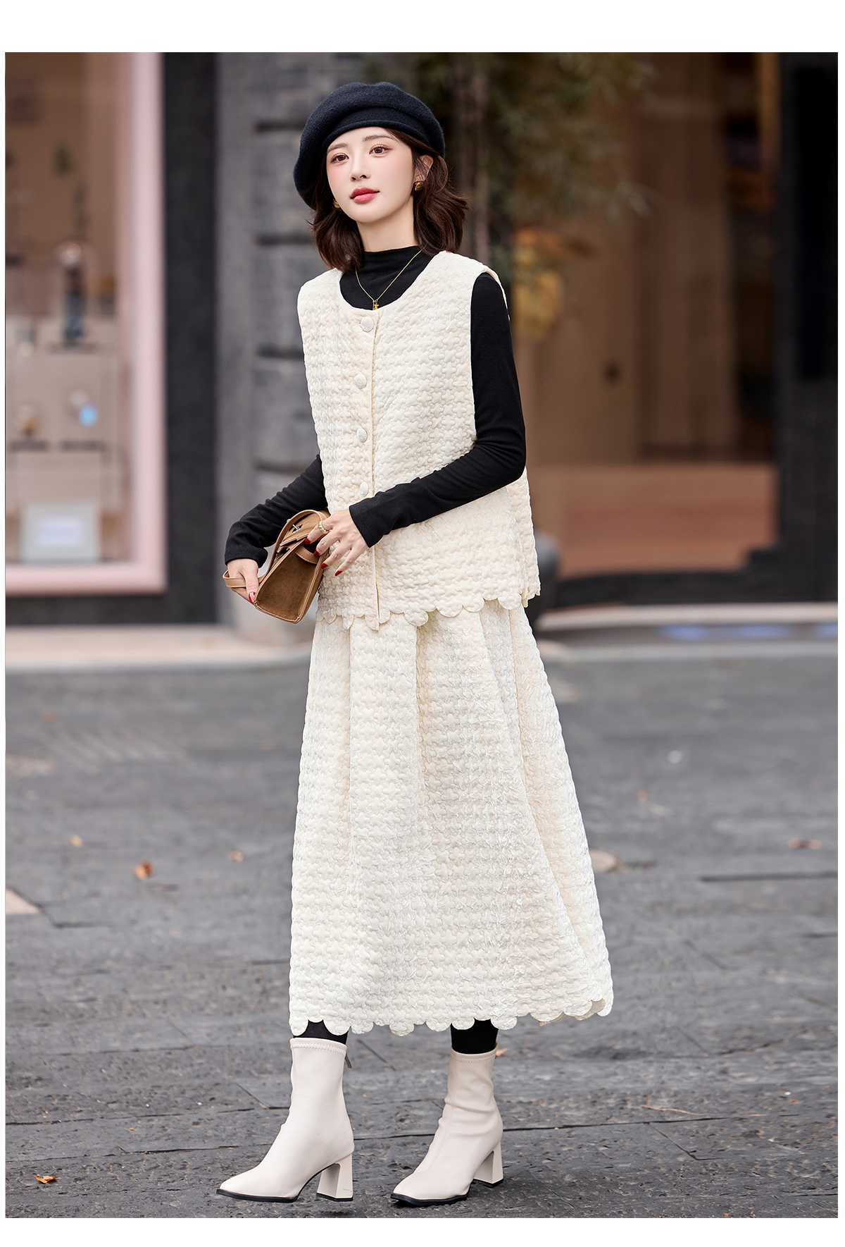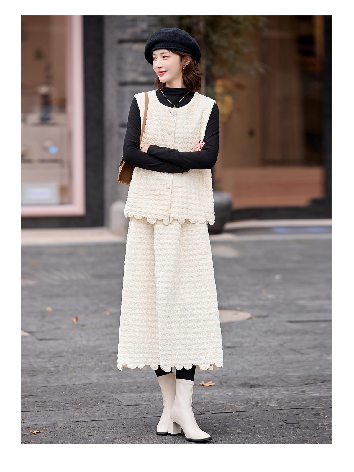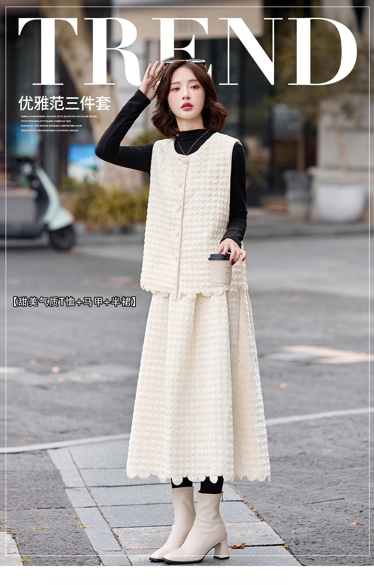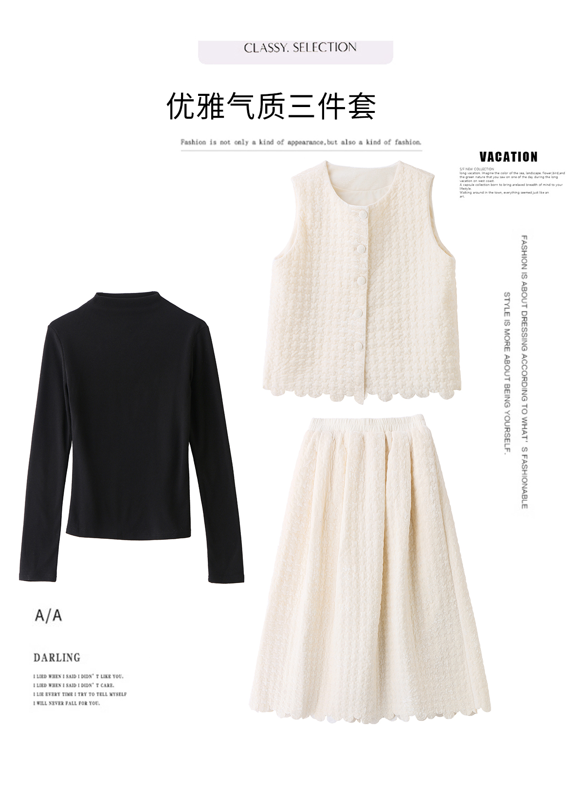 高品质十三行小香风马甲套装女气质的马甲打底衫半身裙三件套
