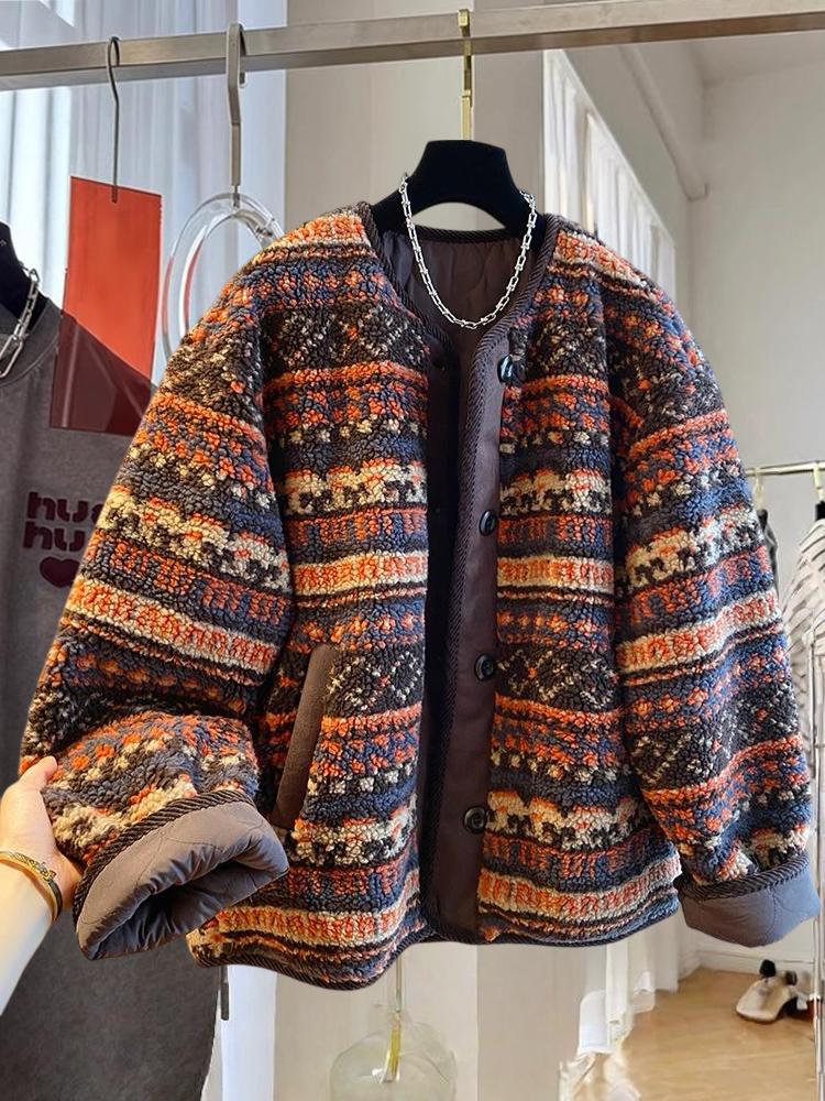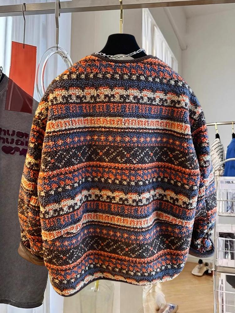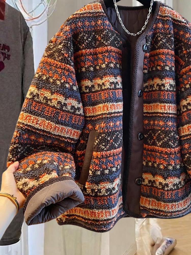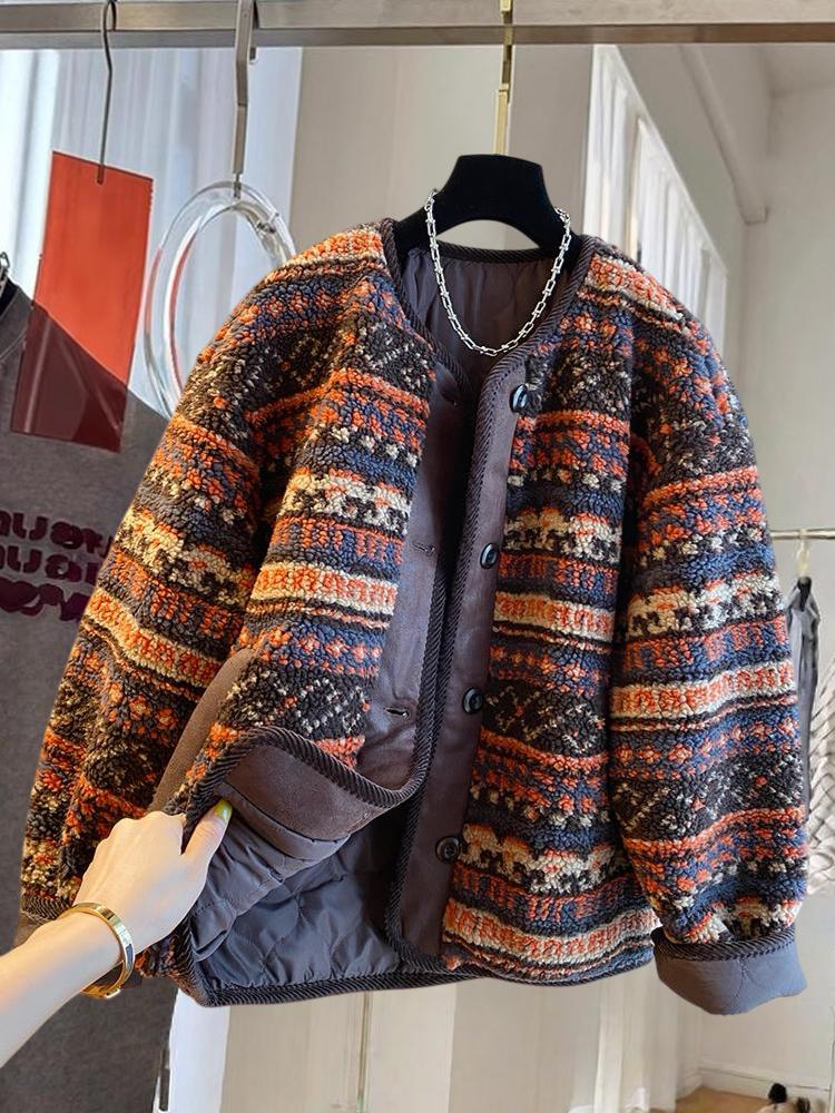 高级感羊毛夹棉外套女冬季2025新款宽松加厚保暖摇粒绒棉衣棉服