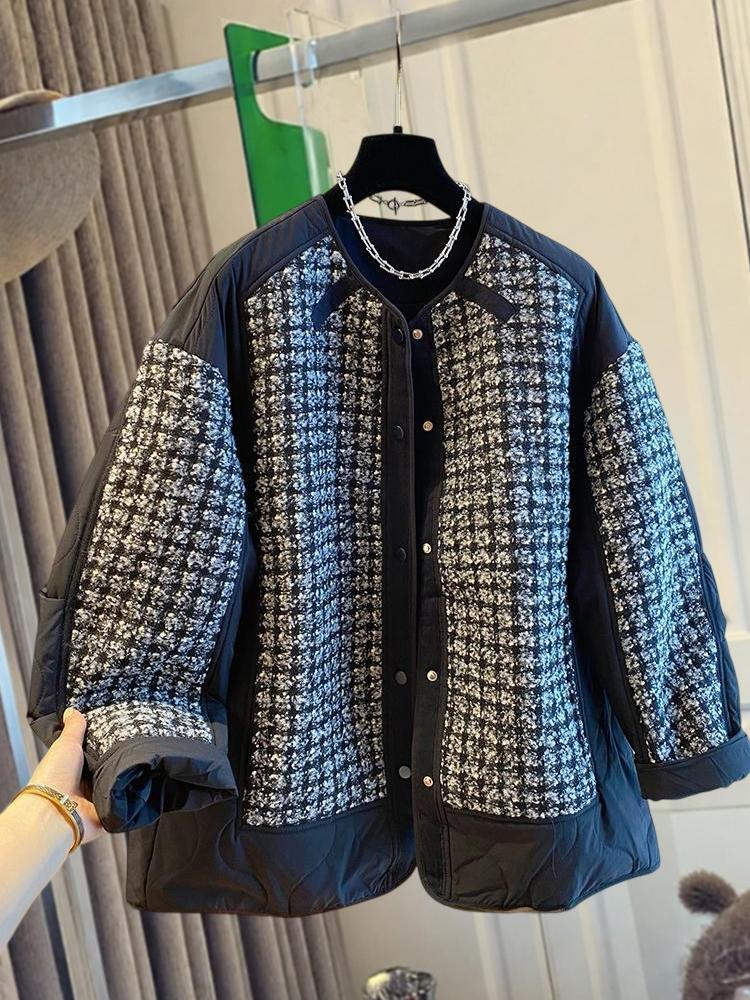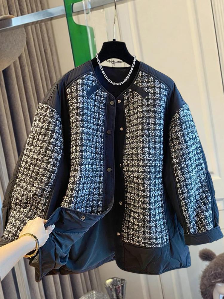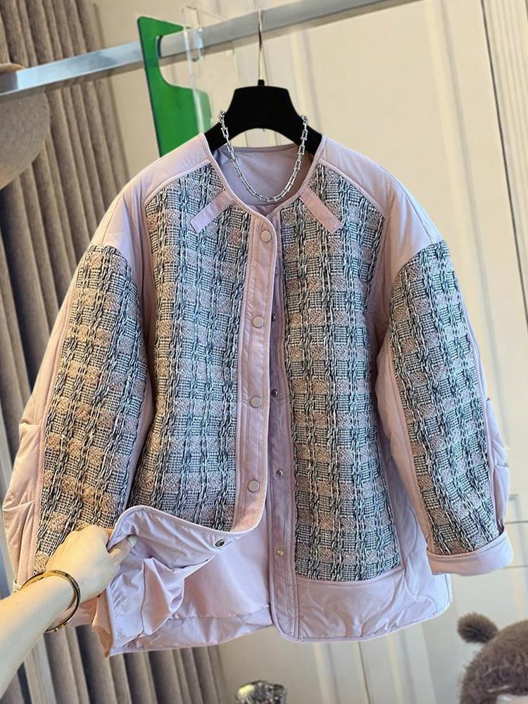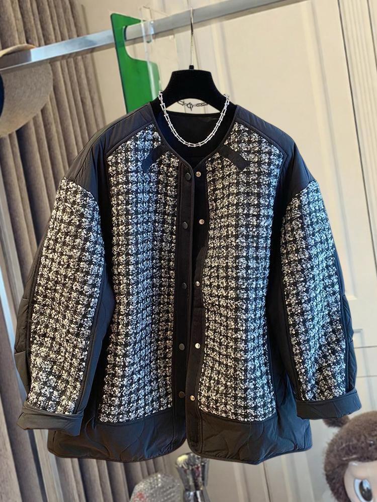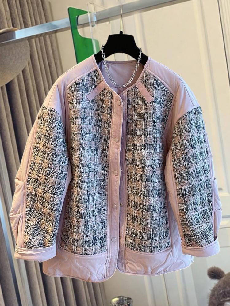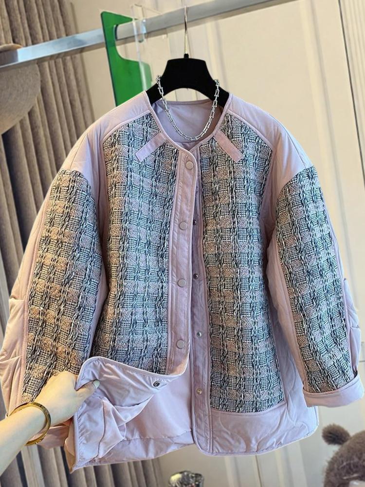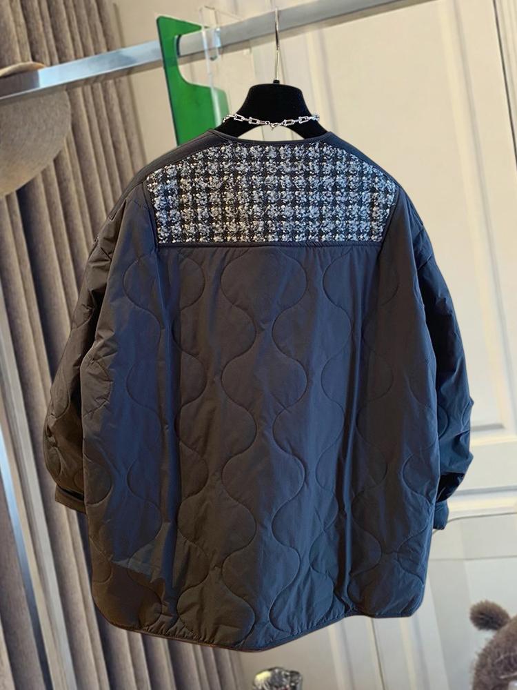 欧货高级感拼接棉服女冬季2025新款宽松圆领独特别致夹棉棉衣外套