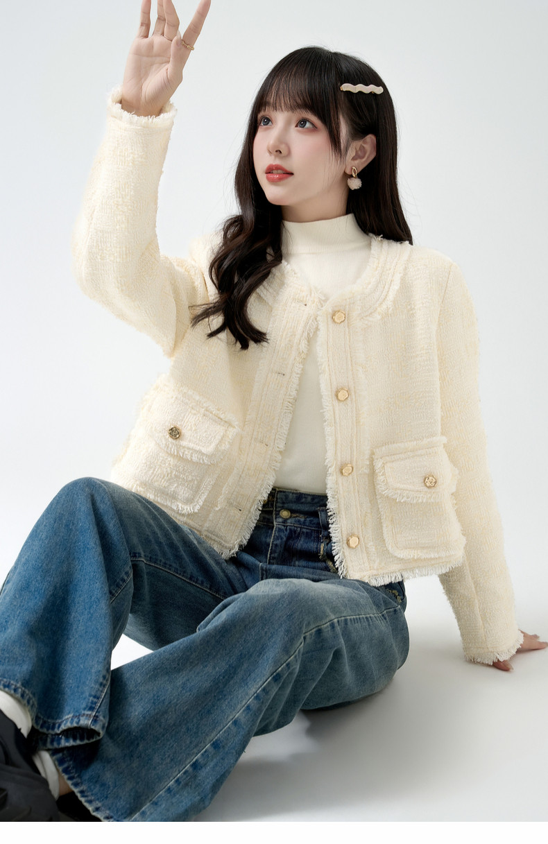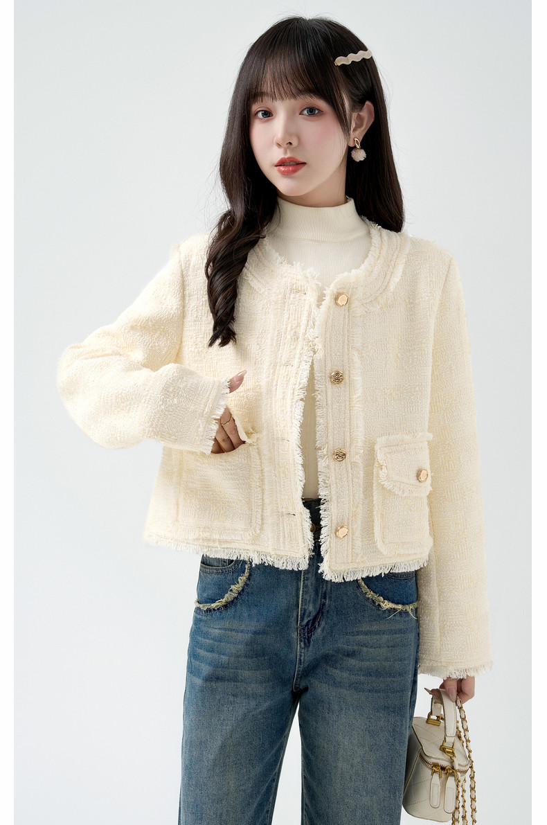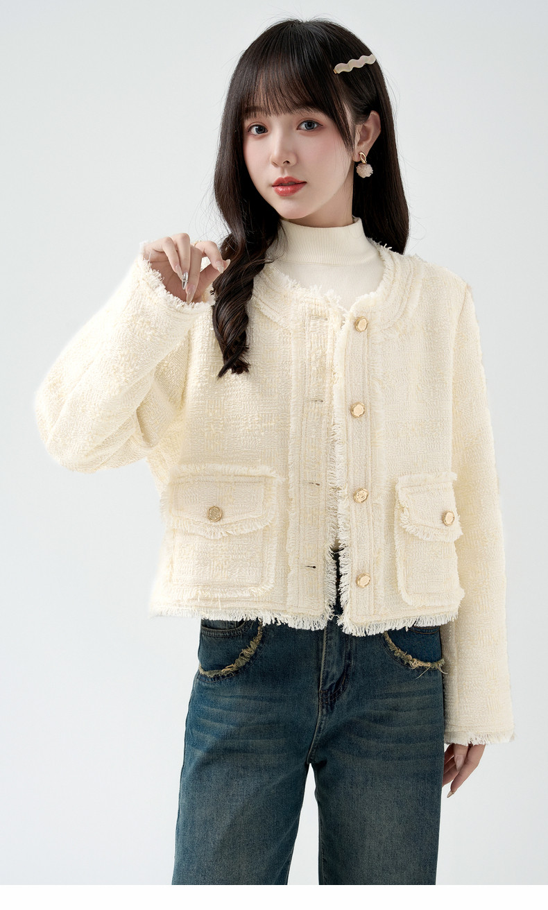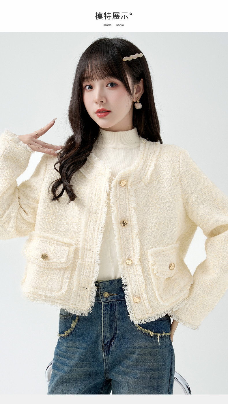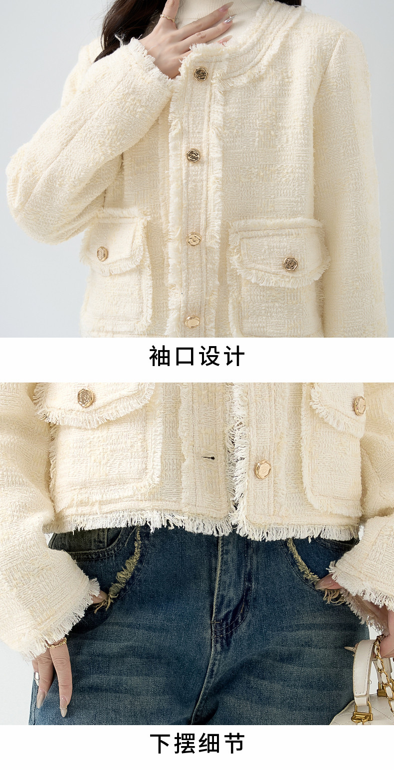 2026春季新款小香风粗毛呢短外套女宽松设计感气质流苏上衣