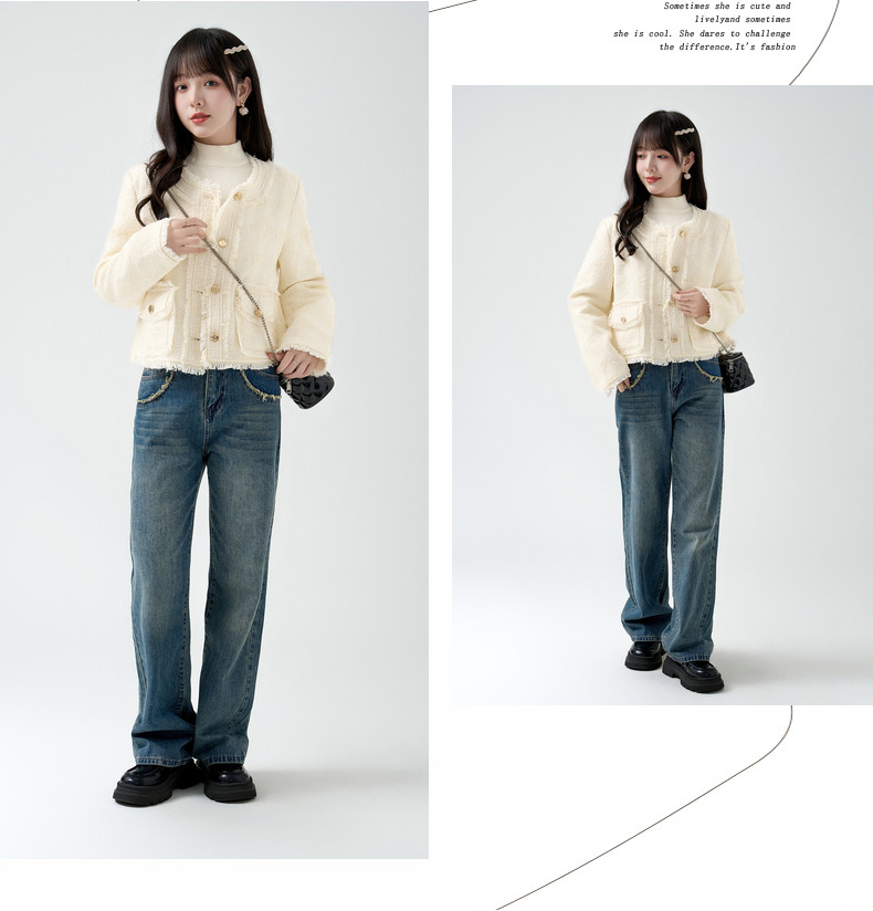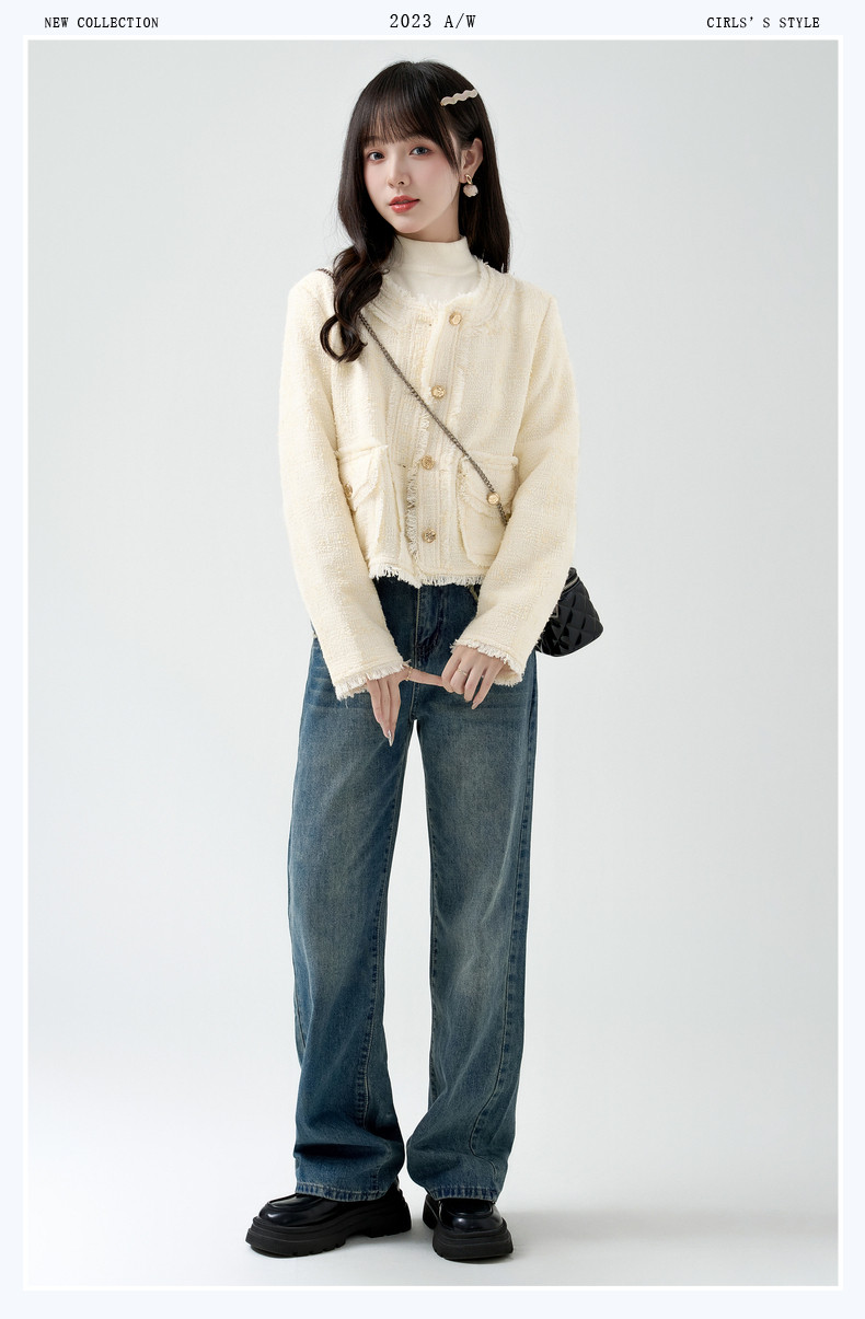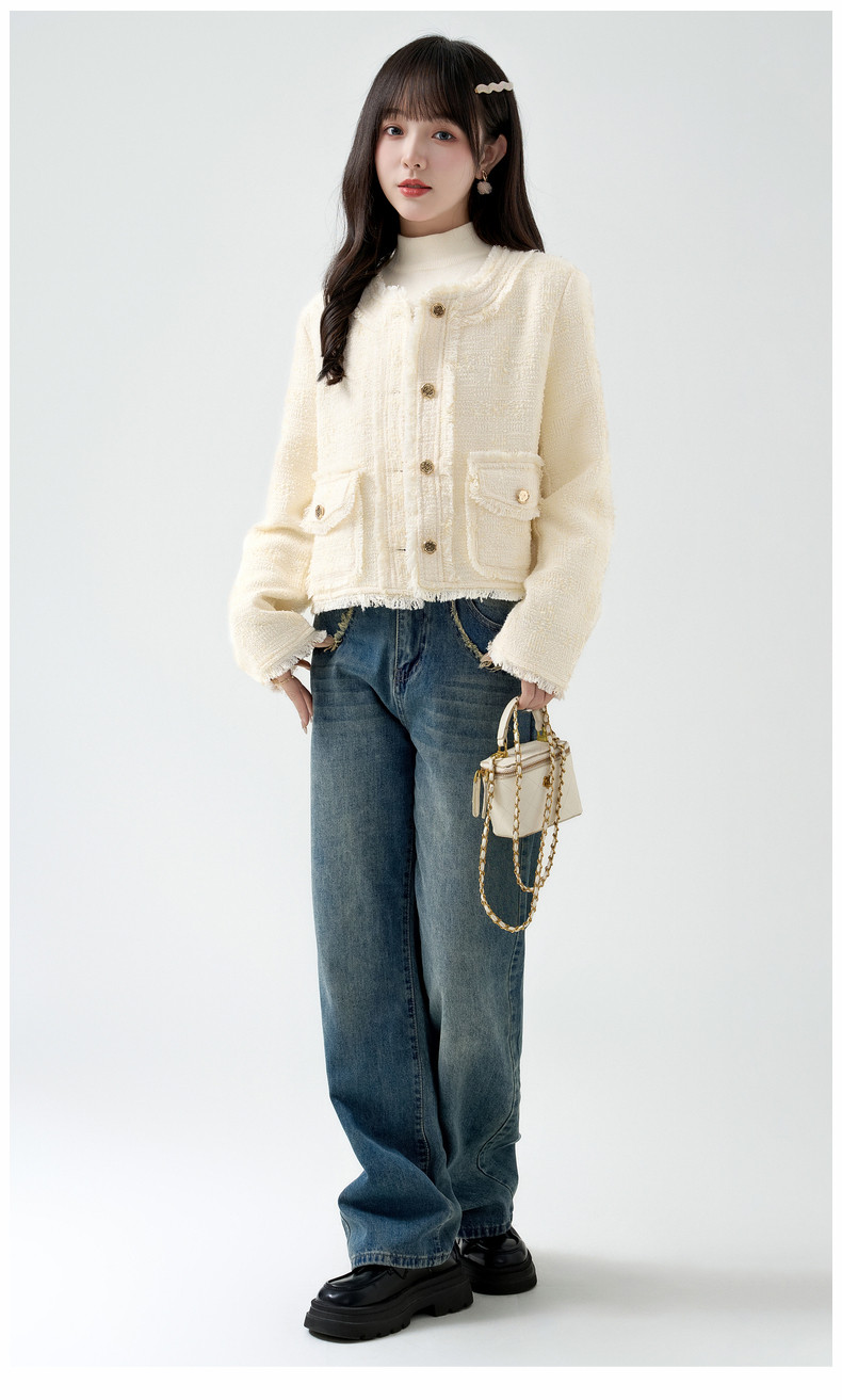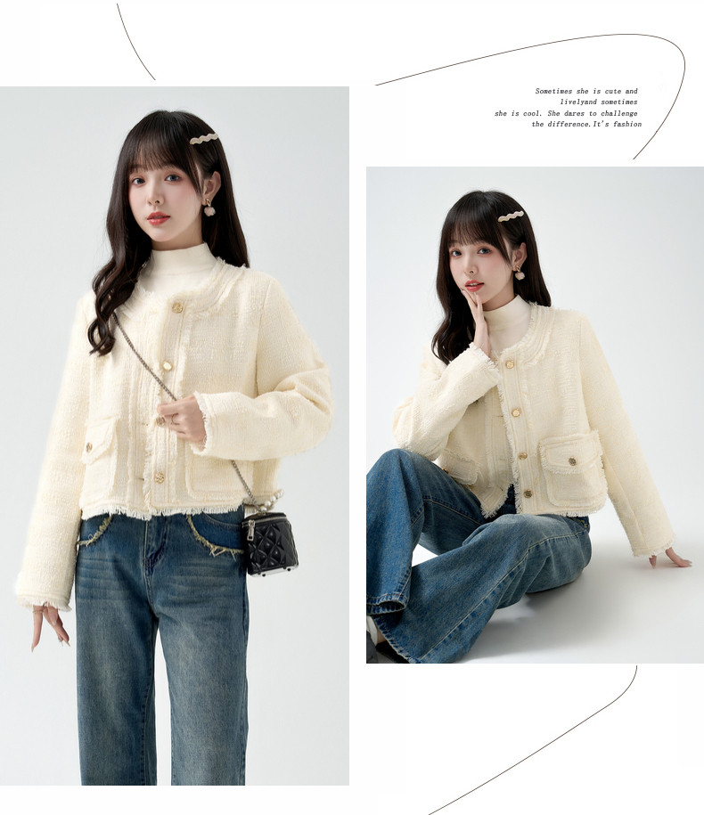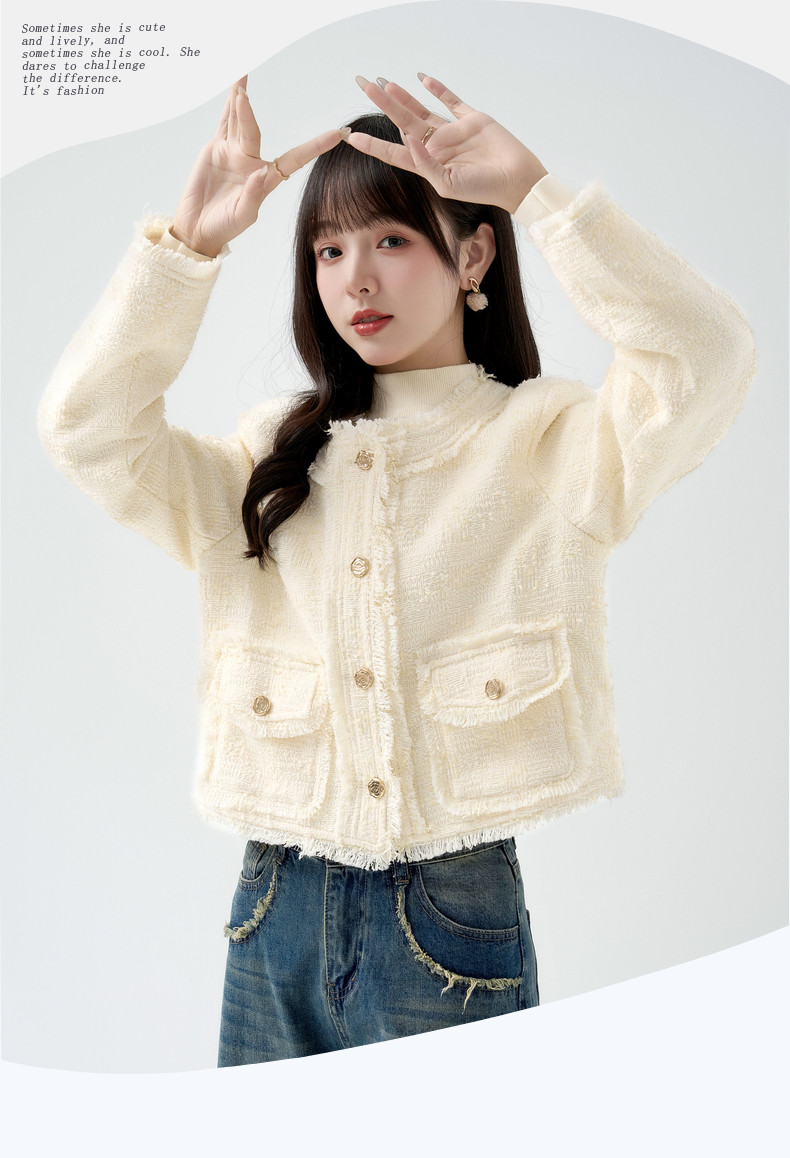 2026春季新款小香风粗毛呢短外套女宽松设计感气质流苏上衣
