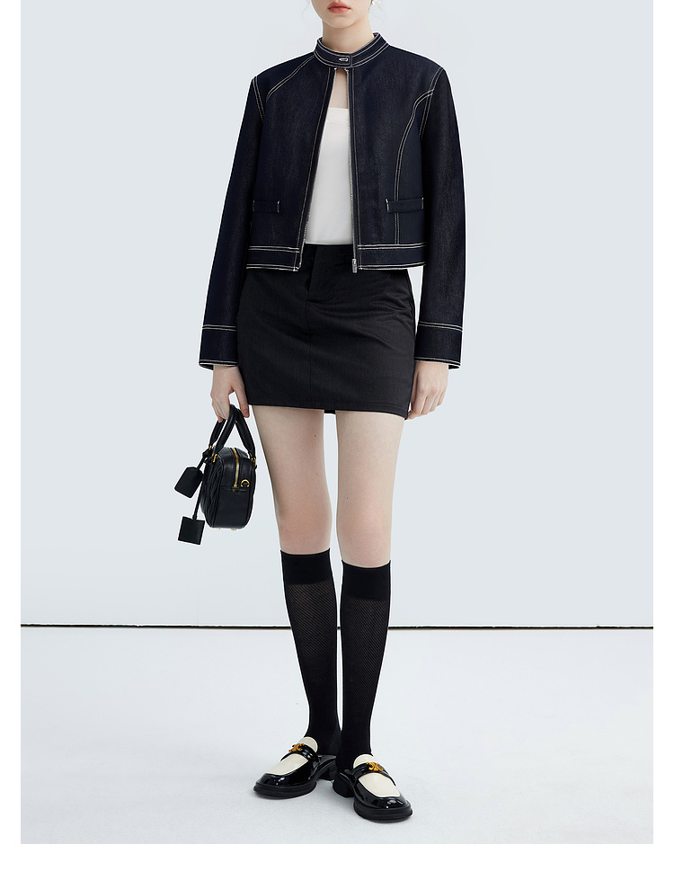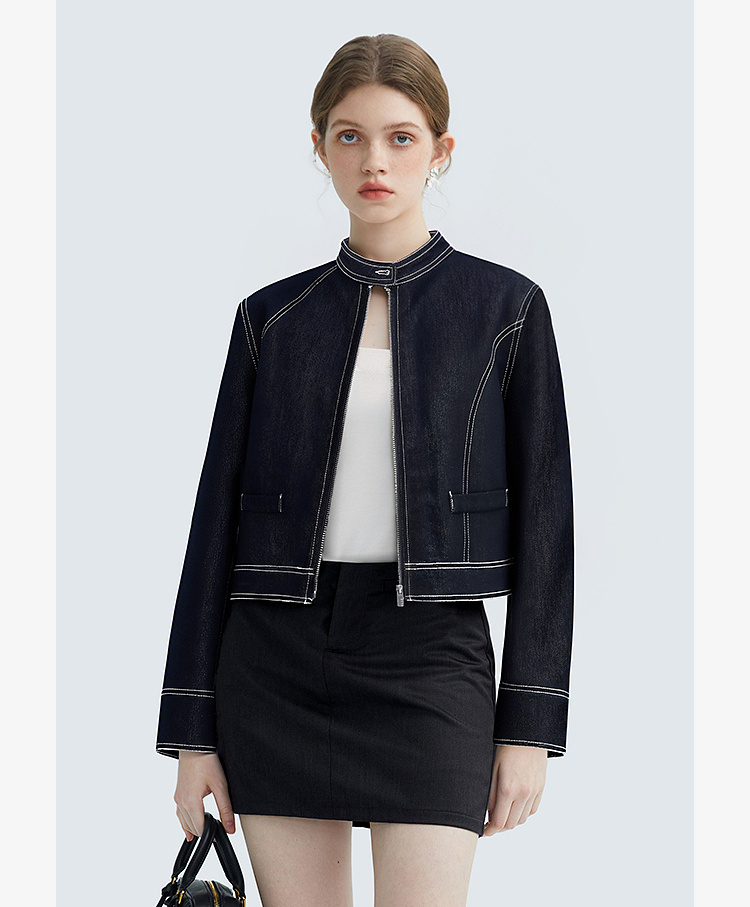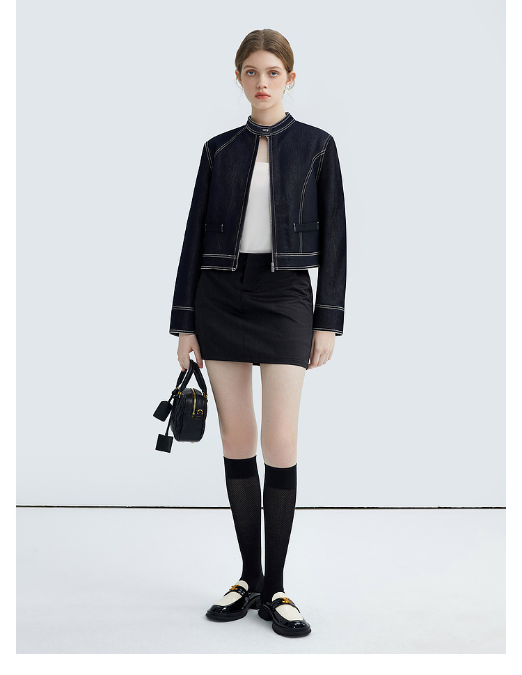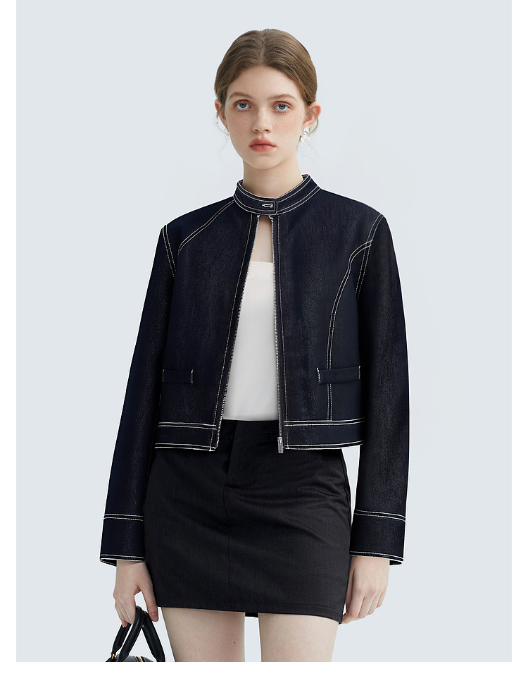 法式廓形牛仔短外套女2026春季新款天丝工装风时髦通勤夹克上衣