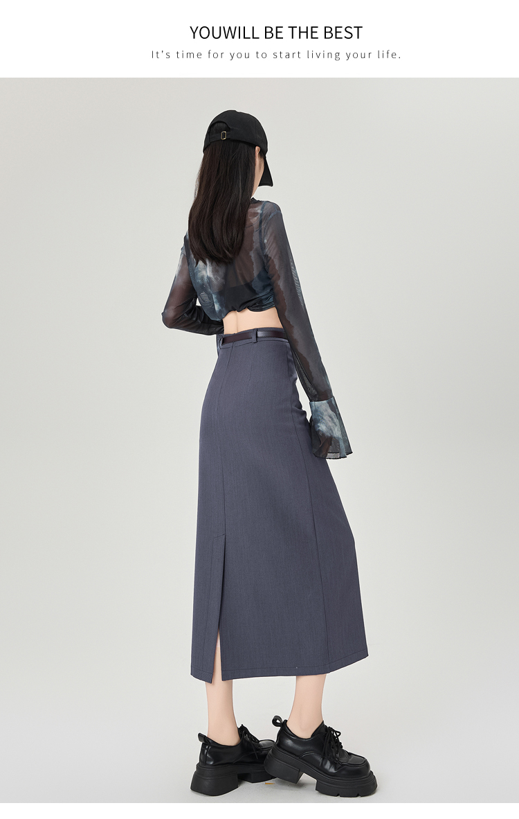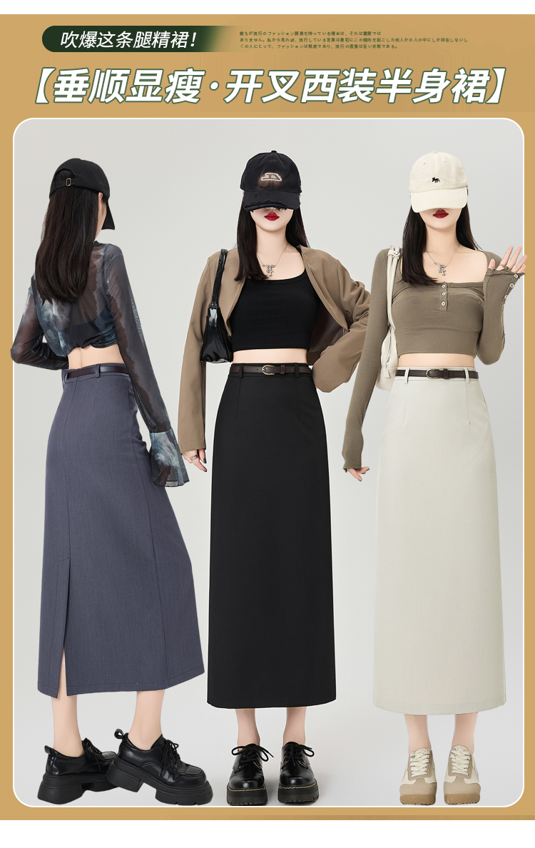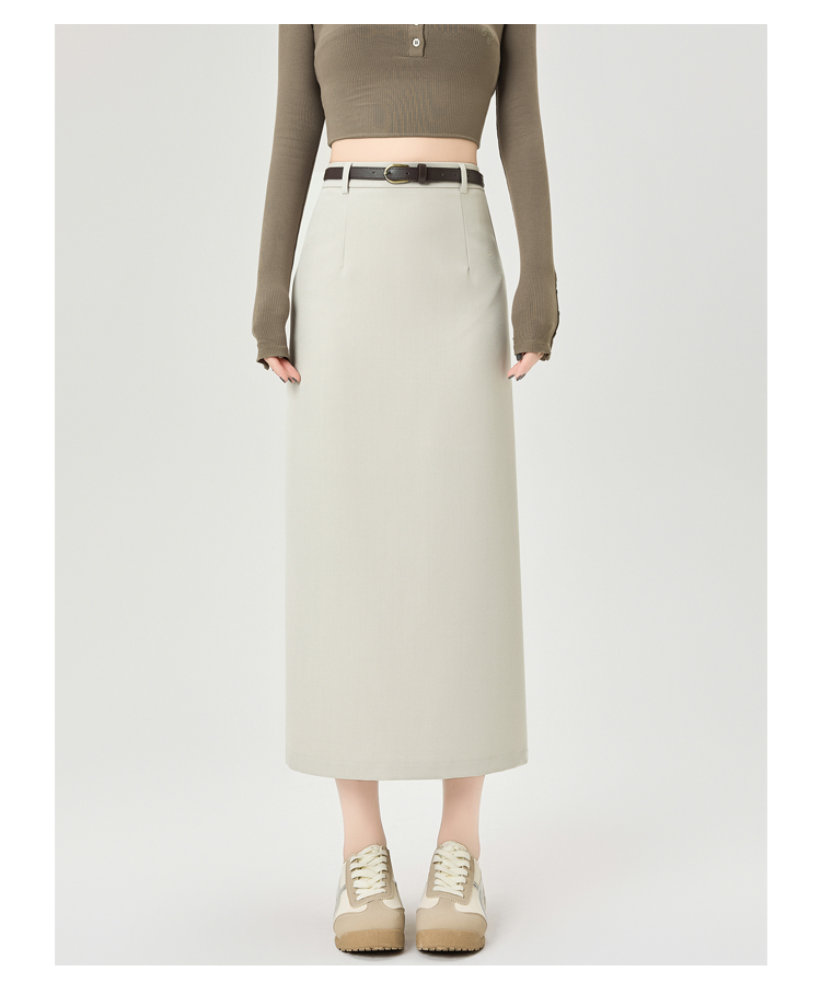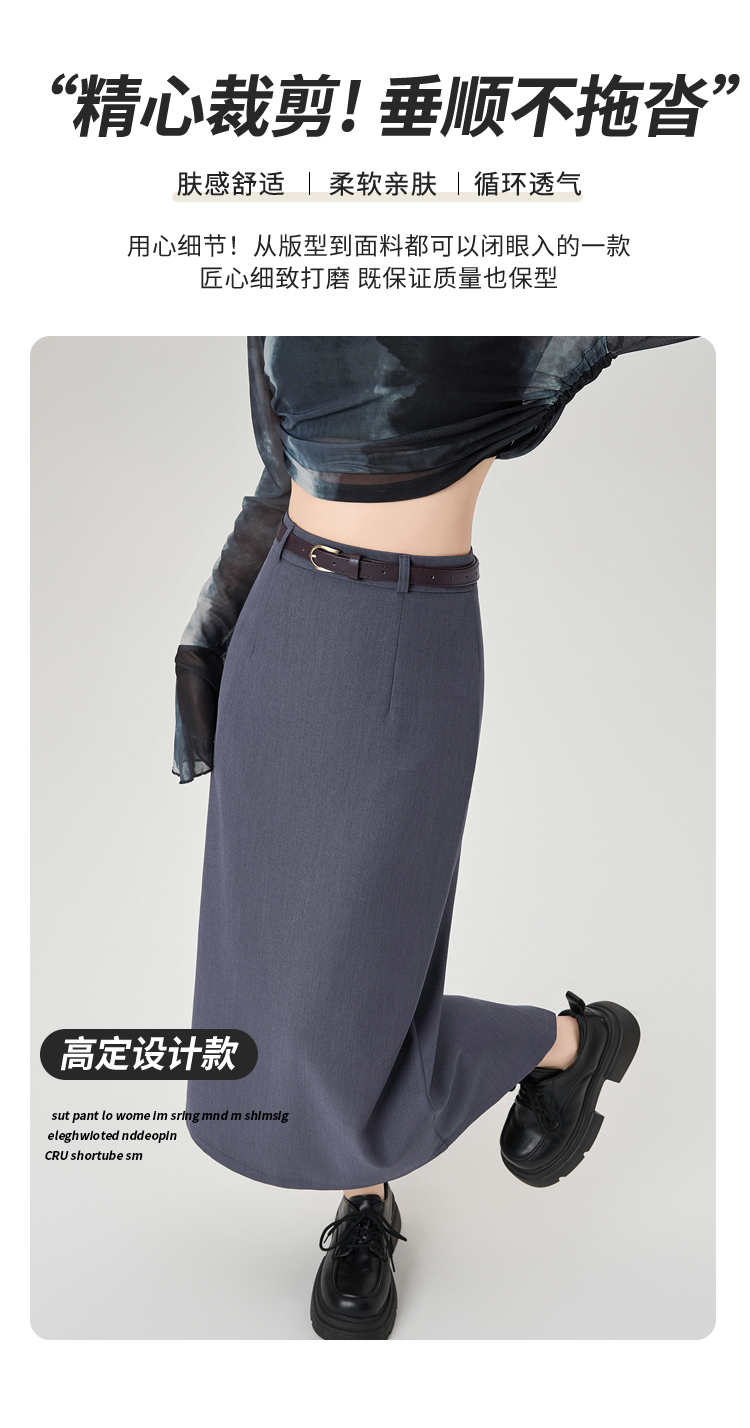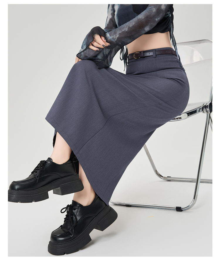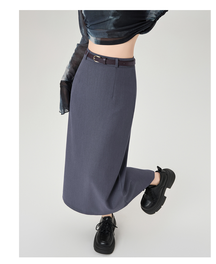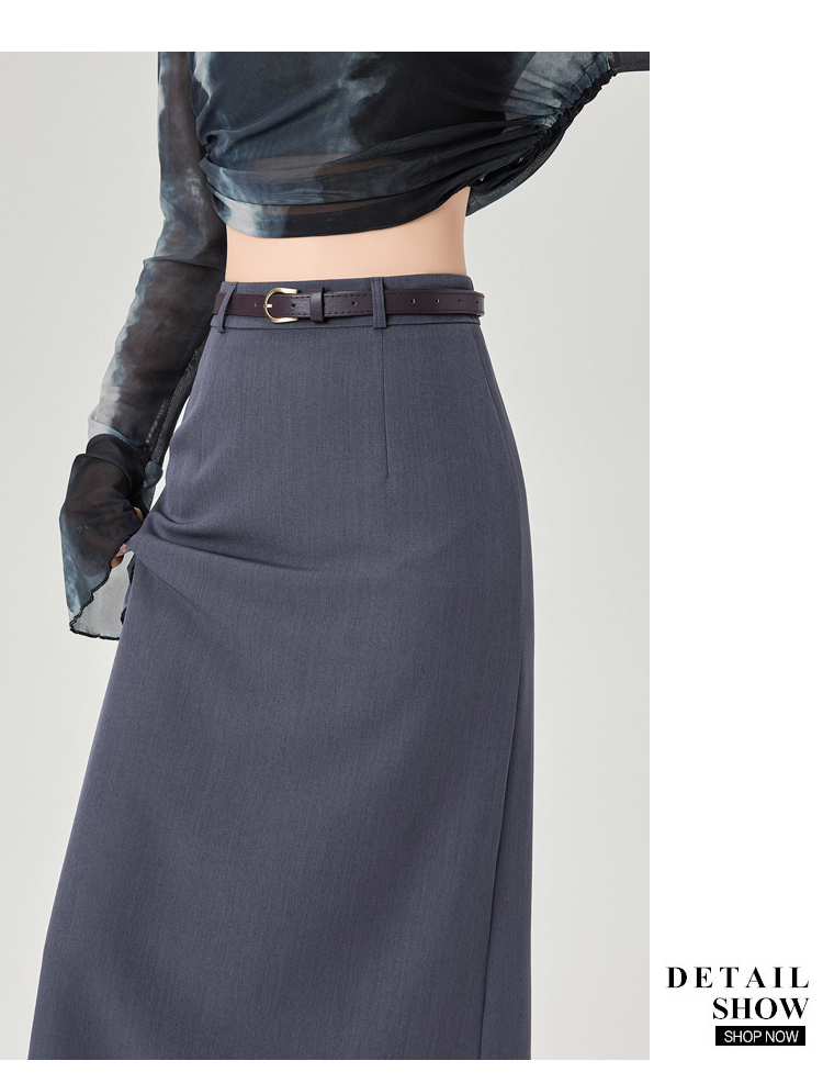 여성용 회색 미디 스커트, 2026 봄/여름 신상, 슬림핏 하이웨이스트 미디 길이 정장 스커트 (슬릿 포함)