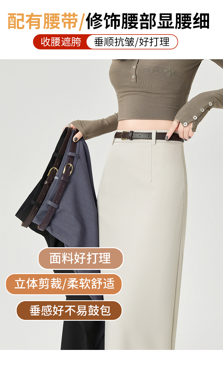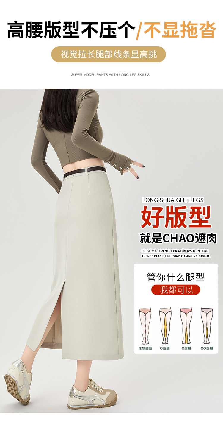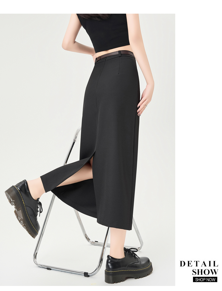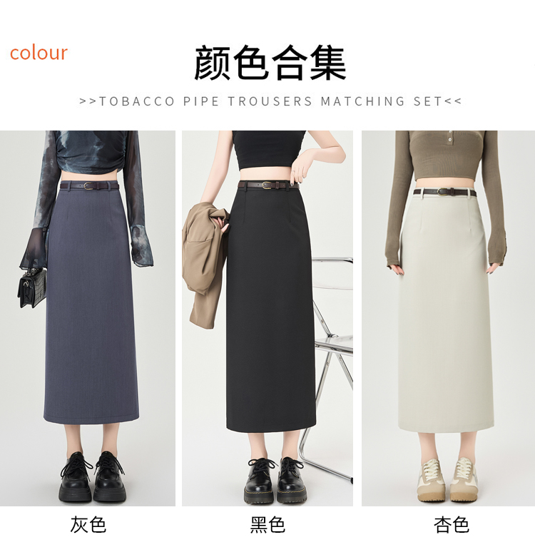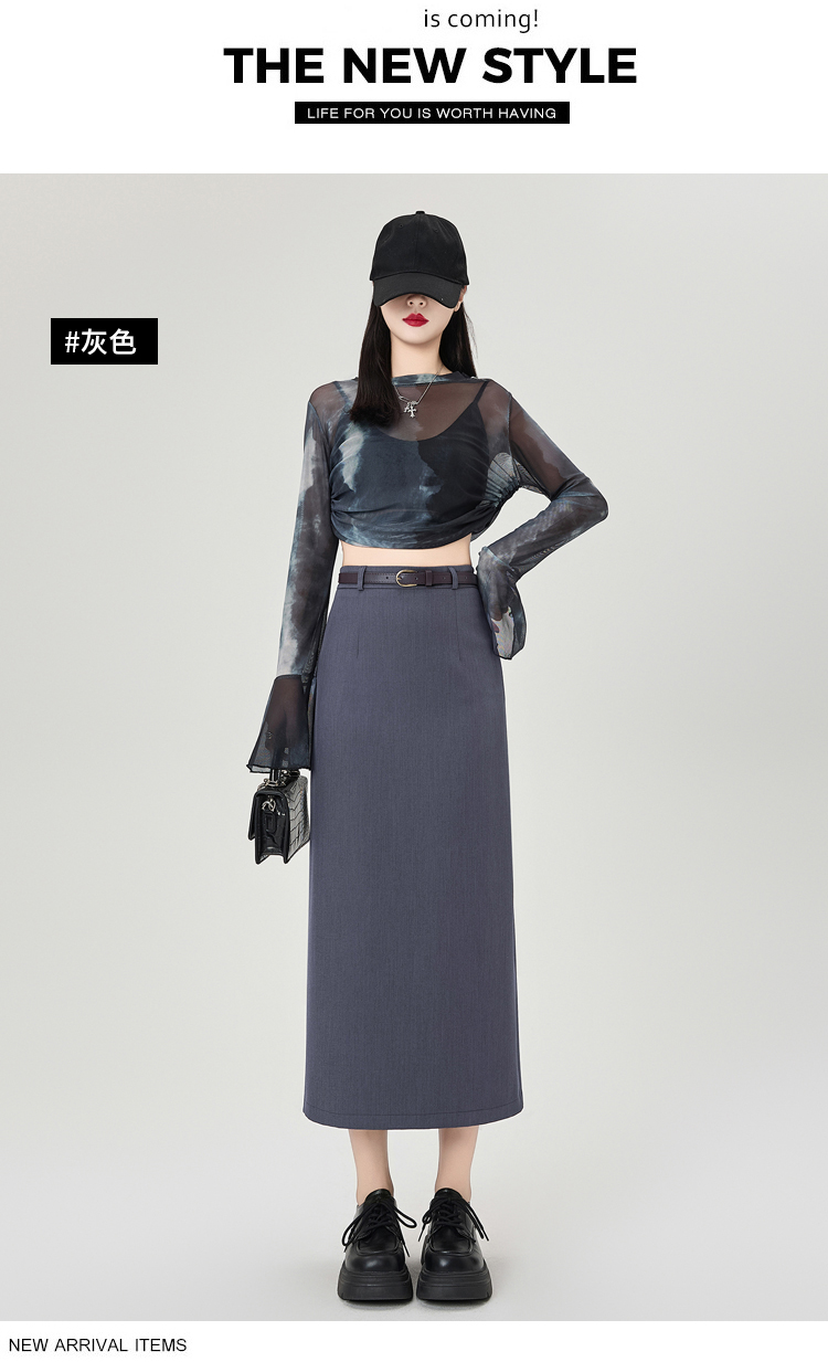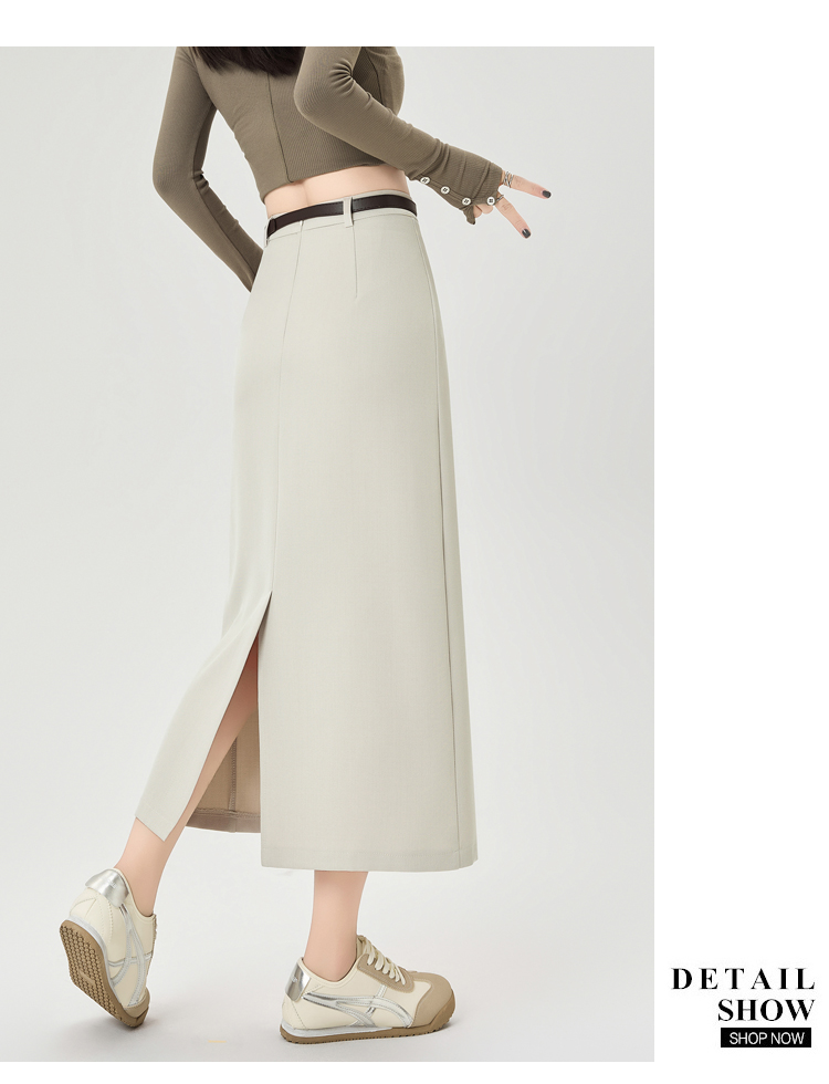 여성용 회색 미디 스커트, 2026 봄/여름 신상, 슬림핏 하이웨이스트 미디 길이 정장 스커트 (슬릿 포함)