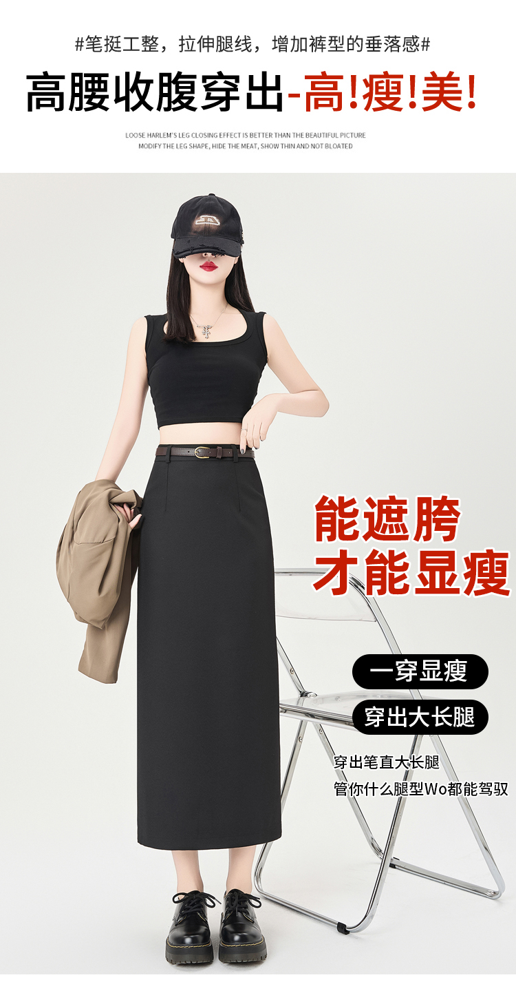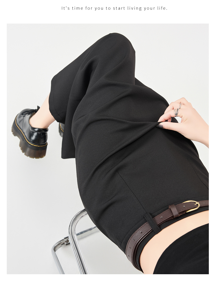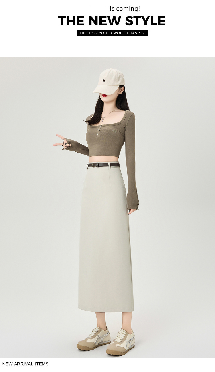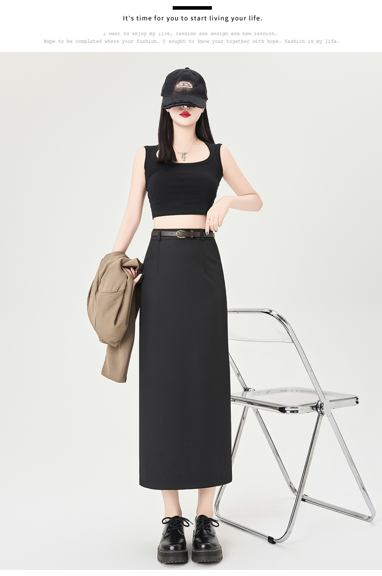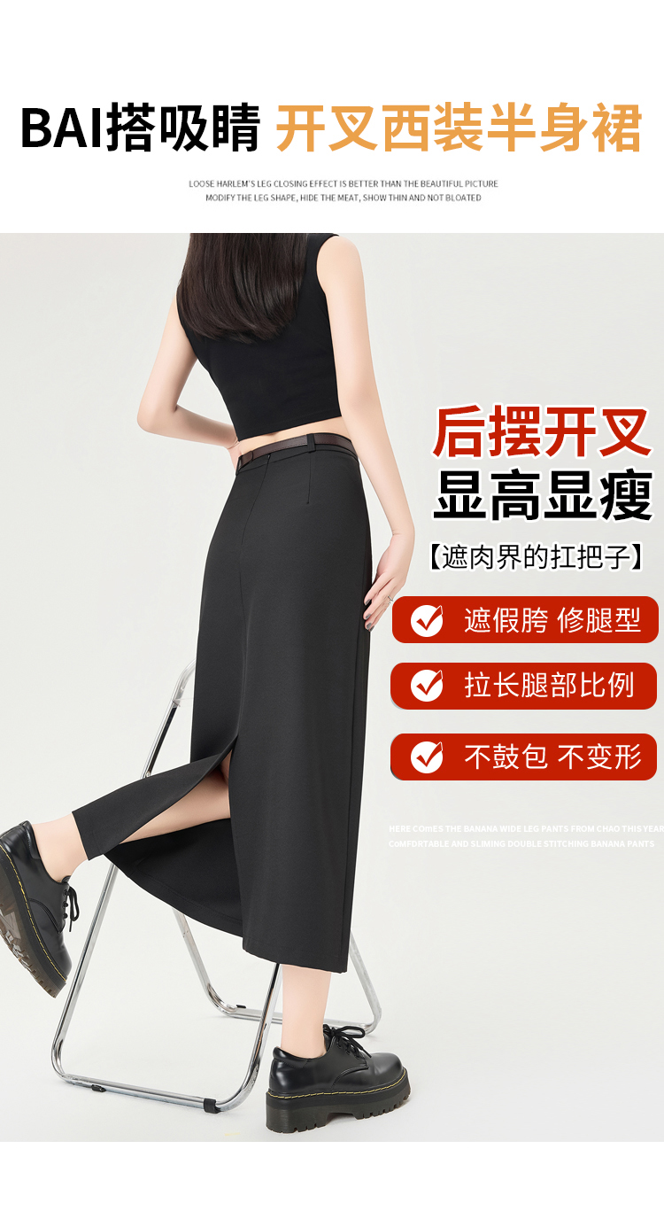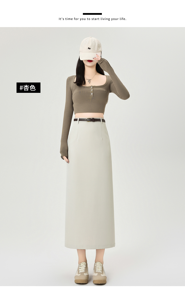 여성용 회색 미디 스커트, 2026 봄/여름 신상, 슬림핏 하이웨이스트 미디 길이 정장 스커트 (슬릿 포함)