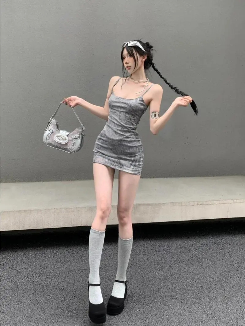 섹시하고 매혹적인 스퀘어넥 홀터넥 드레스, 여름에 딱 좋고, 아담한 체형의 여성에게 날씬하고 몸매를 돋보이게 해주는 바디콘 미니스커트입니다.