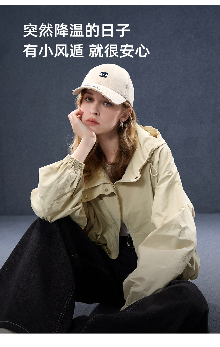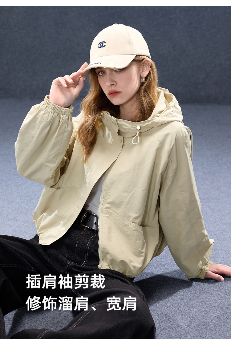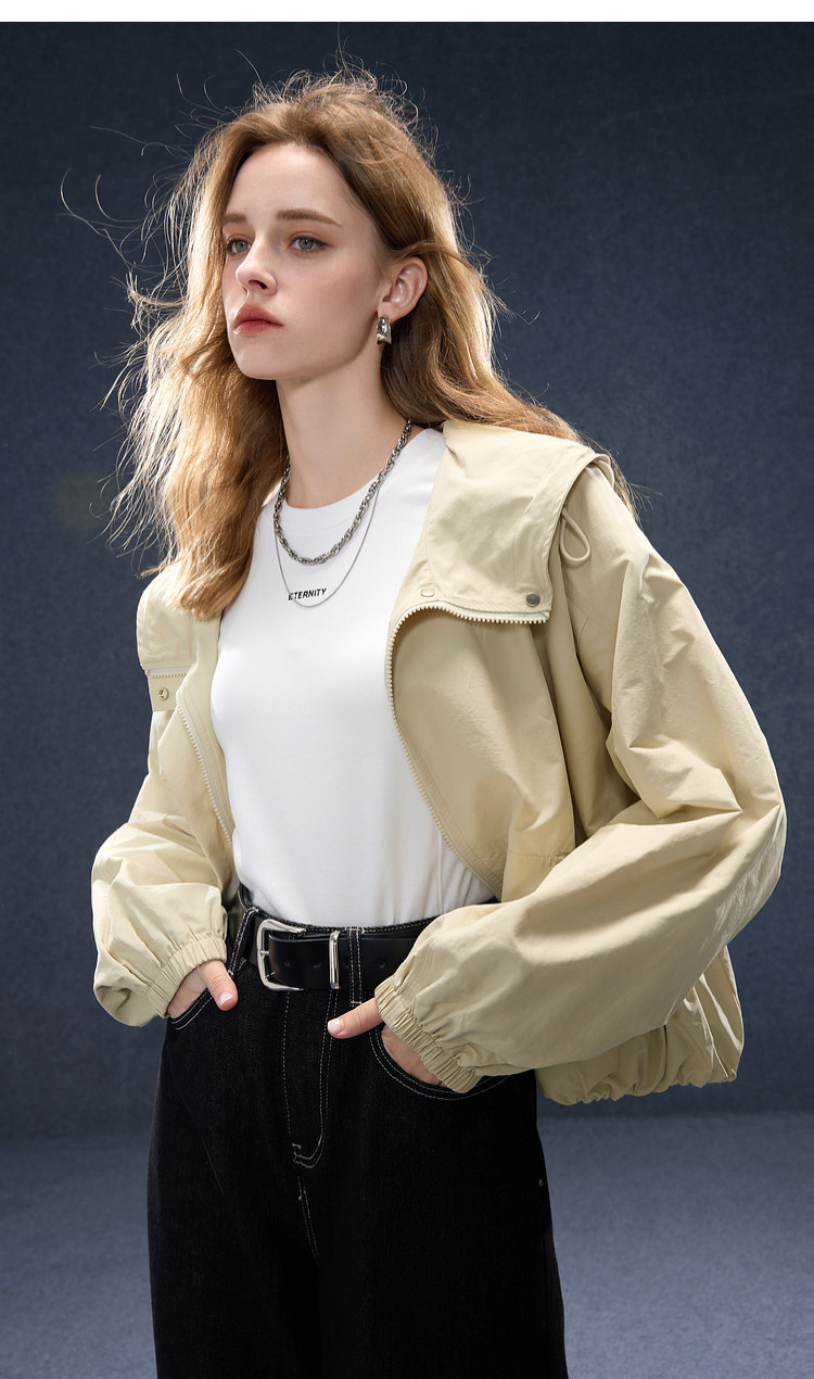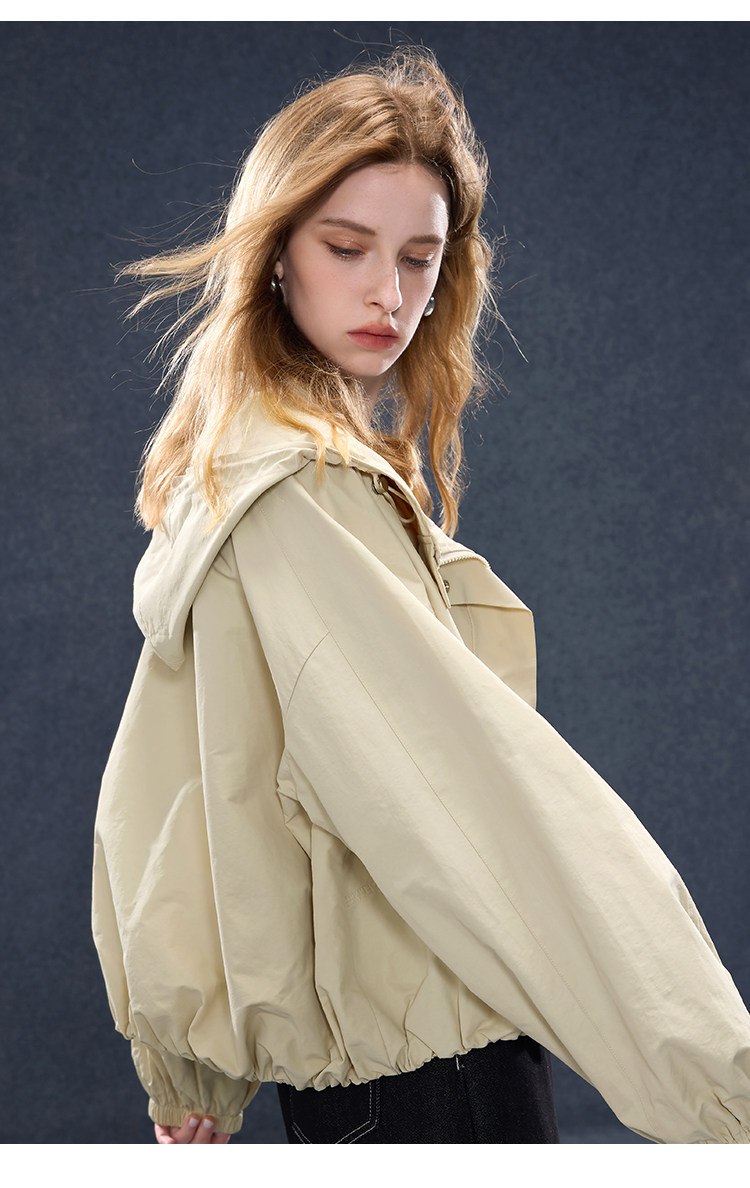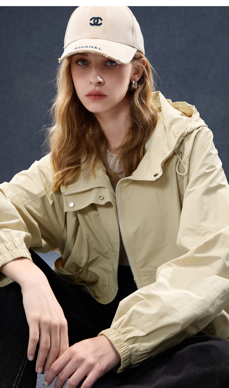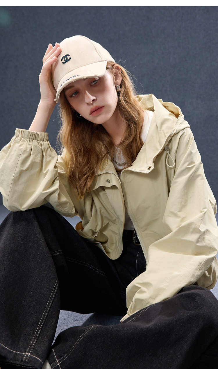 2026년 초봄 신상 캐주얼 후드 집업 카키 재킷, 레트로 스타일의 짧고 슬림한 여성용 M 사이즈 공식 이미지가 공개되었습니다.